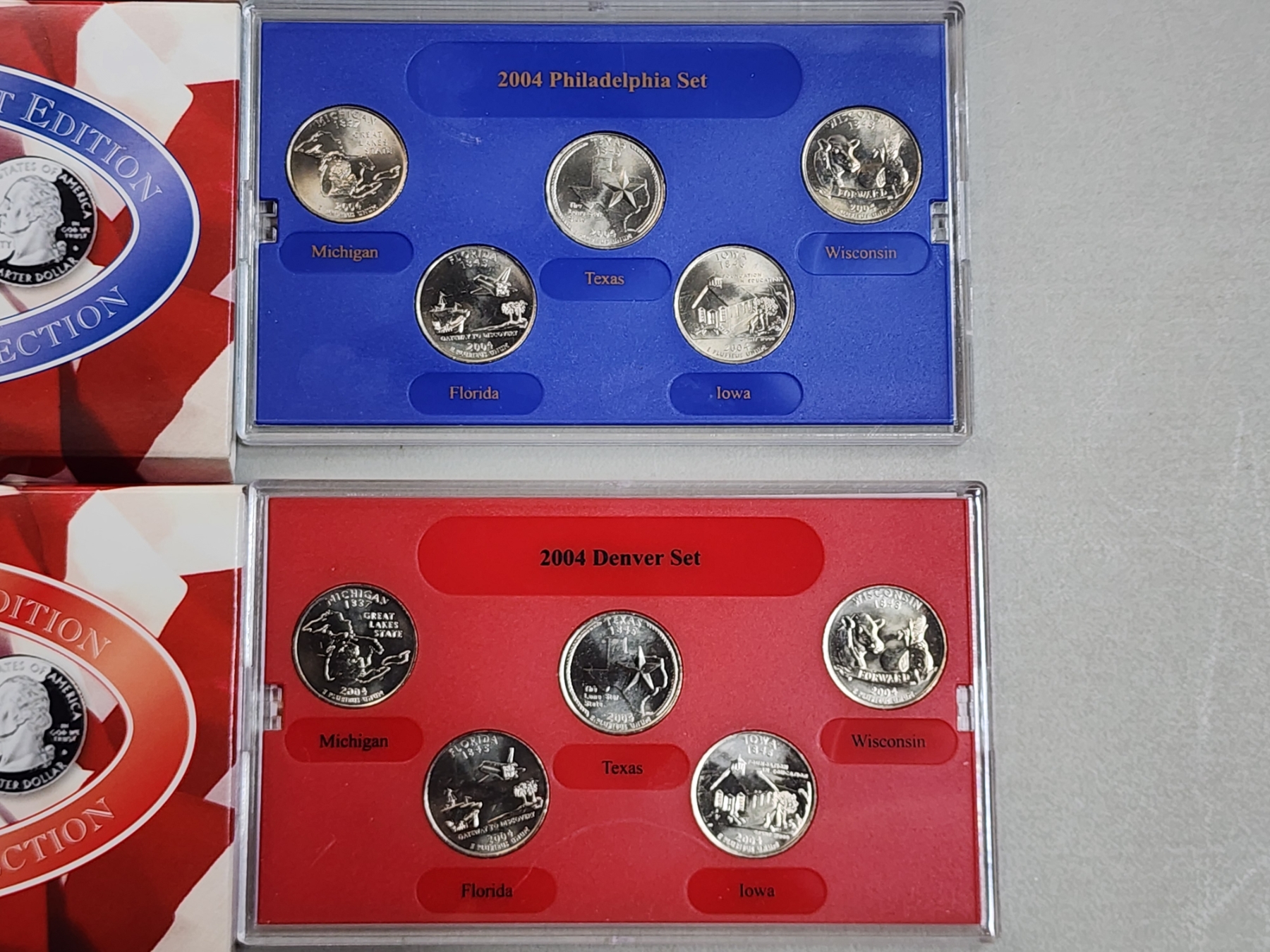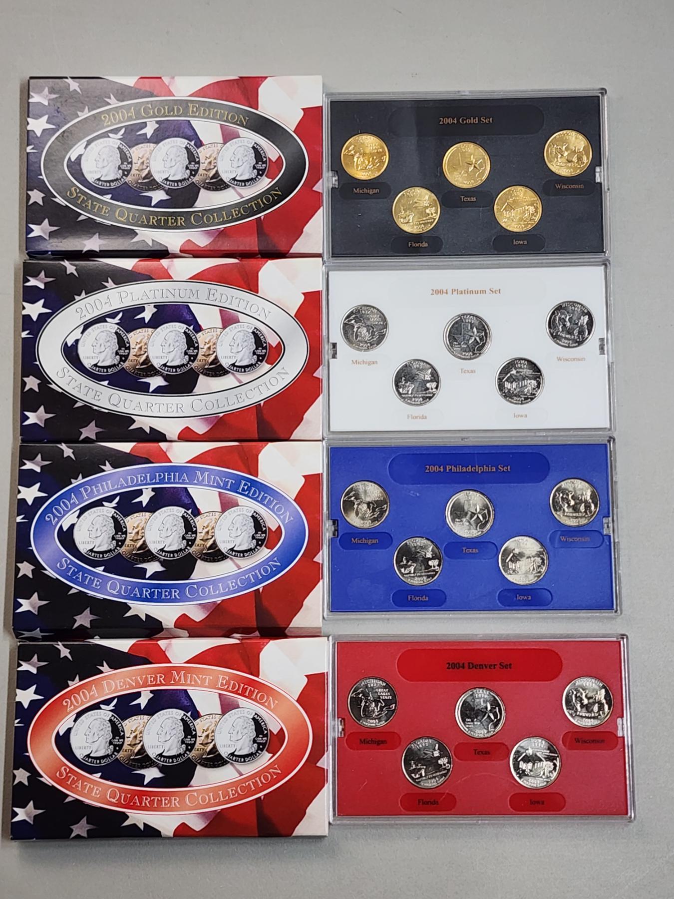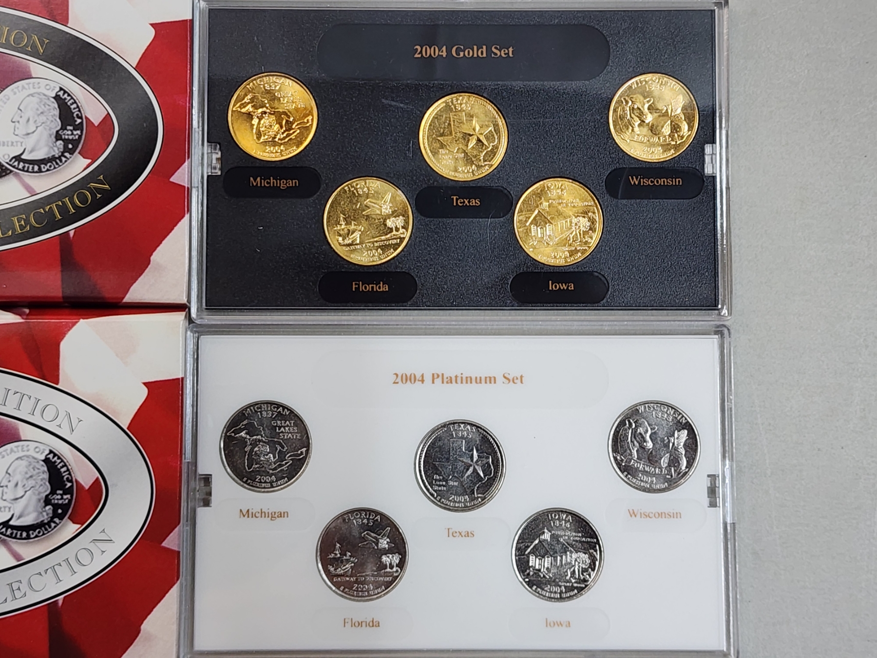 (4) 2004 State Quarter Collection Sets: Gold Edition/Platinum Edition/Philadelphia Mint/Denver Mint