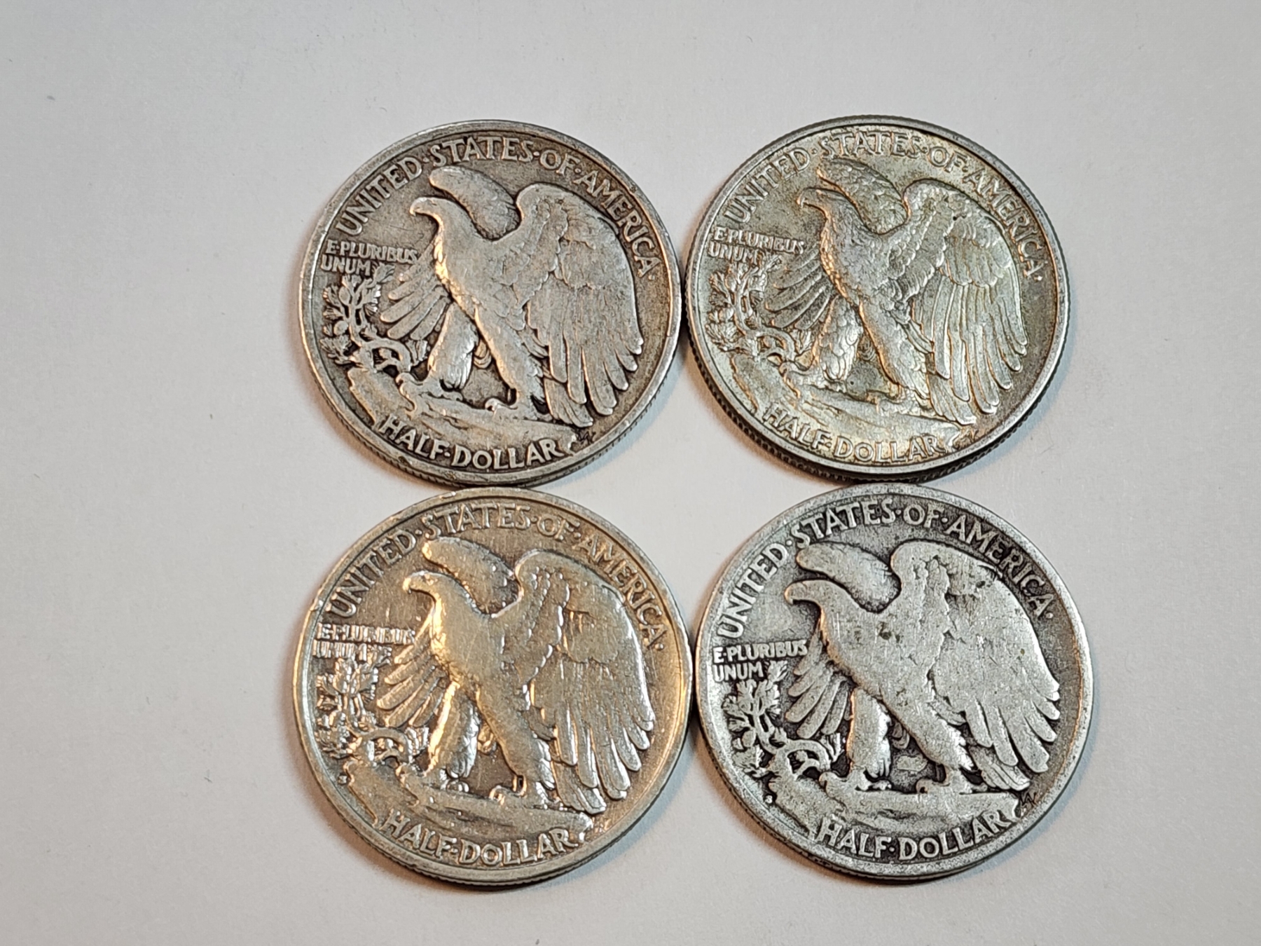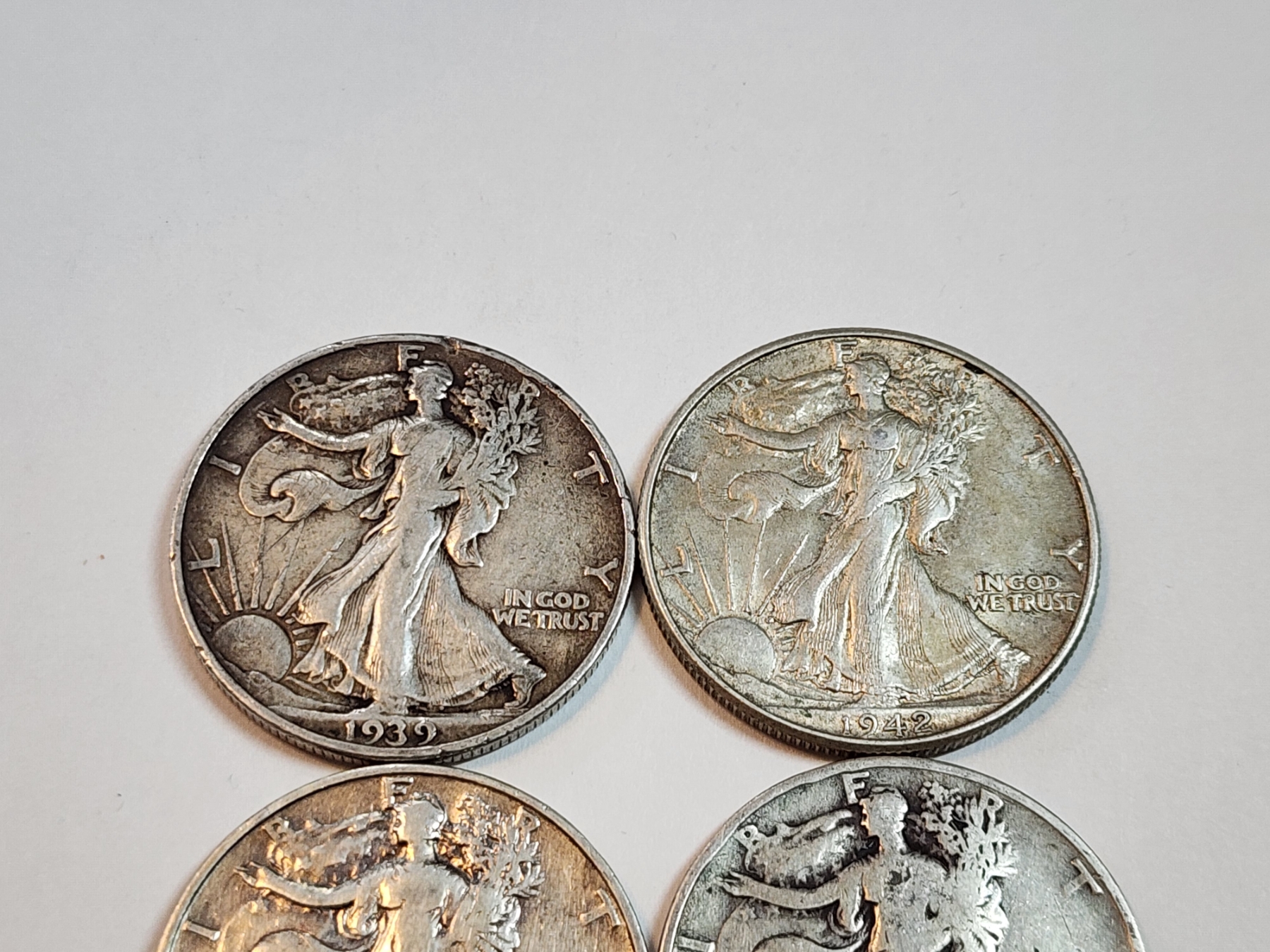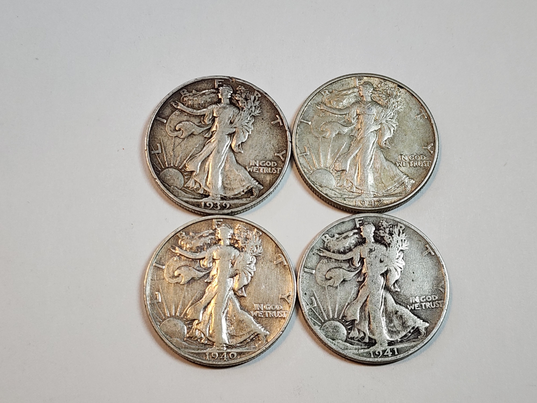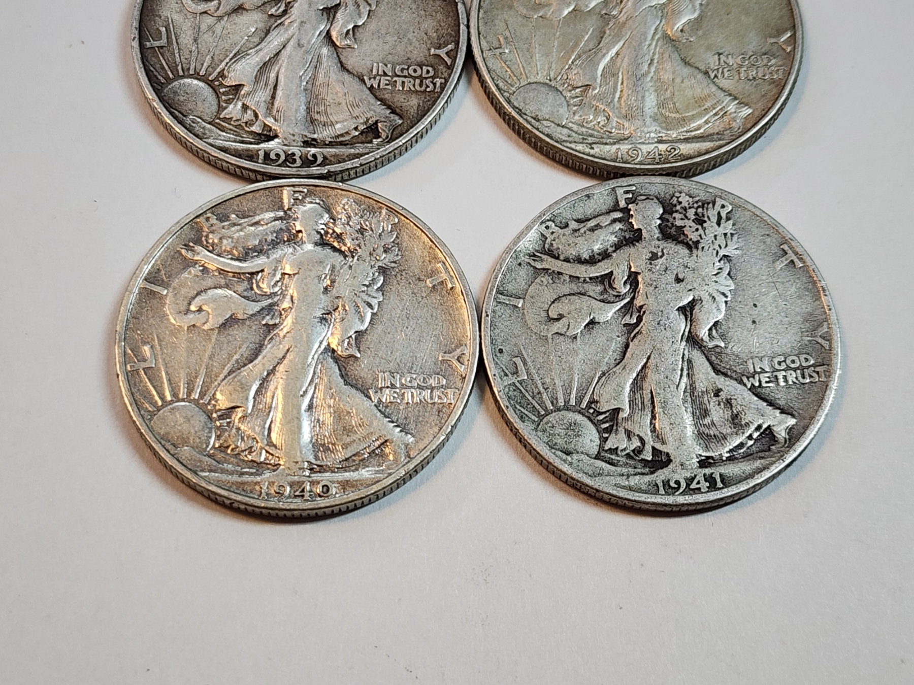 (4) 90% Silver Walking Liberty Half Dollars: 1939, 1942, 1940, 1941 FV: $2.00