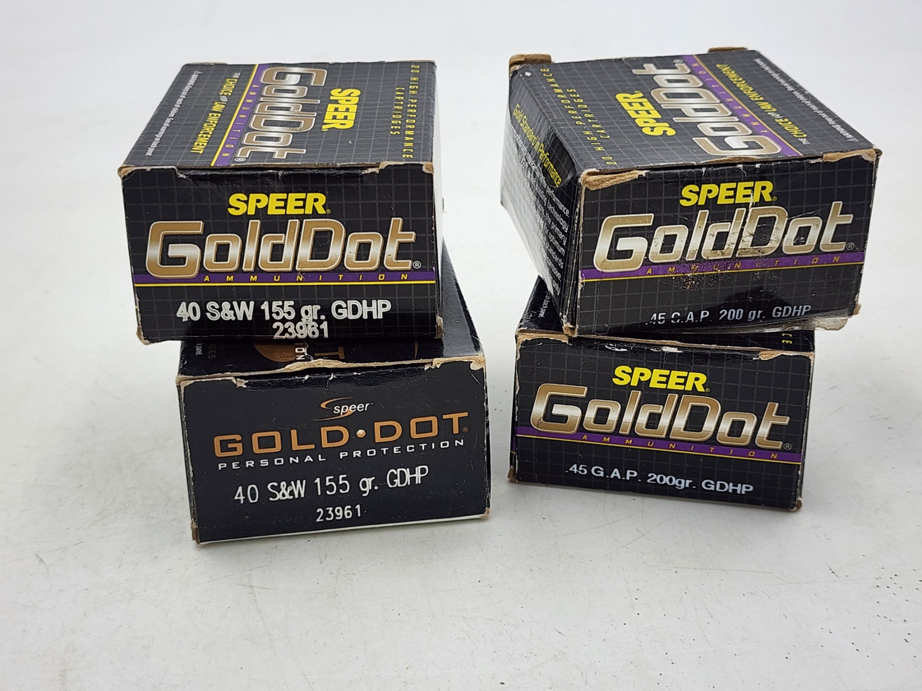 4 Boxes, One Full, of Speer Gold Dot 40 S&W Ammunition