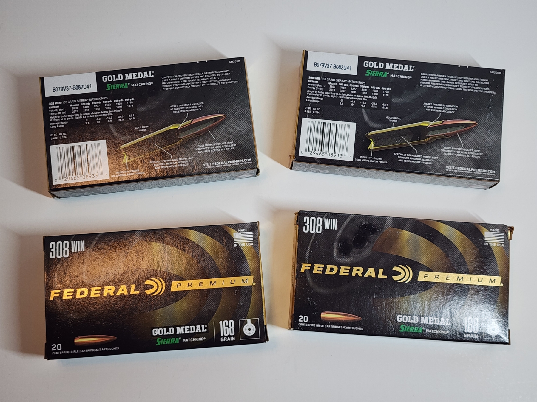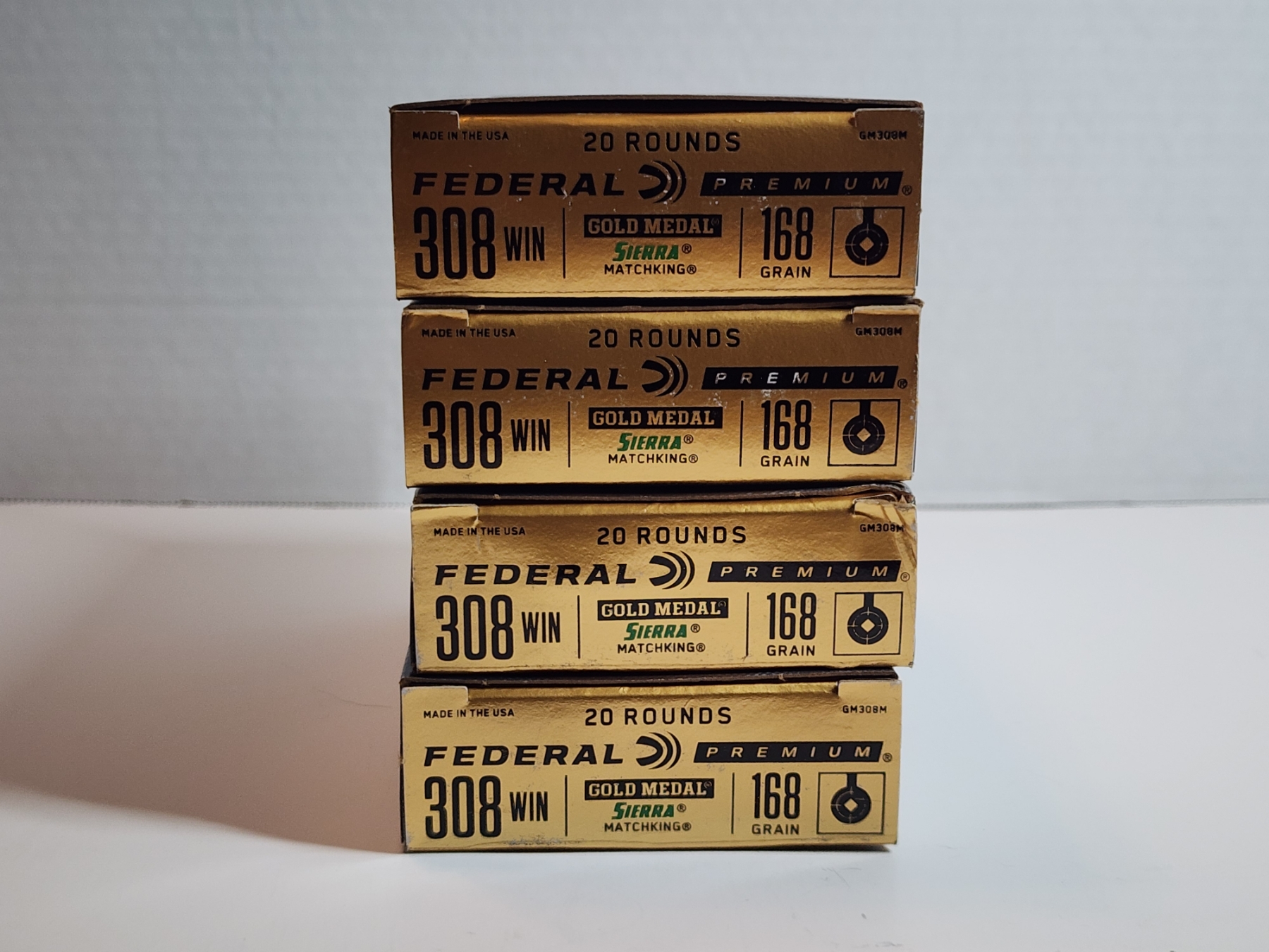 4 Full Boxes of Federal Premium Gold Medal 308 Winchester Ammunition - 80 Rounds Total