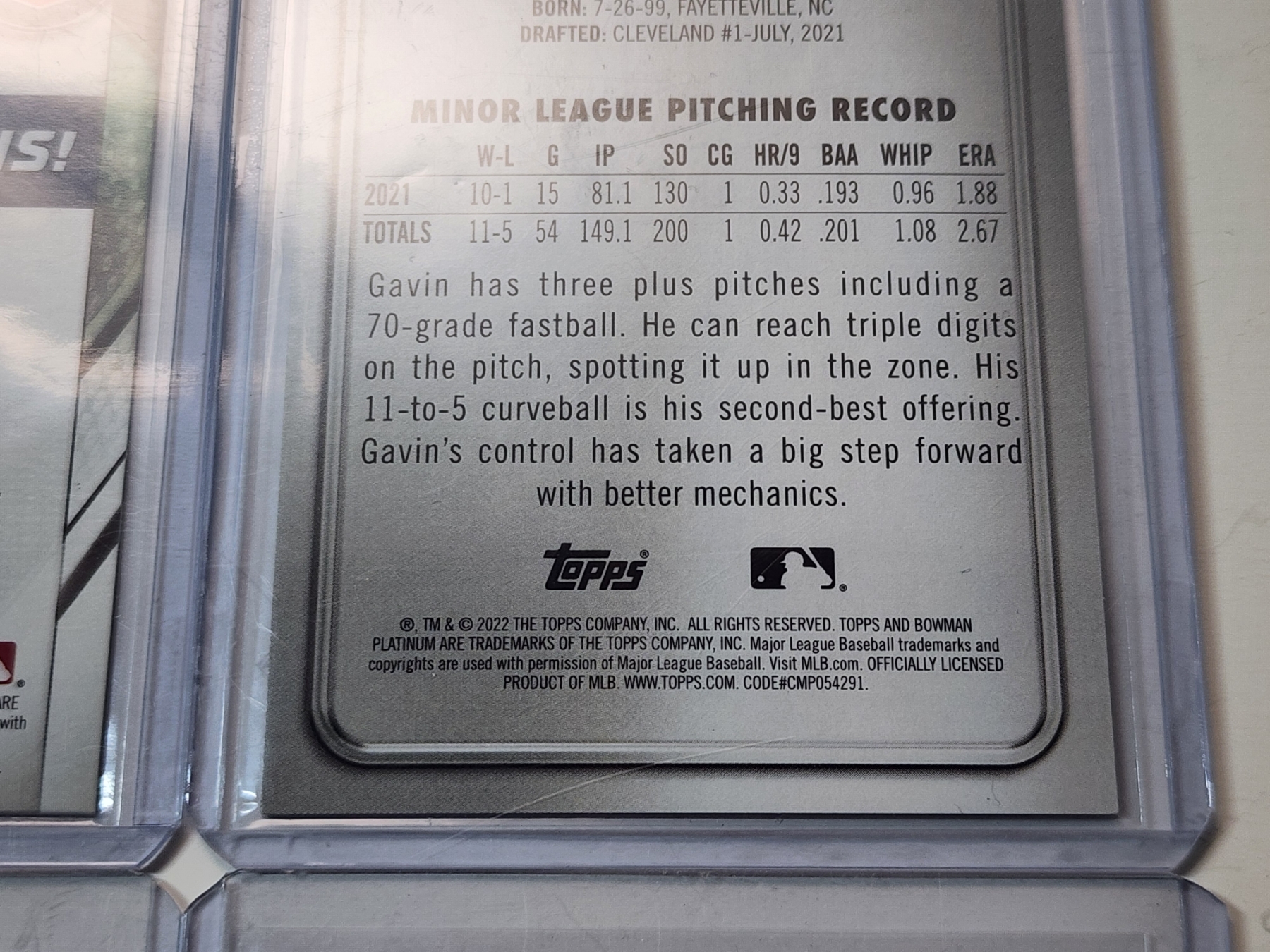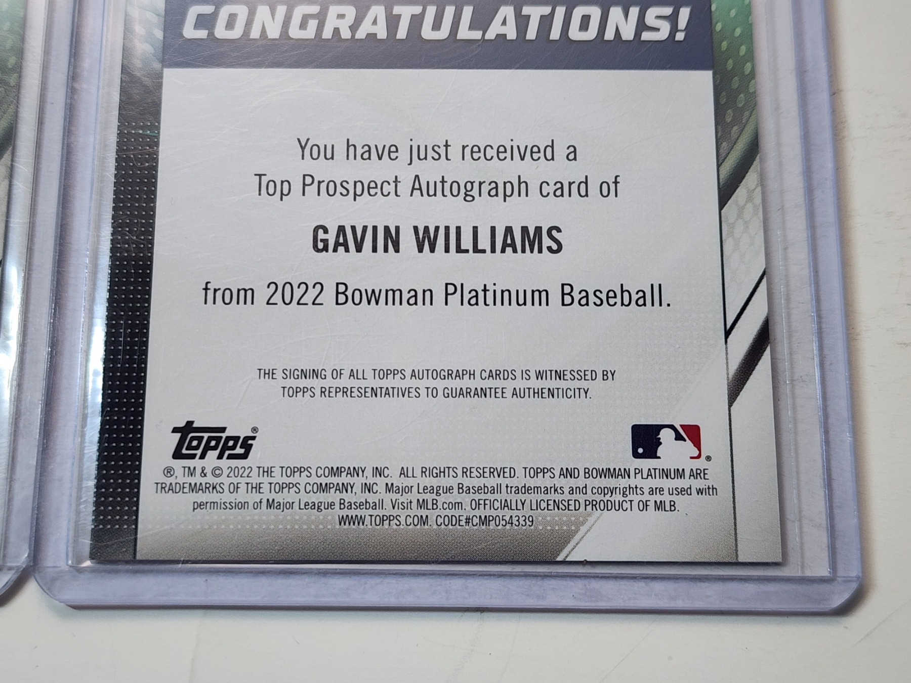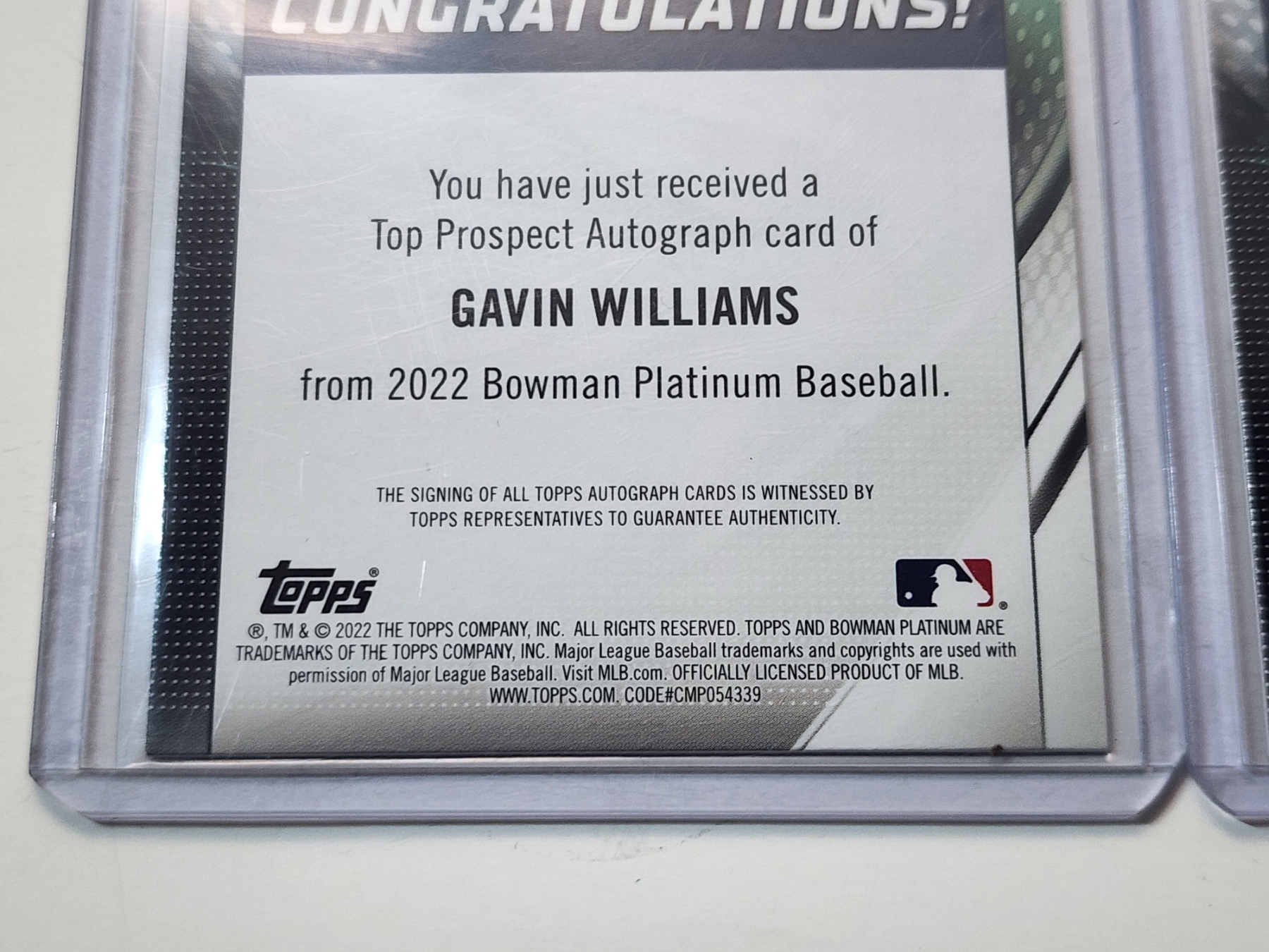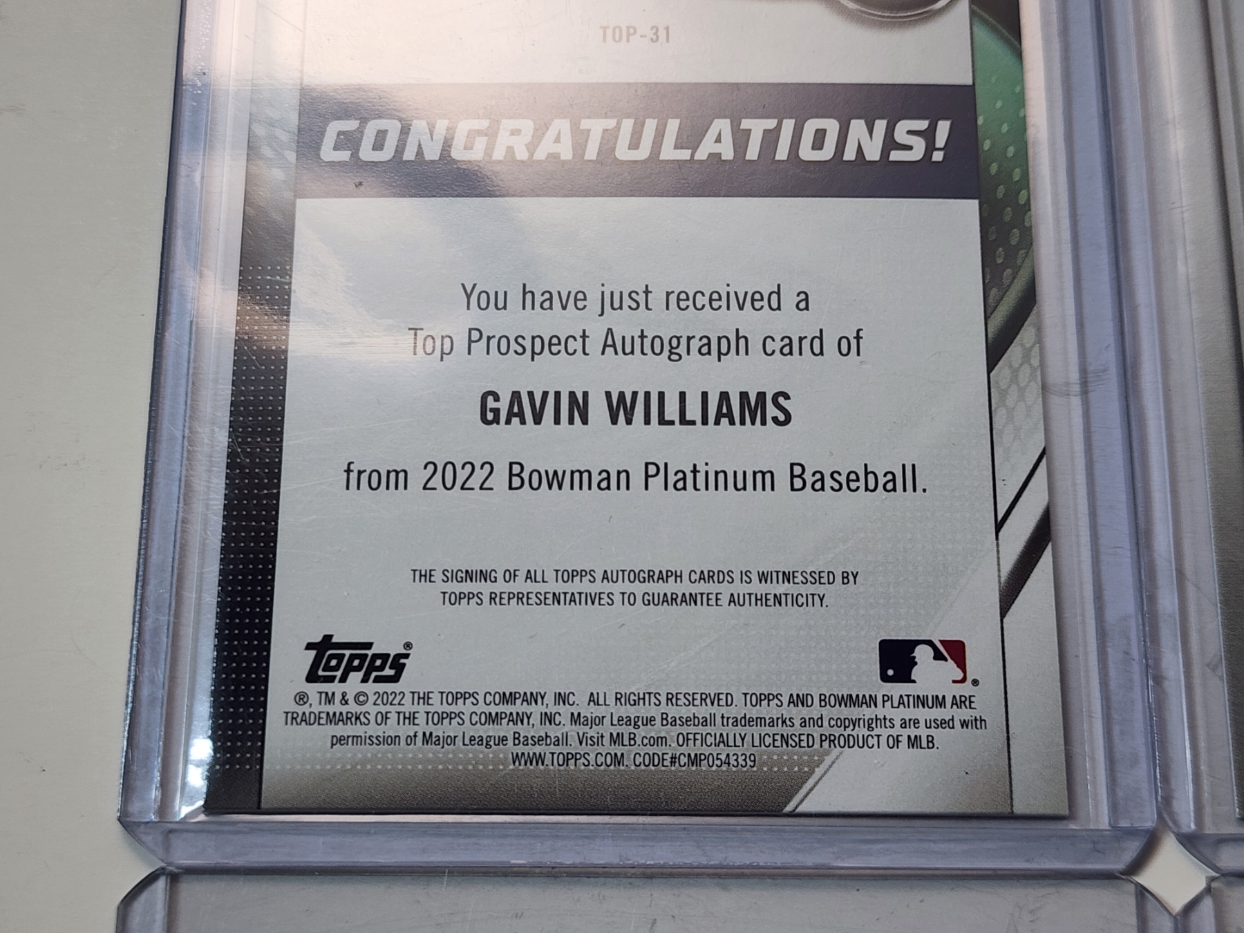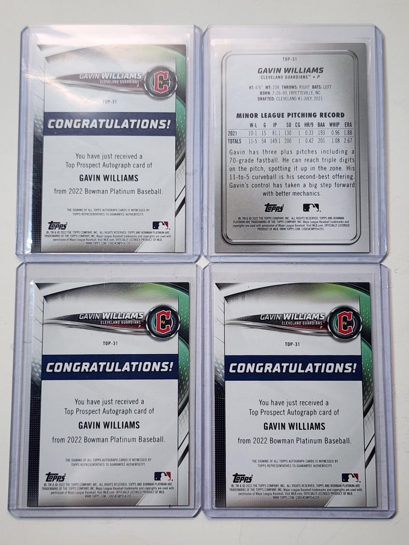 4 Gavin Williams 2022 Topps Bowman Platinum Cards Including 3 Autographed