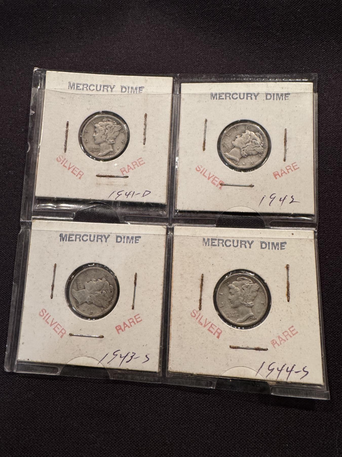 4 - Incredible Silver Mercury United States Dimes - Excellent Condition