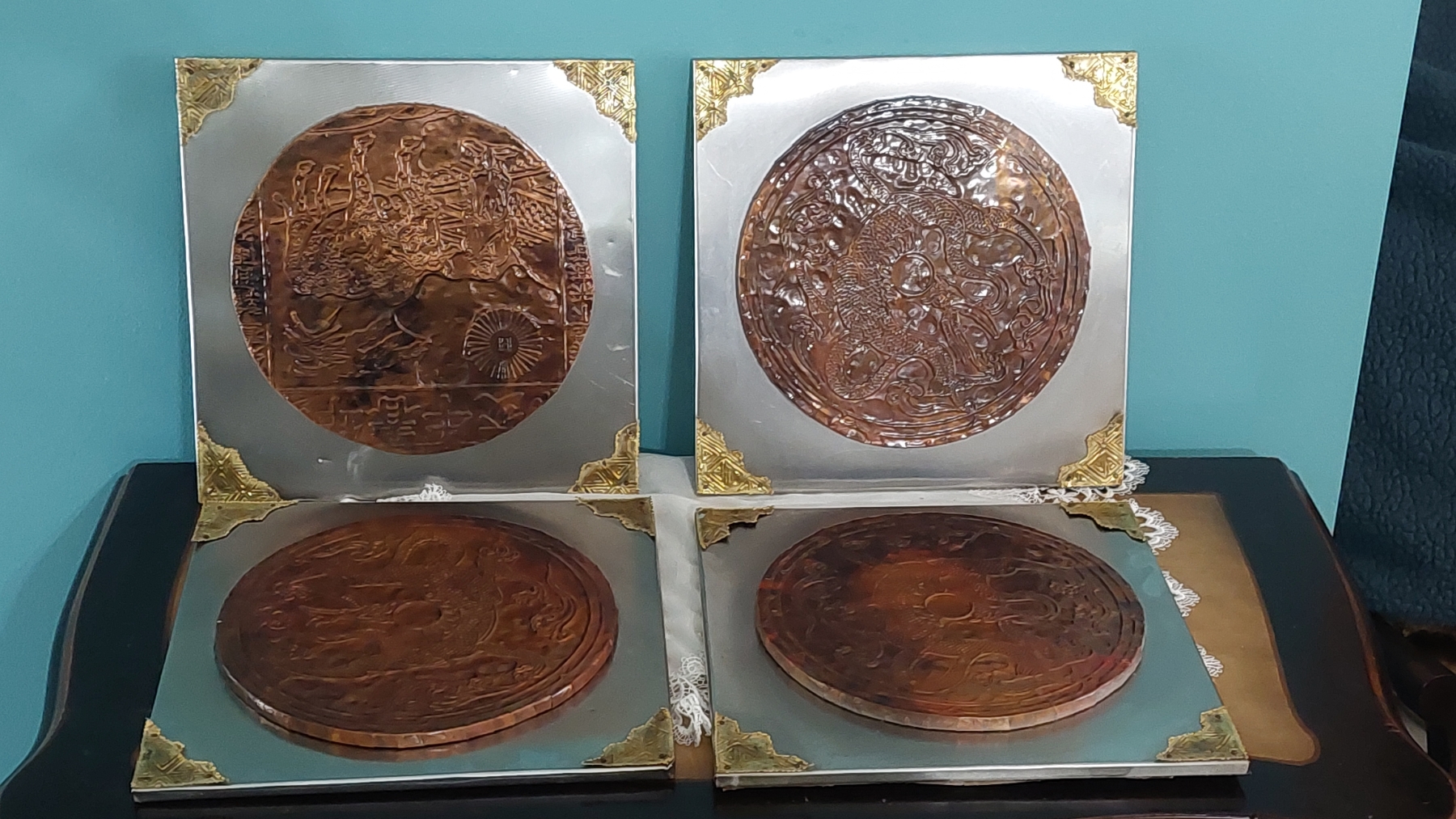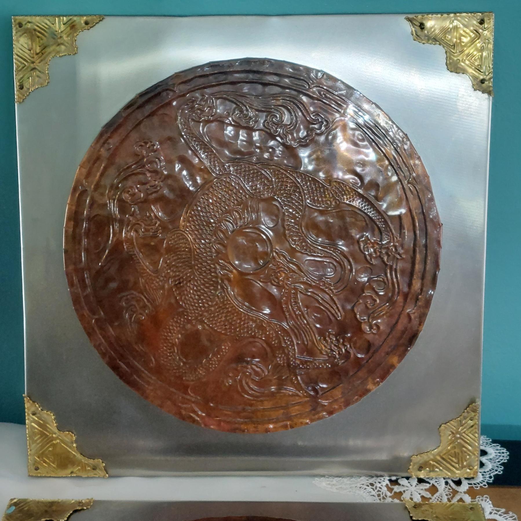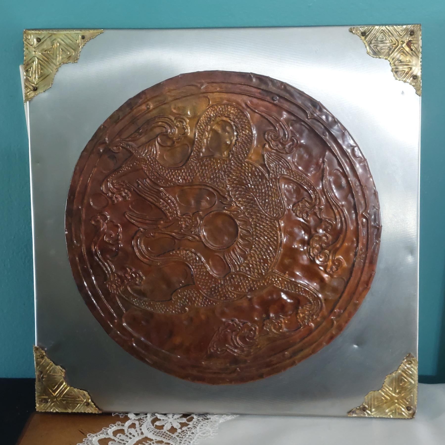 4 Pcs - 12" Copper Hammered Oriental Dragon Plaques - Excellent Vintage Pieces