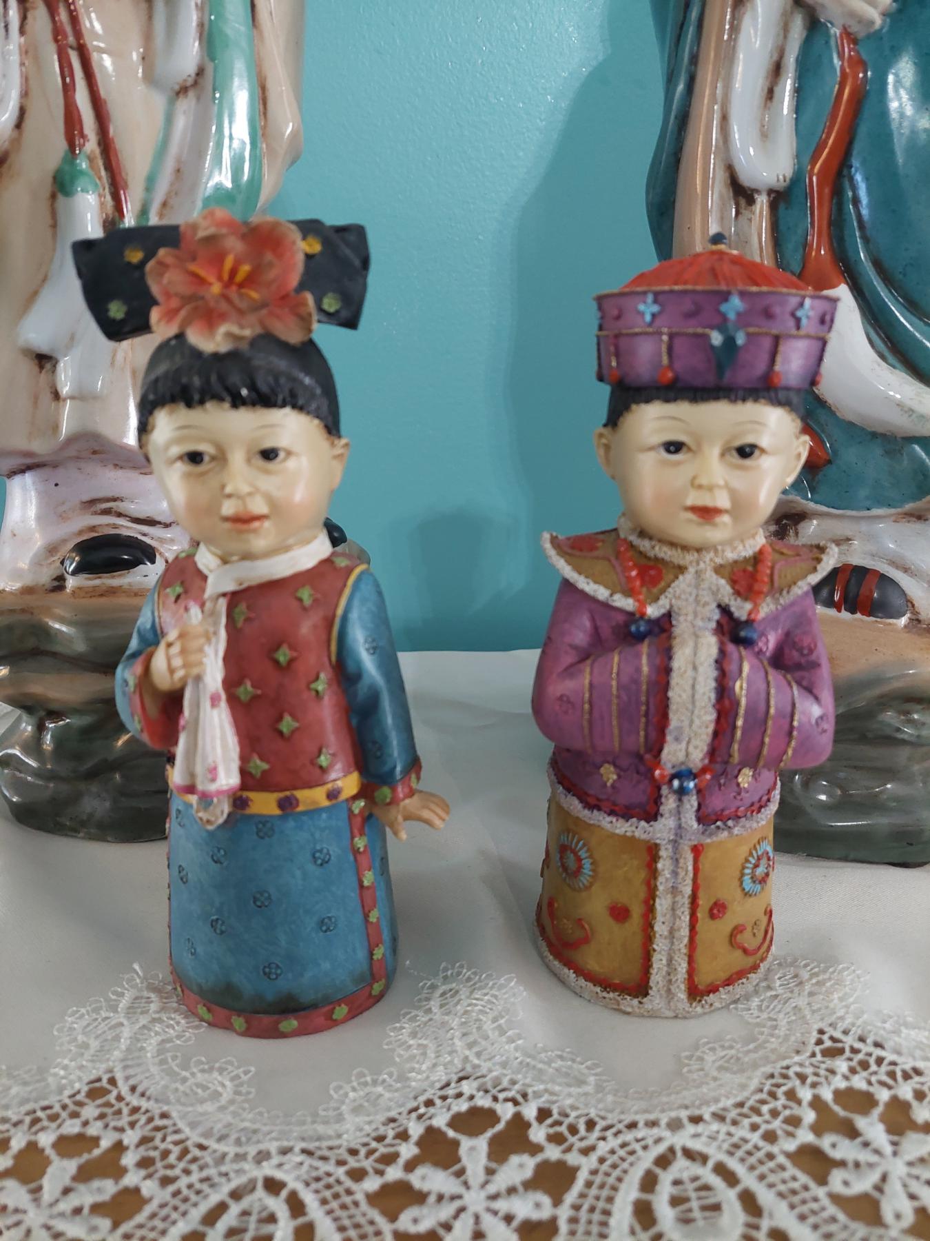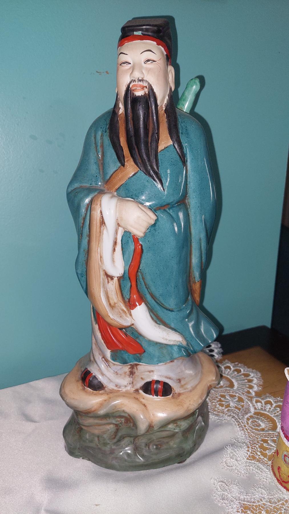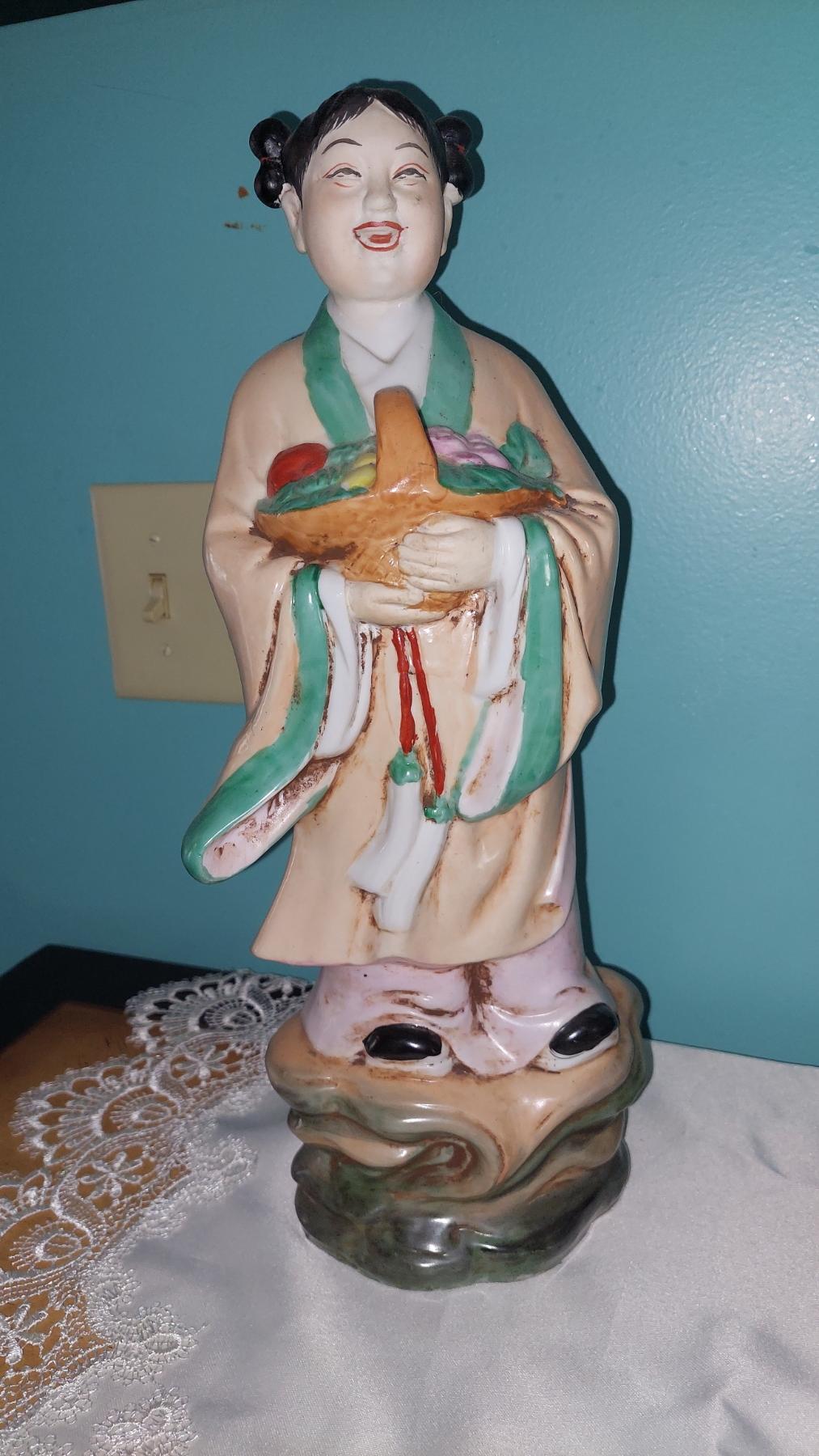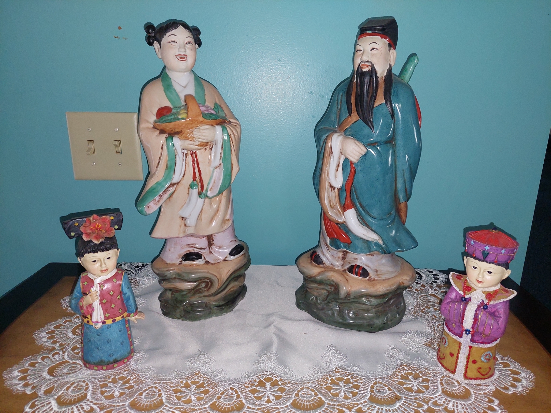 4 Piece Hand Painted Oriental Figurals As Shown 16" & 7" Excellent