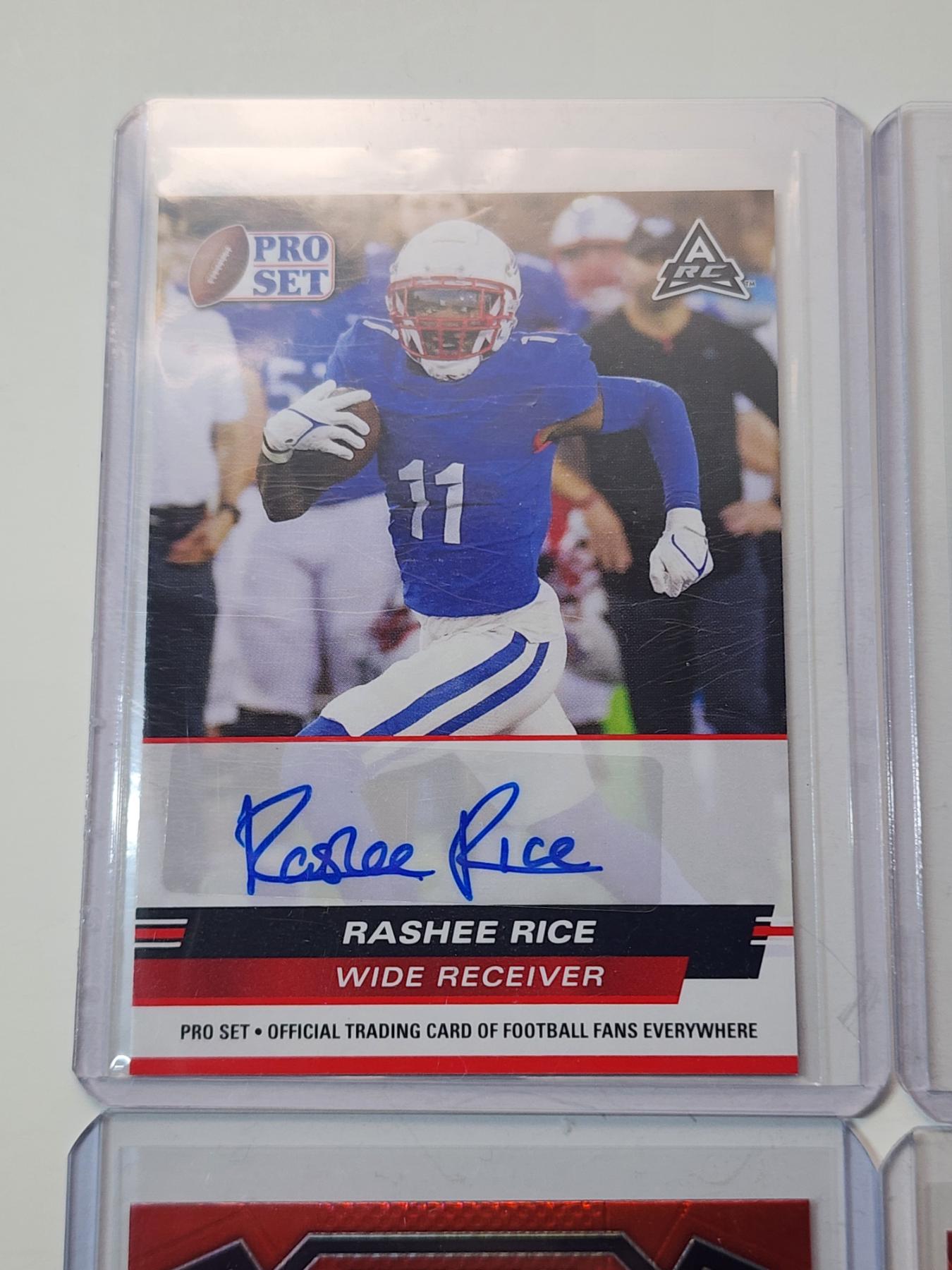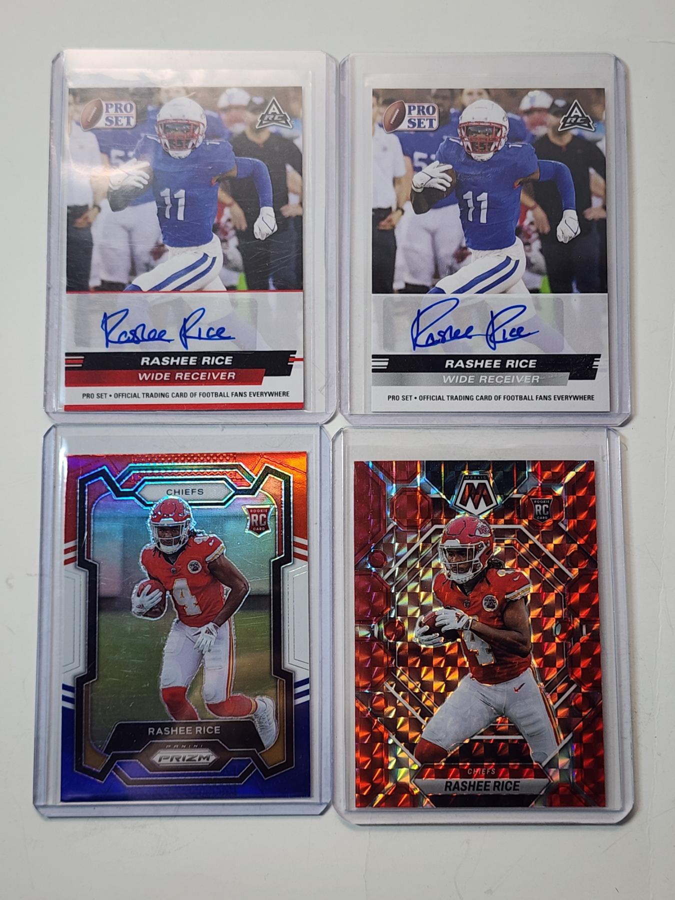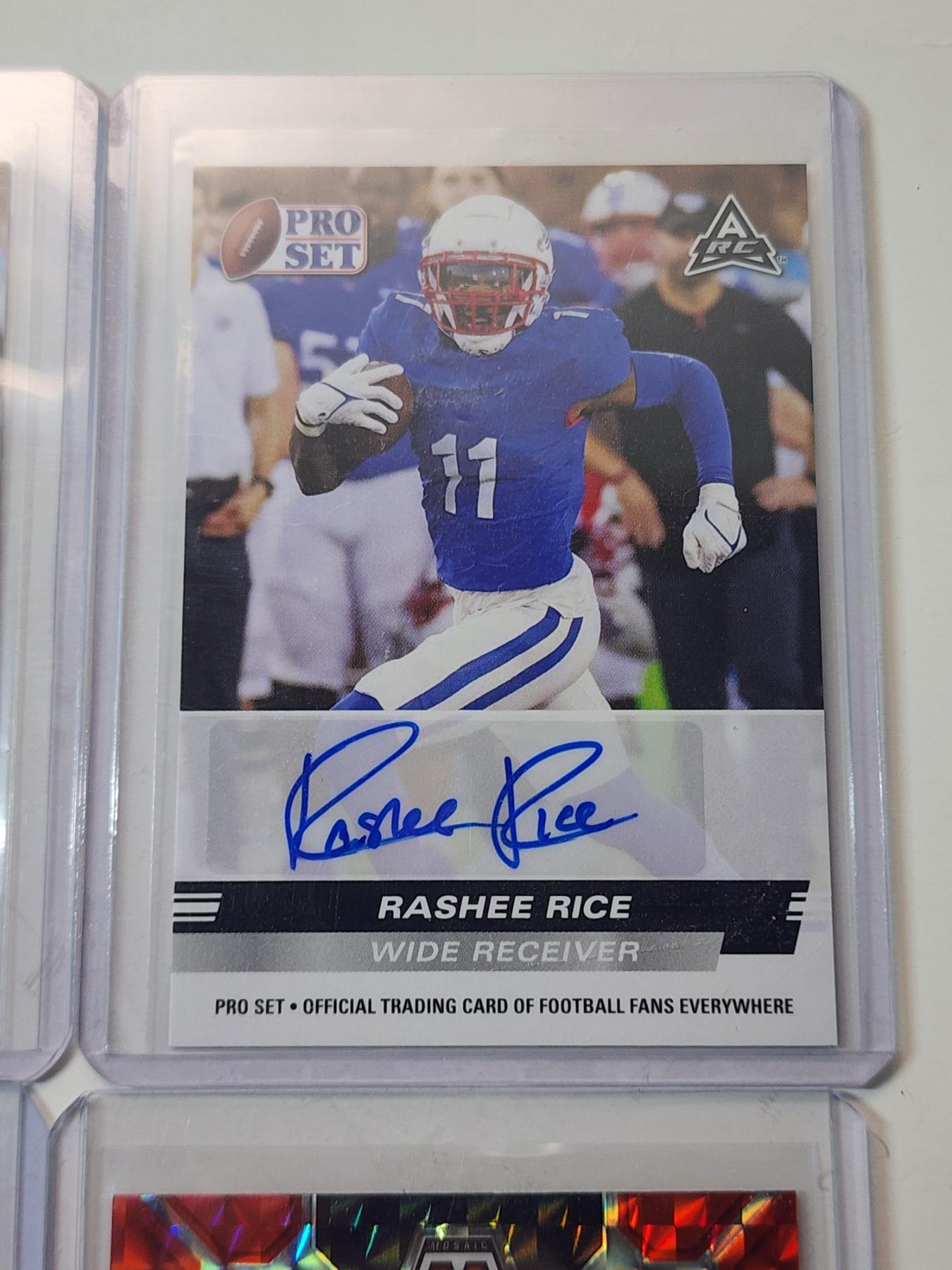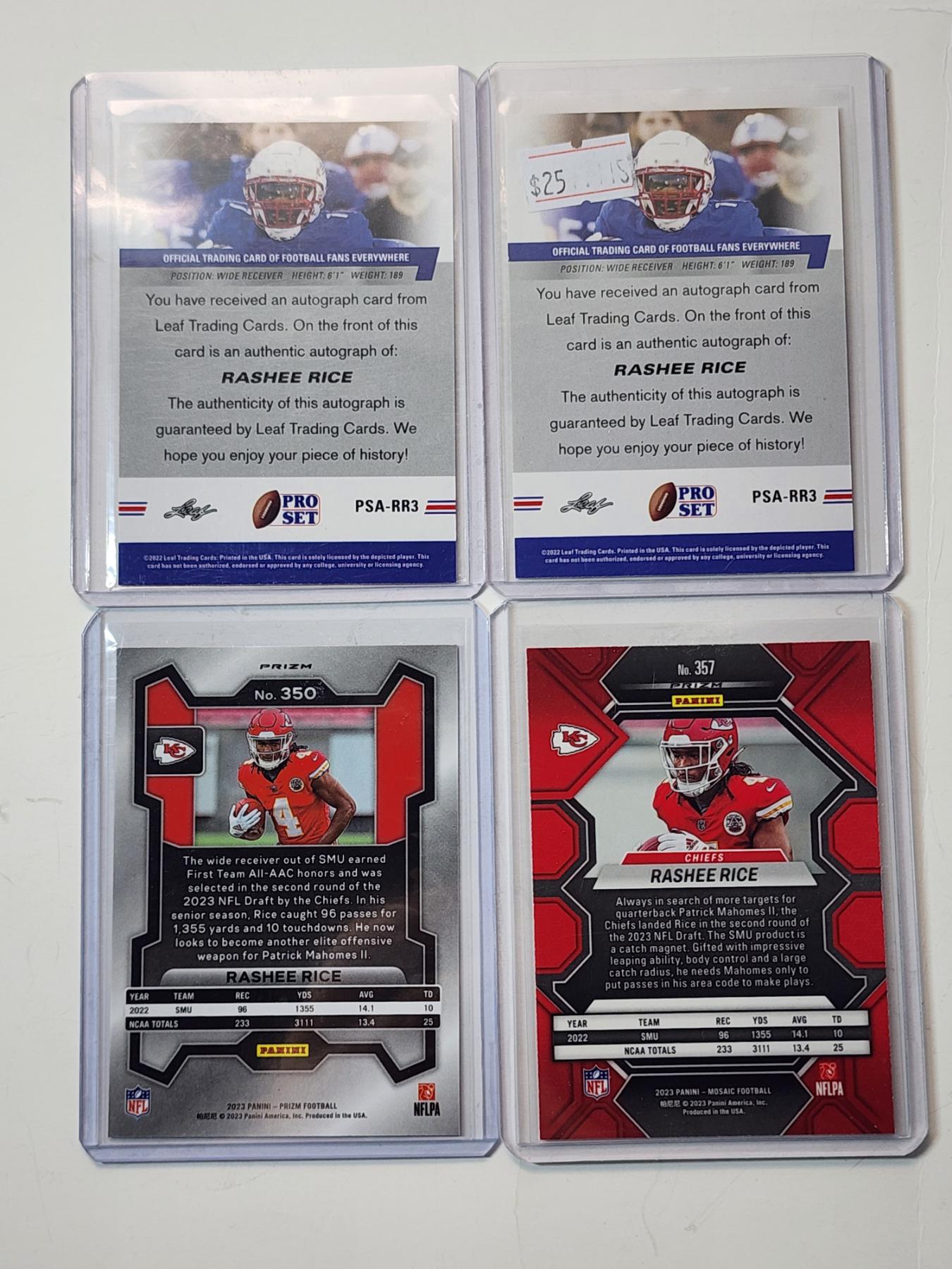 4 Rashee Rice Trading Cards Including Autographed Rookie Cards, Panini Prizm, Mosaic- Mint Condition
