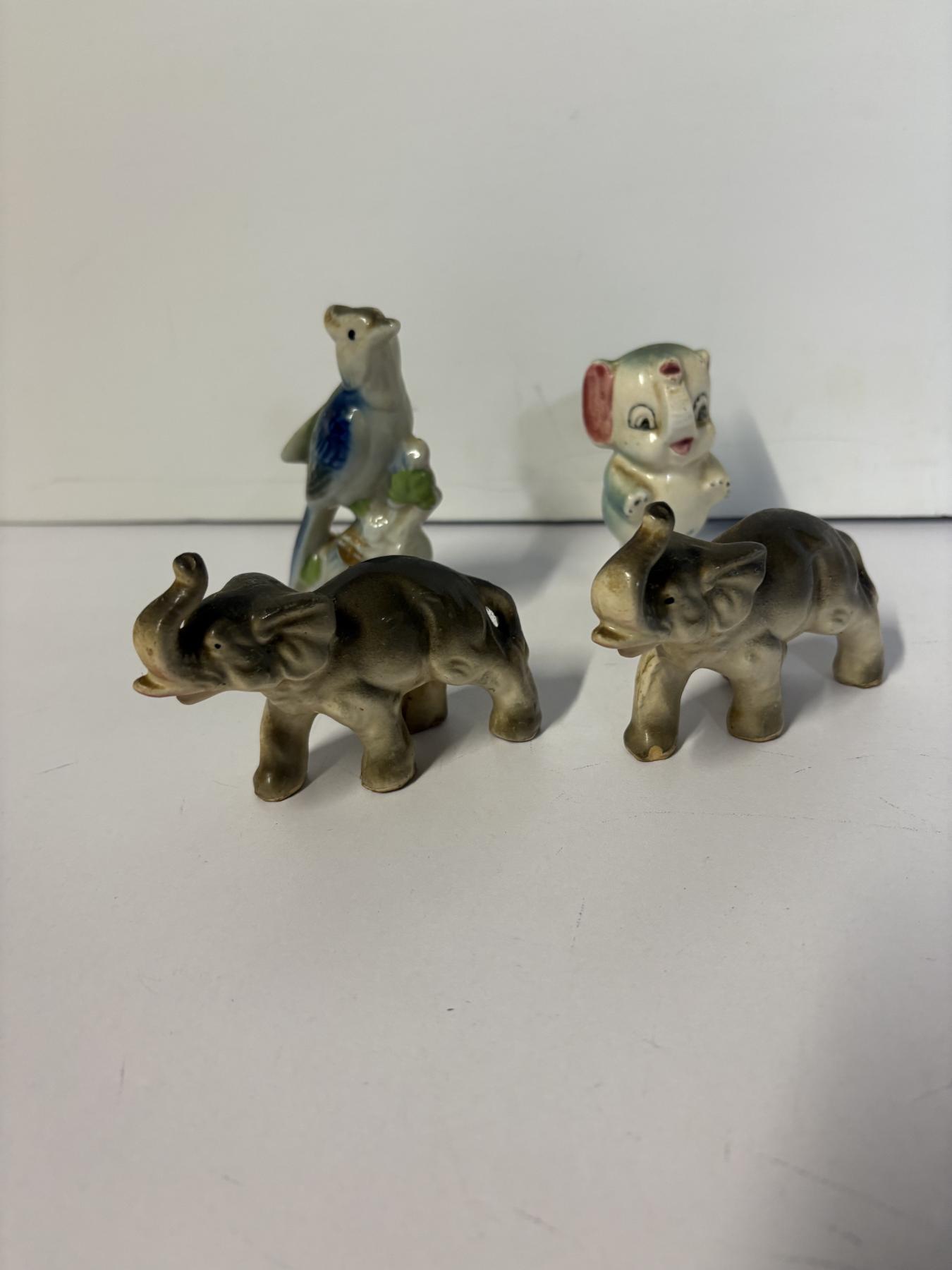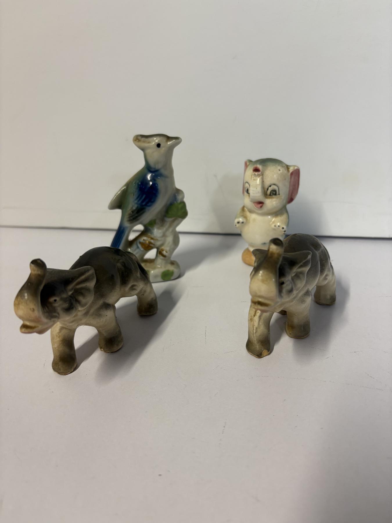 4 Small Animal Collectibles - 3 Elephants - 1 Bird