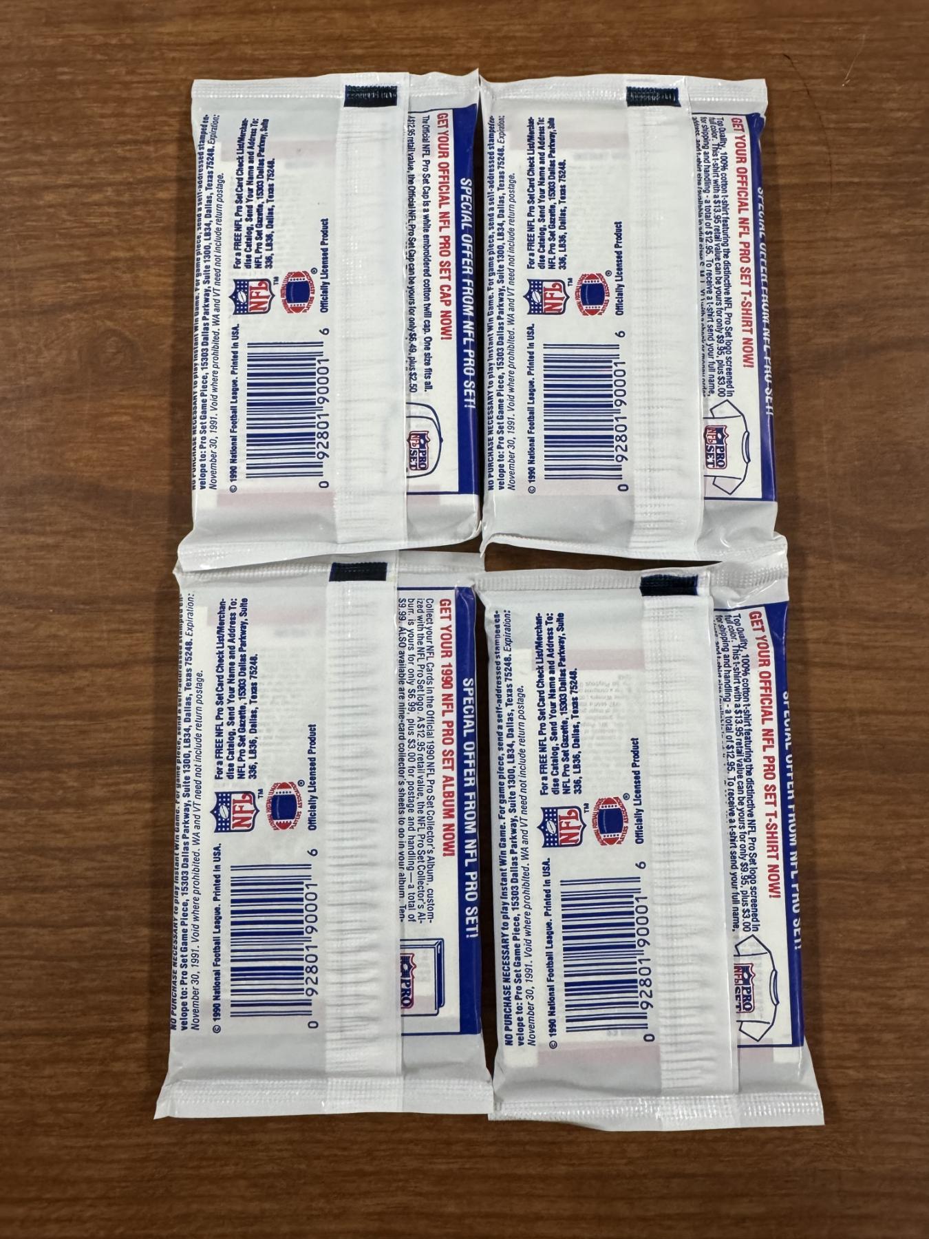 4 - Unopened 1990 Pro Set Wax Packs of Football Cards - 14 Cards Per Pack
