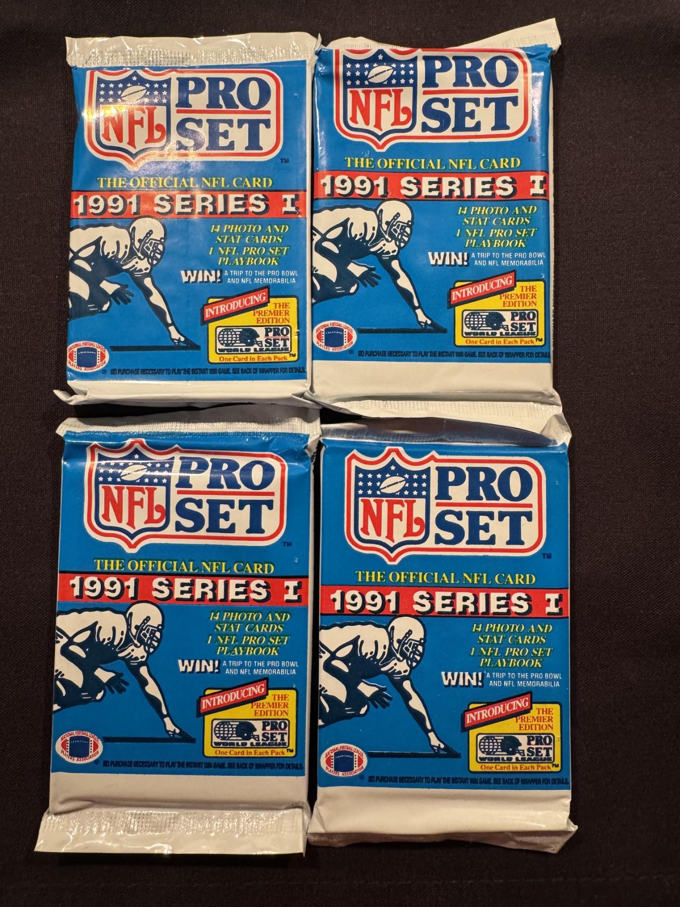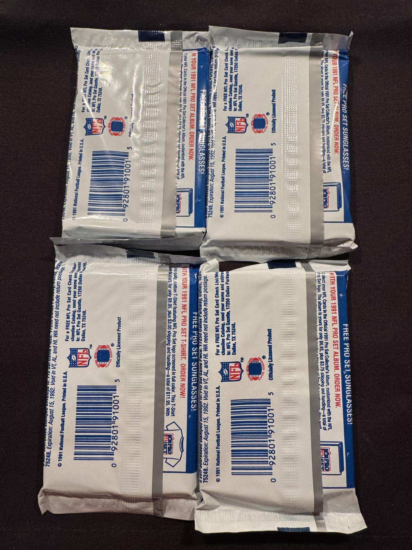 4 - Unopened 1991 Pro Set Wax Packs of Football Cards - 14 Cards Per Pack