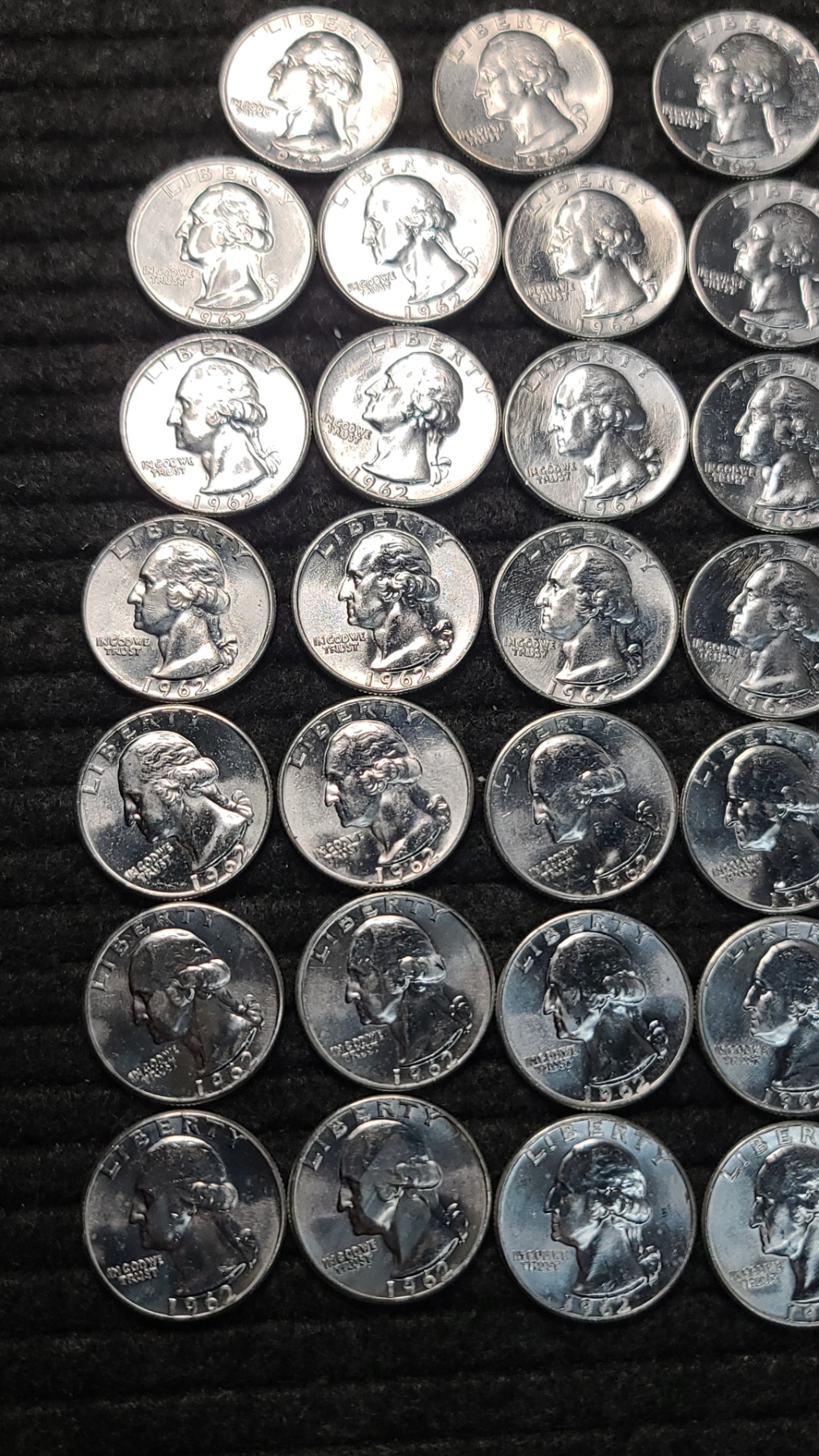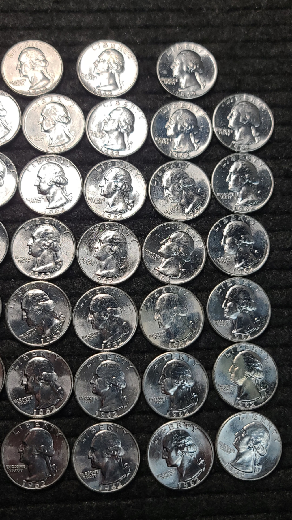 (40) 1962 Washington 90% Silver Quarters Face Value: $10