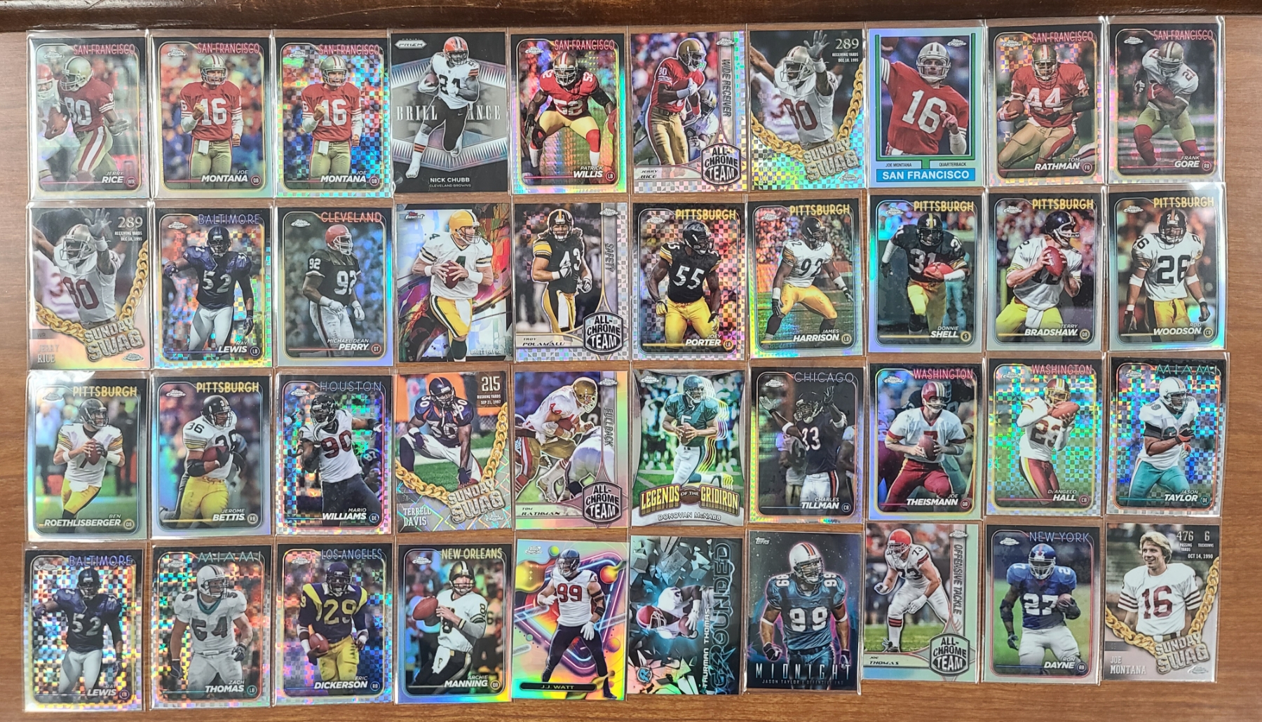 40 Assorted Near Mint Newer (2020 & Like) Football Trading Cards Including Joe Montana, Jerome Bettis & More!