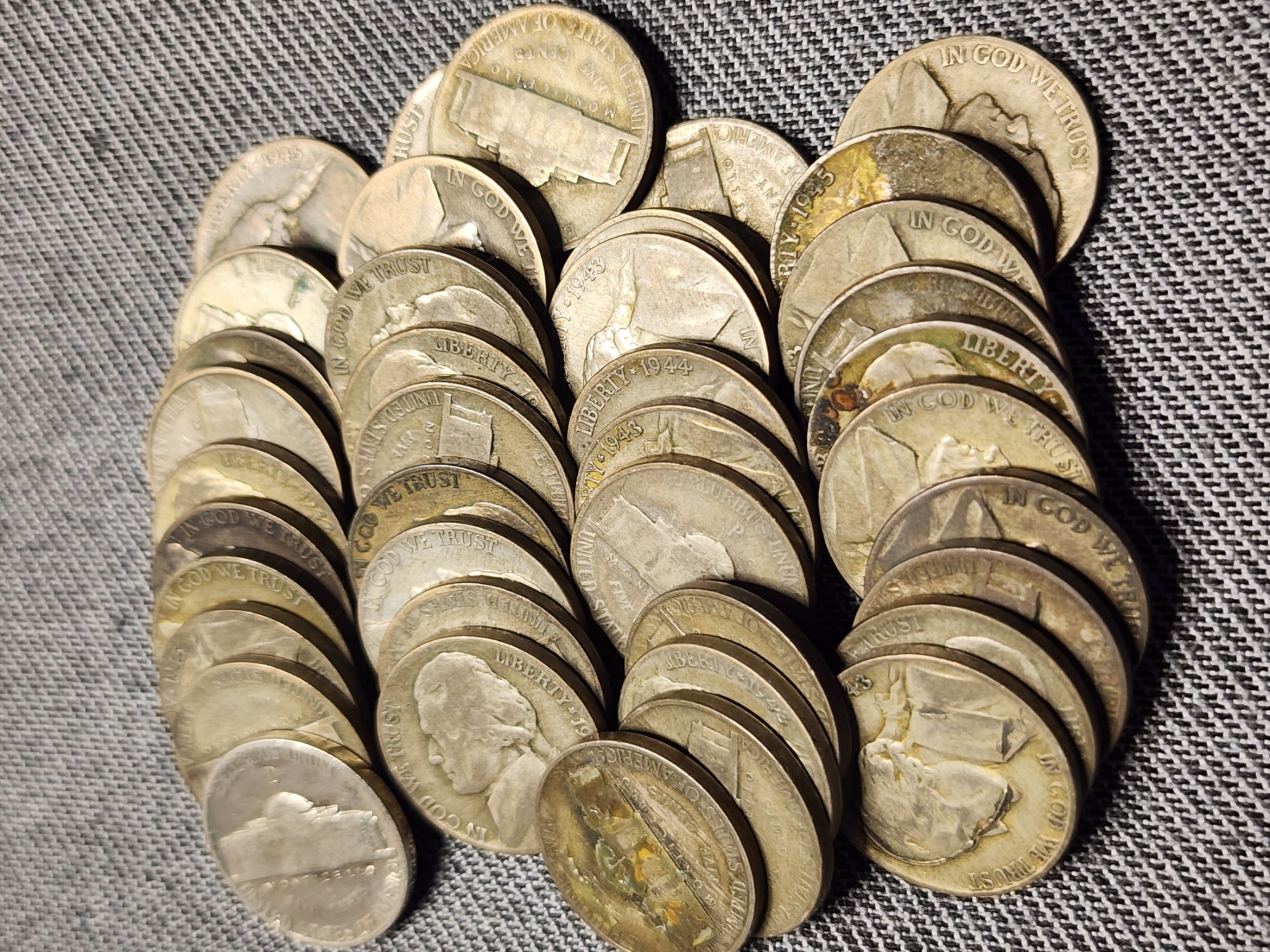 40 Assorted United States Silver Wartime Nickels - About 2.2 OZ ASW Altogether