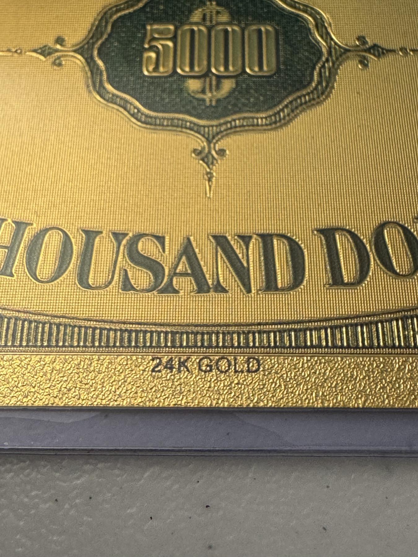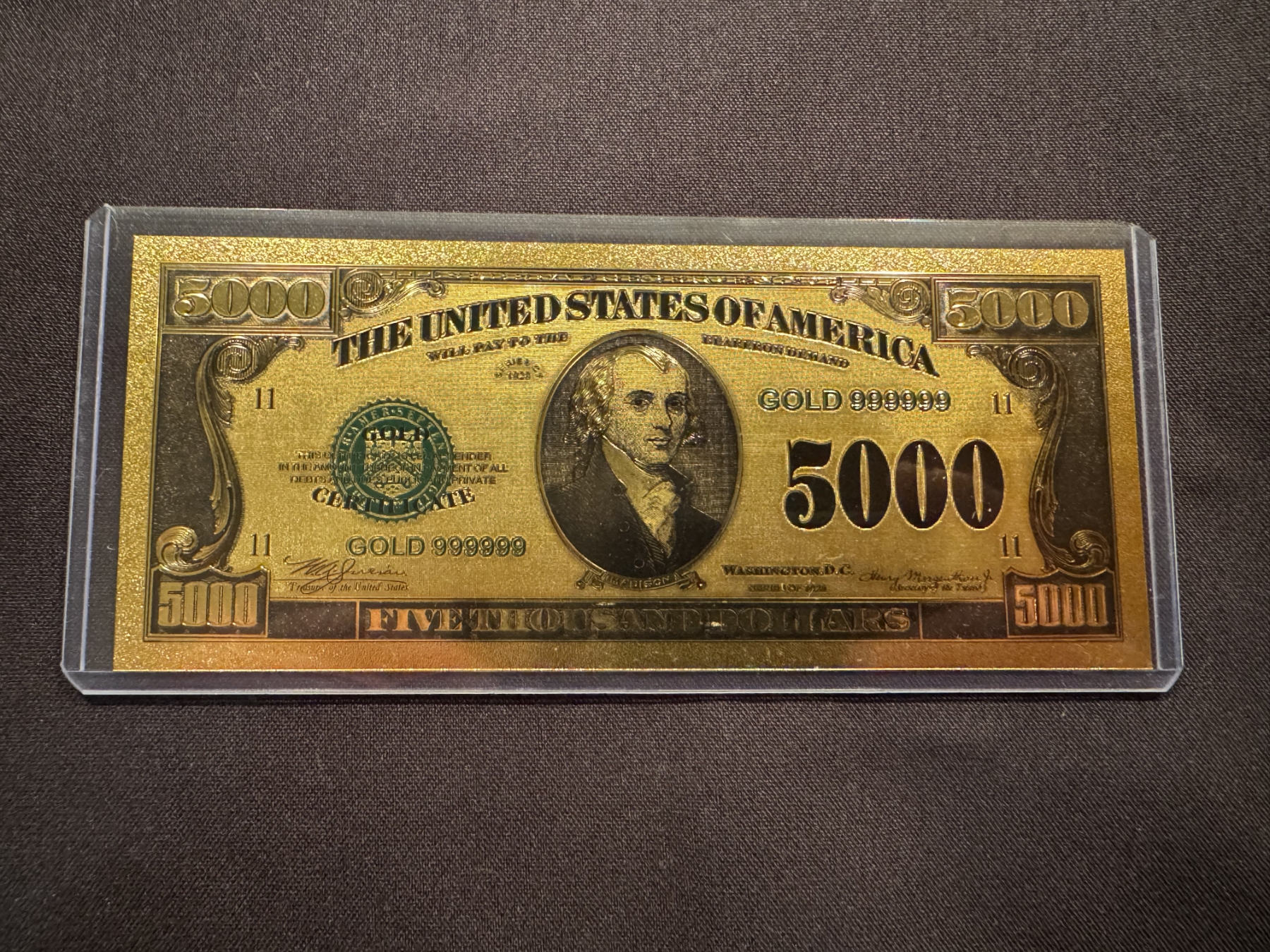 $5,000 James Madison Pure 24k .999999 Gold Foil Note - Mint Condition
