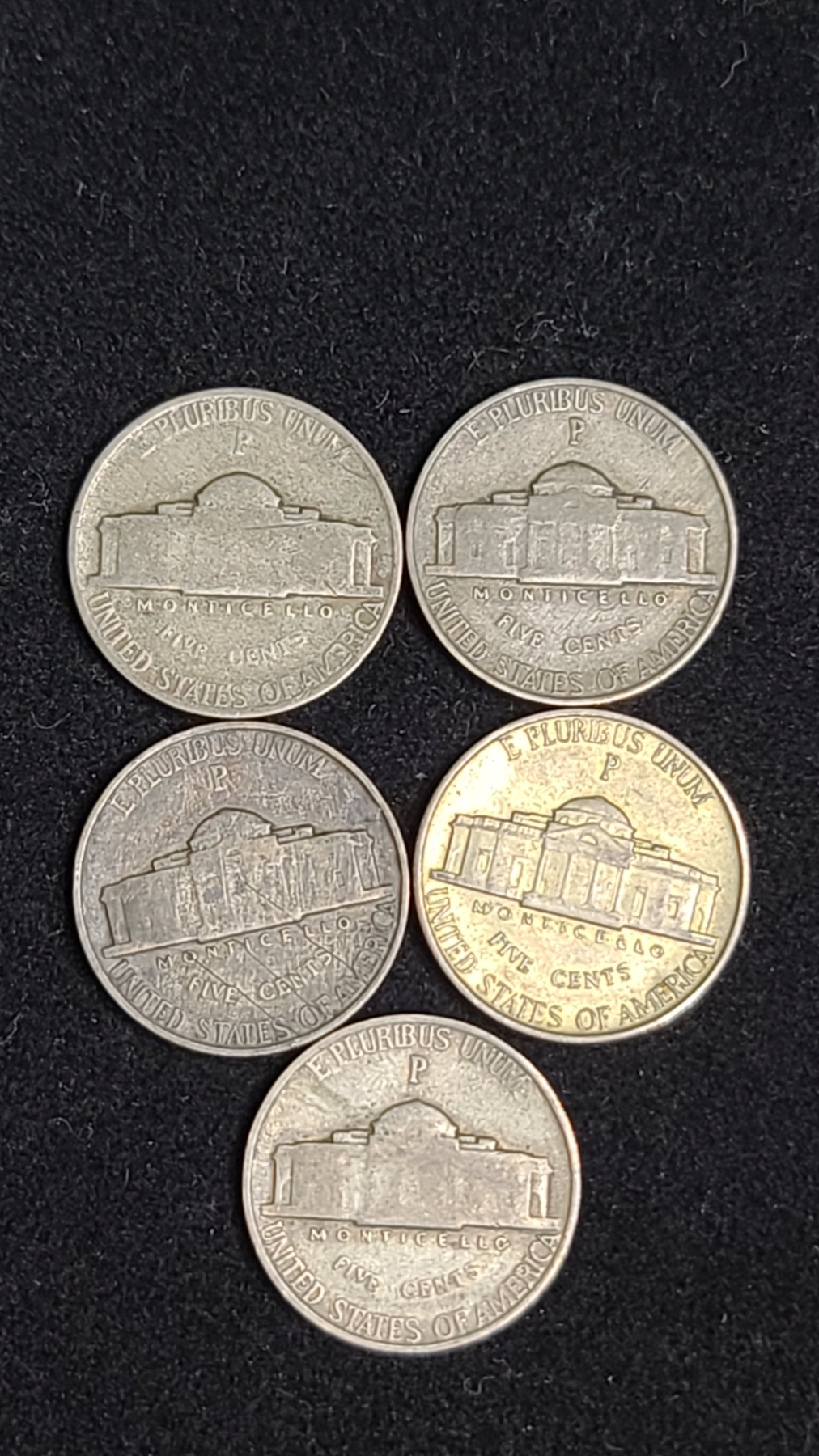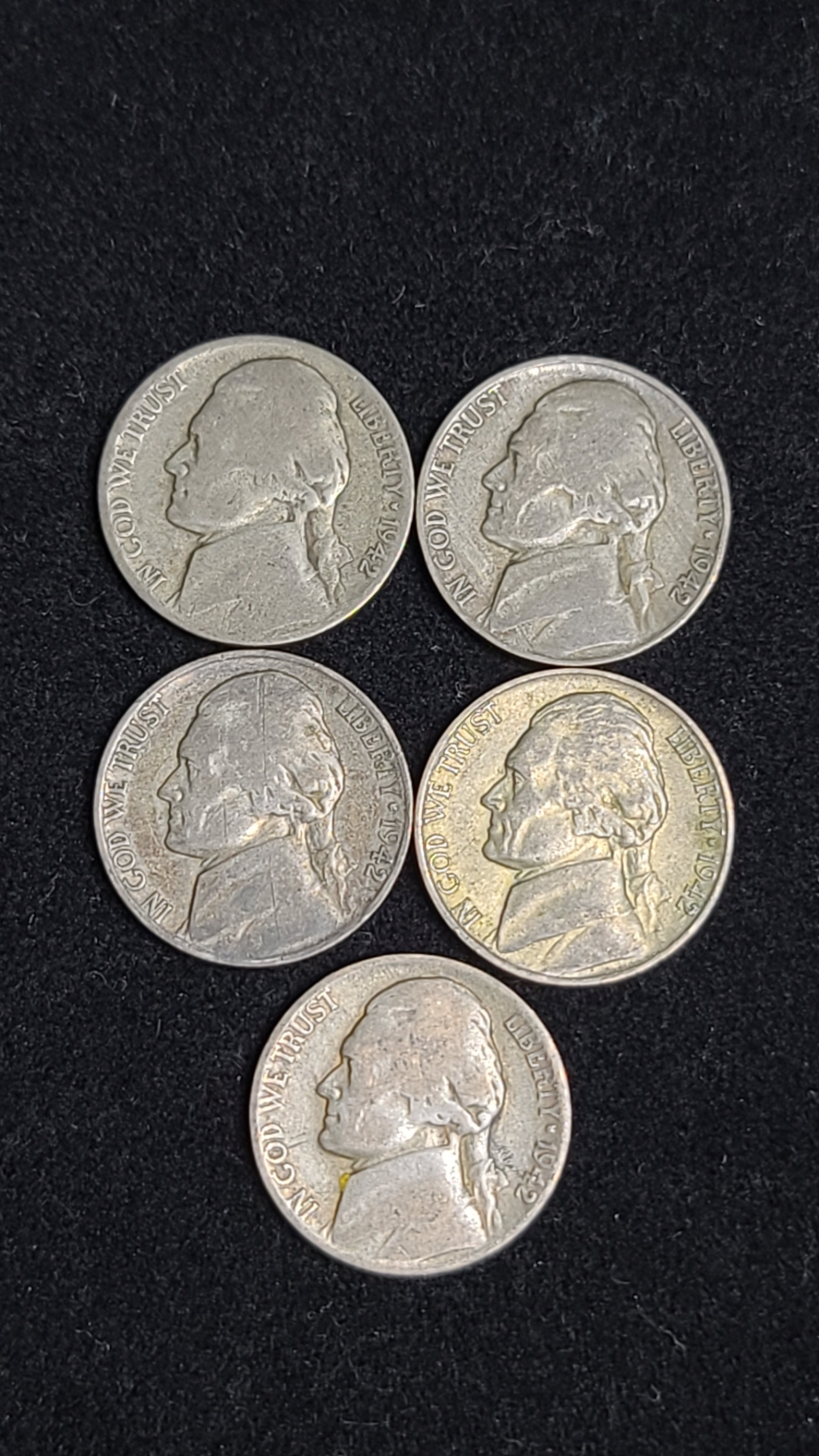 (5) 1942 Jefferson Wartime 35% Silver Nickels - Face Value: $0.25