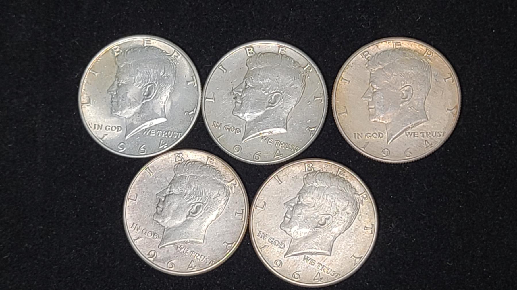 (5) 1964 90% Silver Kennedy Half Dollars - Face Value: $2.50