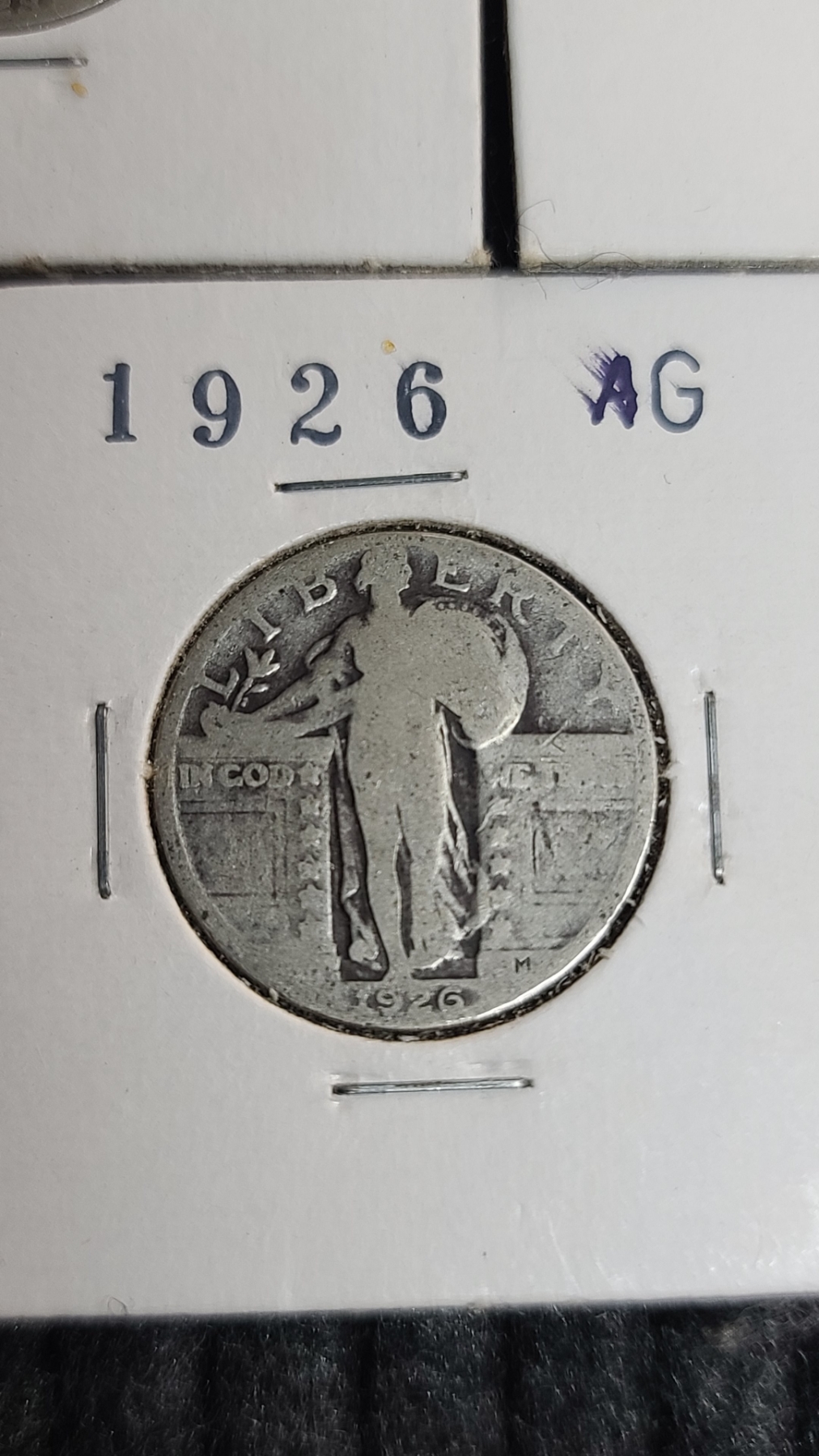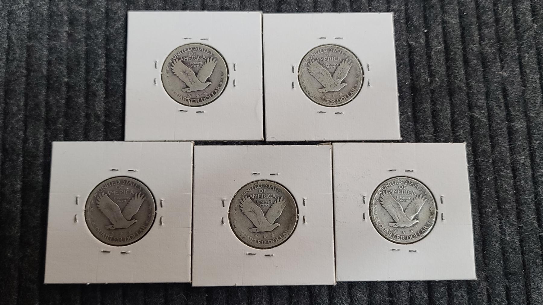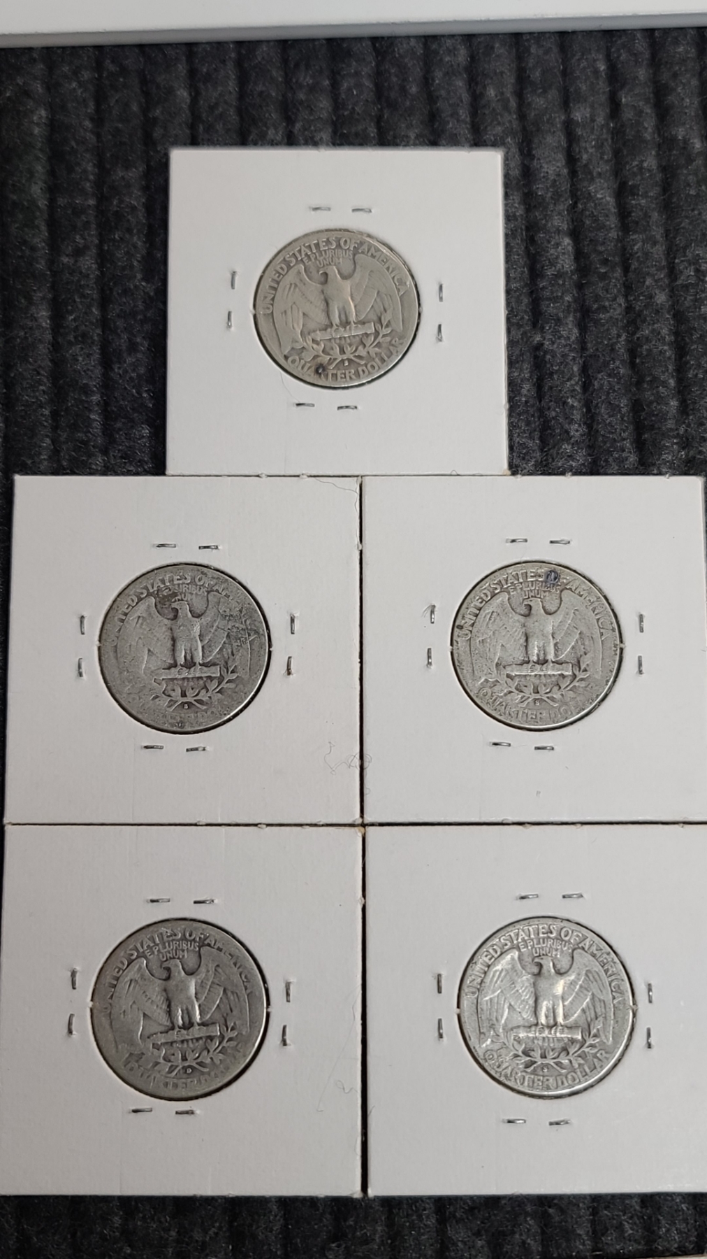 (5) 90% Silver Washington Quarters 1940-S, 1941-D, 1942-S, 1942-S & 1942-S & (5) 90% Silver Standing Liberty Quarters 1926, 1927, 1928, 1928 & 1929