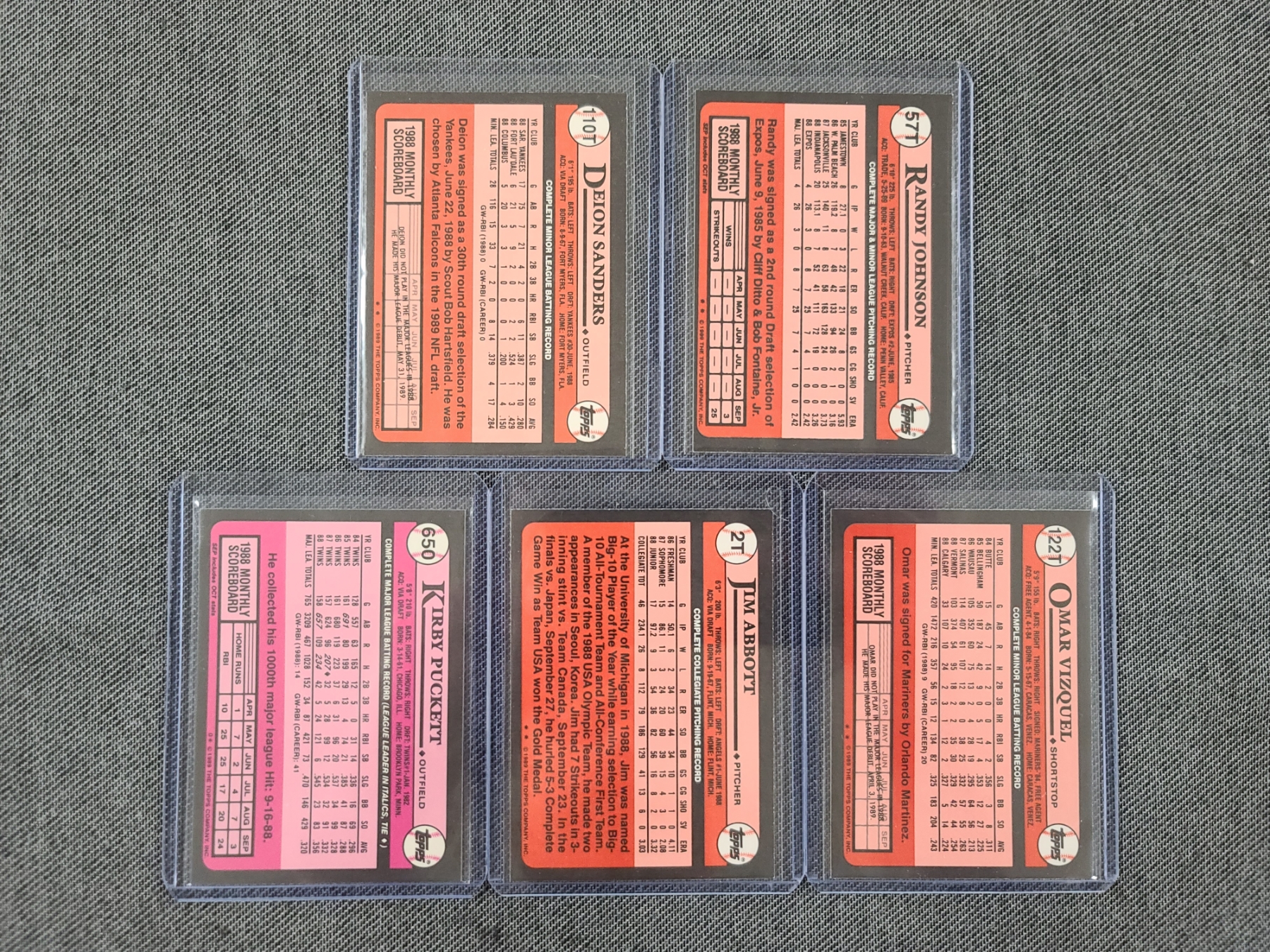5 Assorted 1989 Topps Tiffany Near Mint Baseball Trading Cards Including Kirby Puckett, Deion Sanders & More!