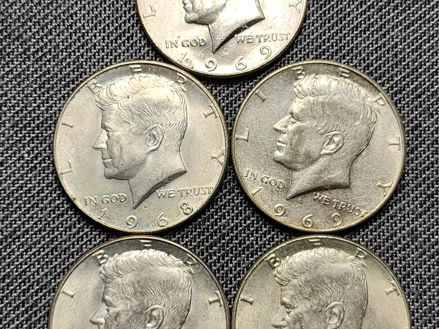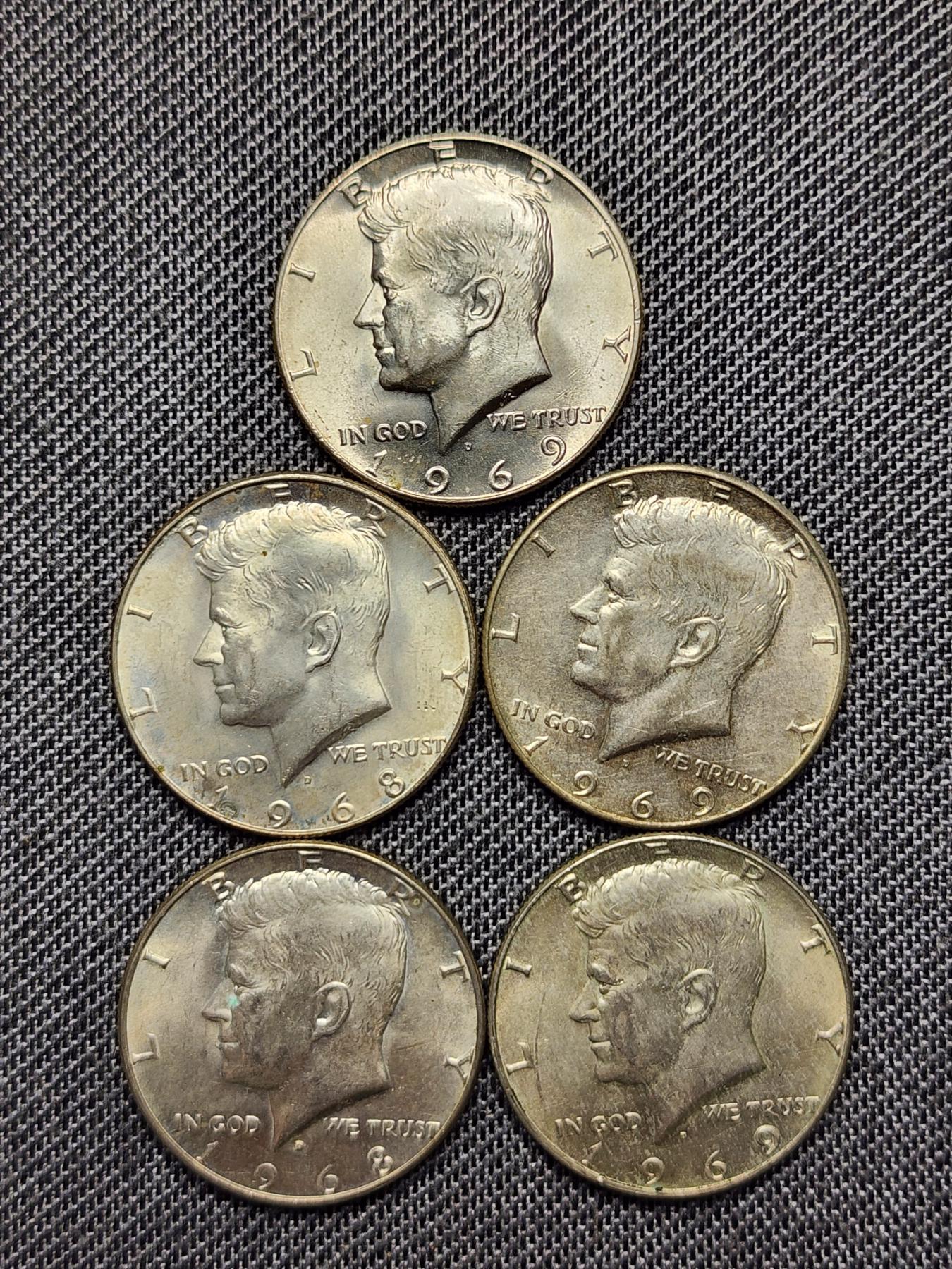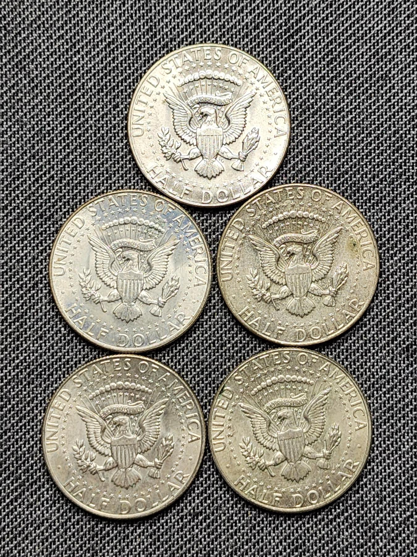 5 Assorted 40% Silver Kennedy Half Dollars - $2.50 Face Value