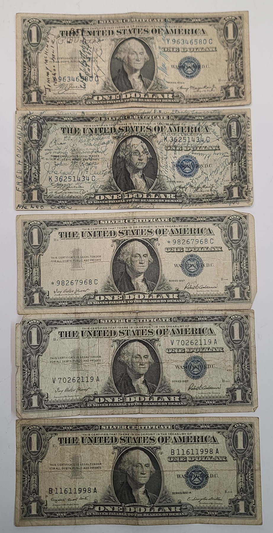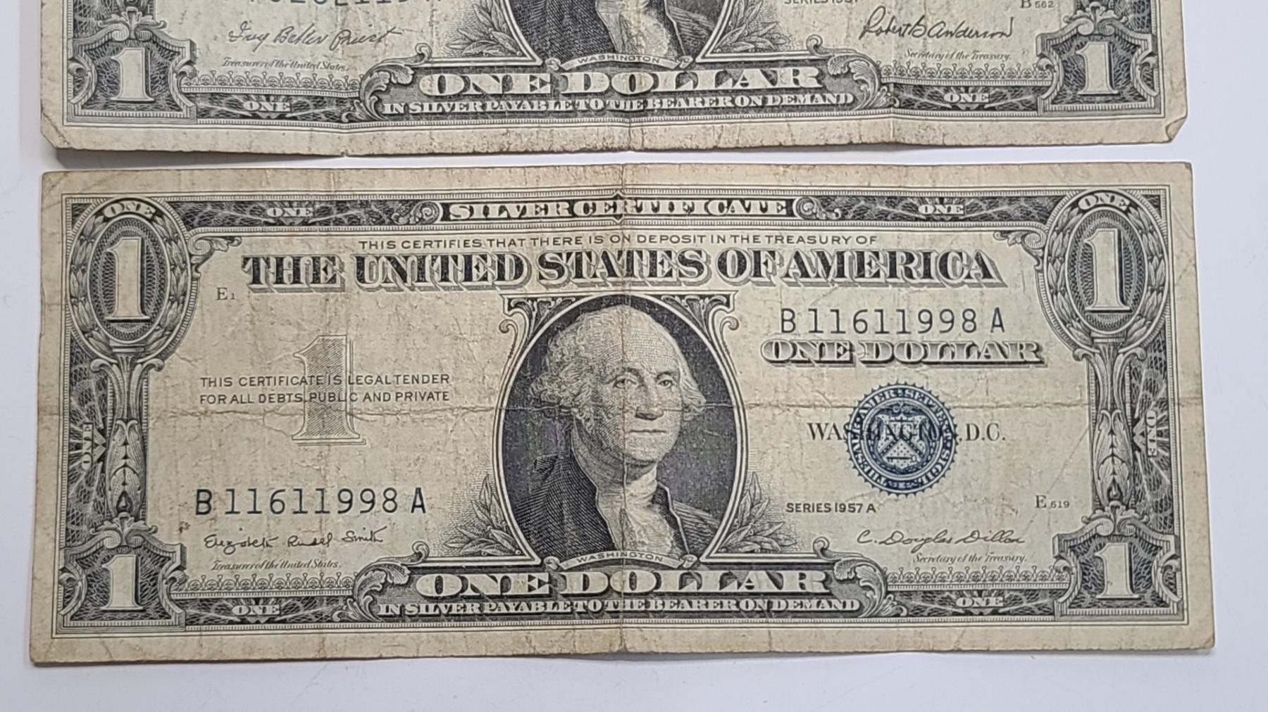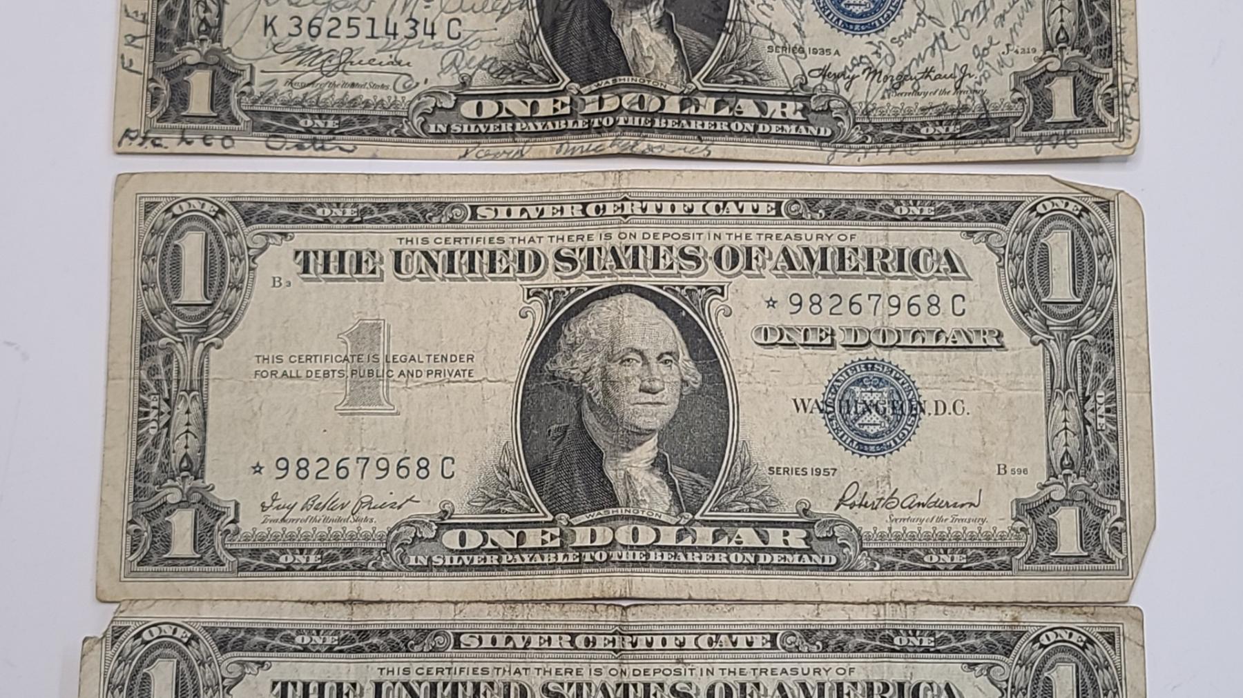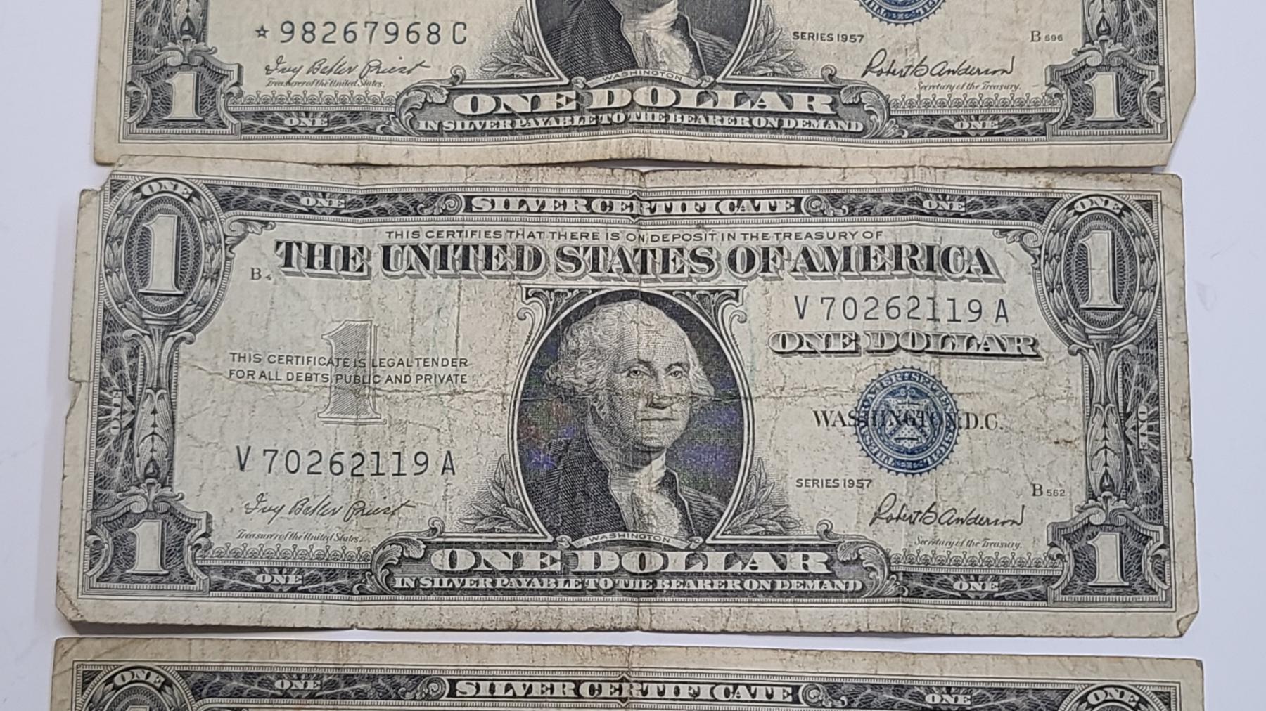 (5) Assorted United States $1 Silver Certificates - Series 1935A, 1957 x2, 1957A x2