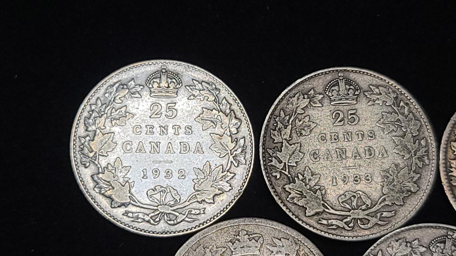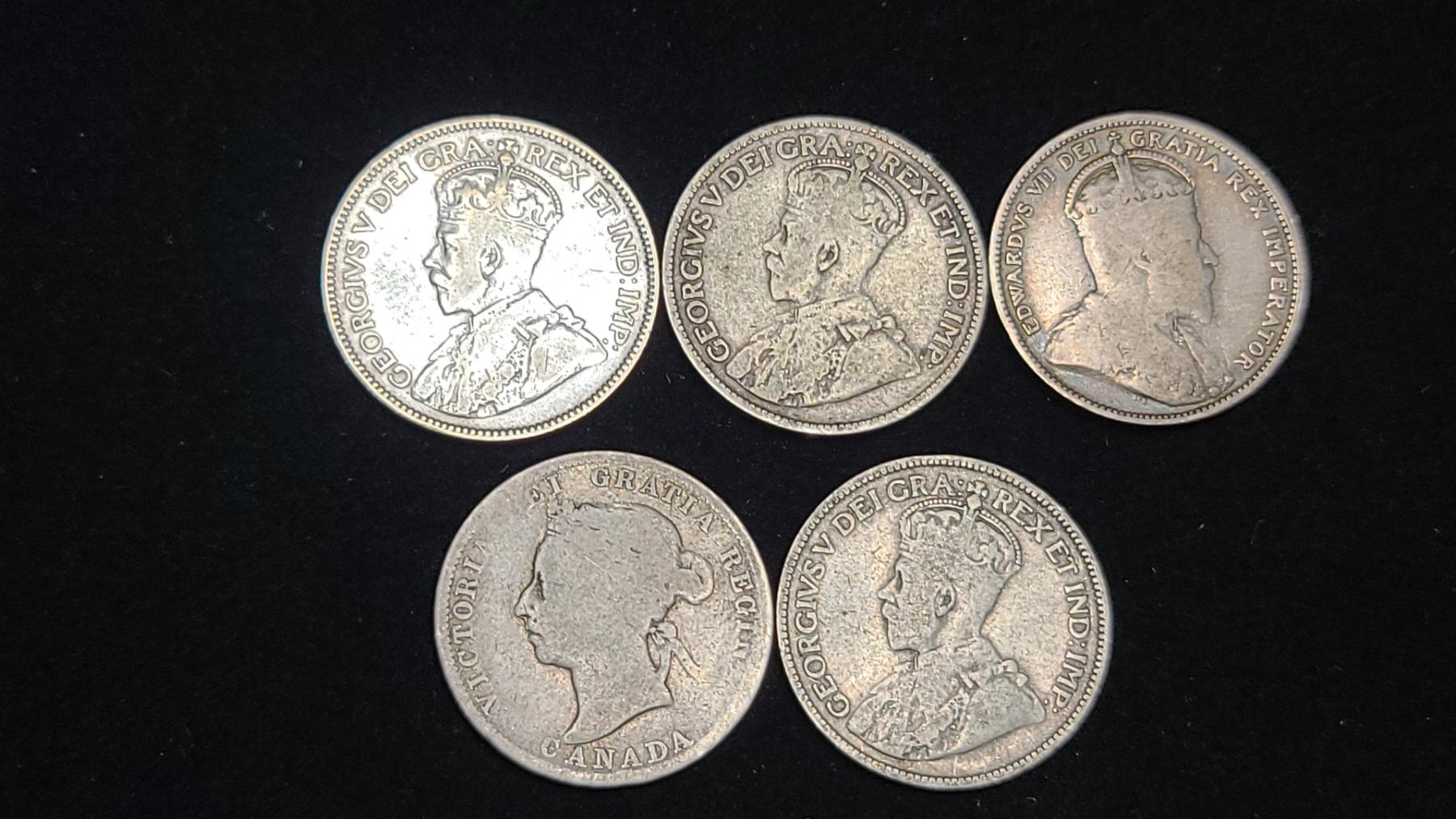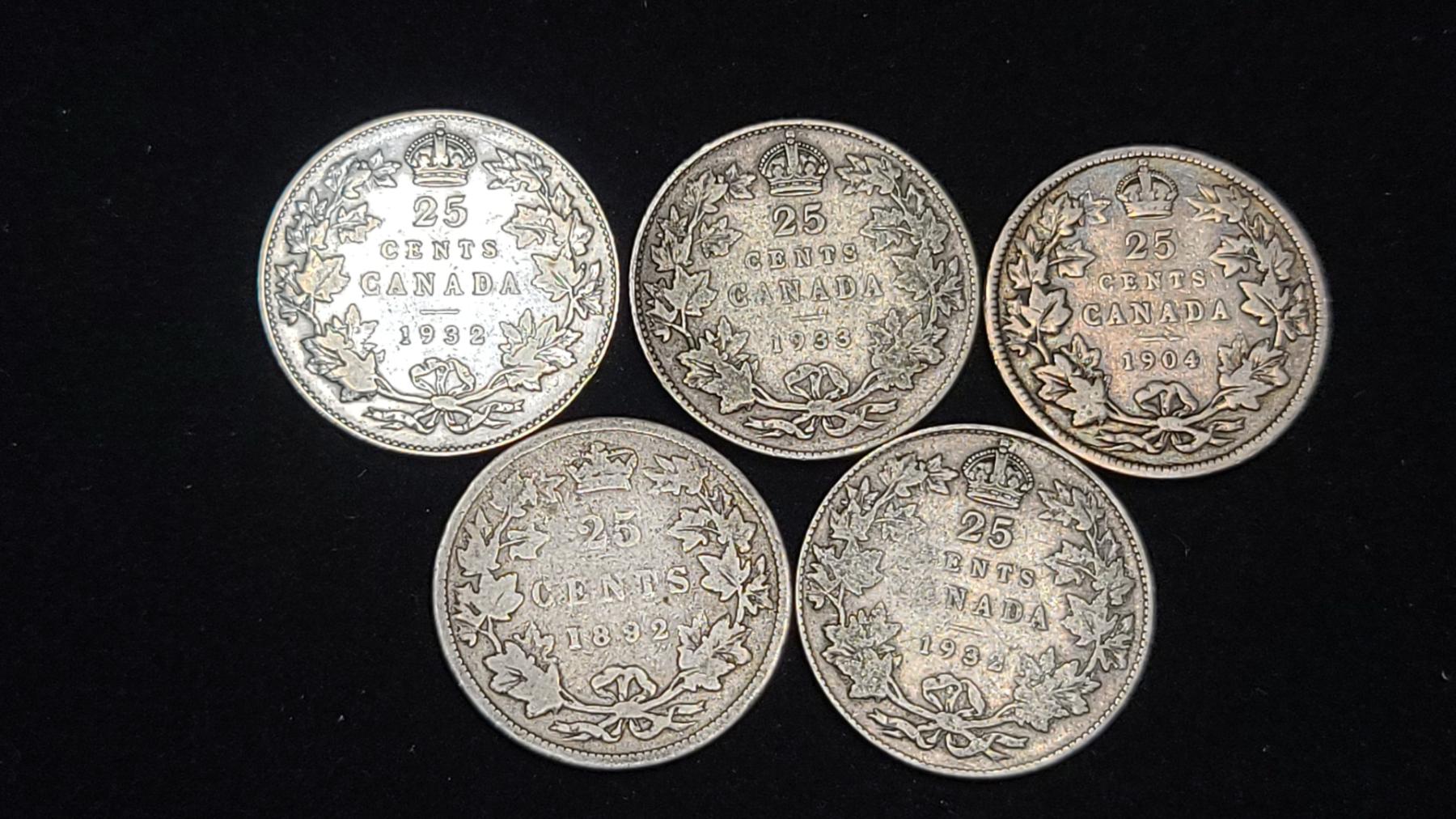 (5) Assorted Years & Obverse Legends Canadian 25 Cent 0.9250 Silver Coins