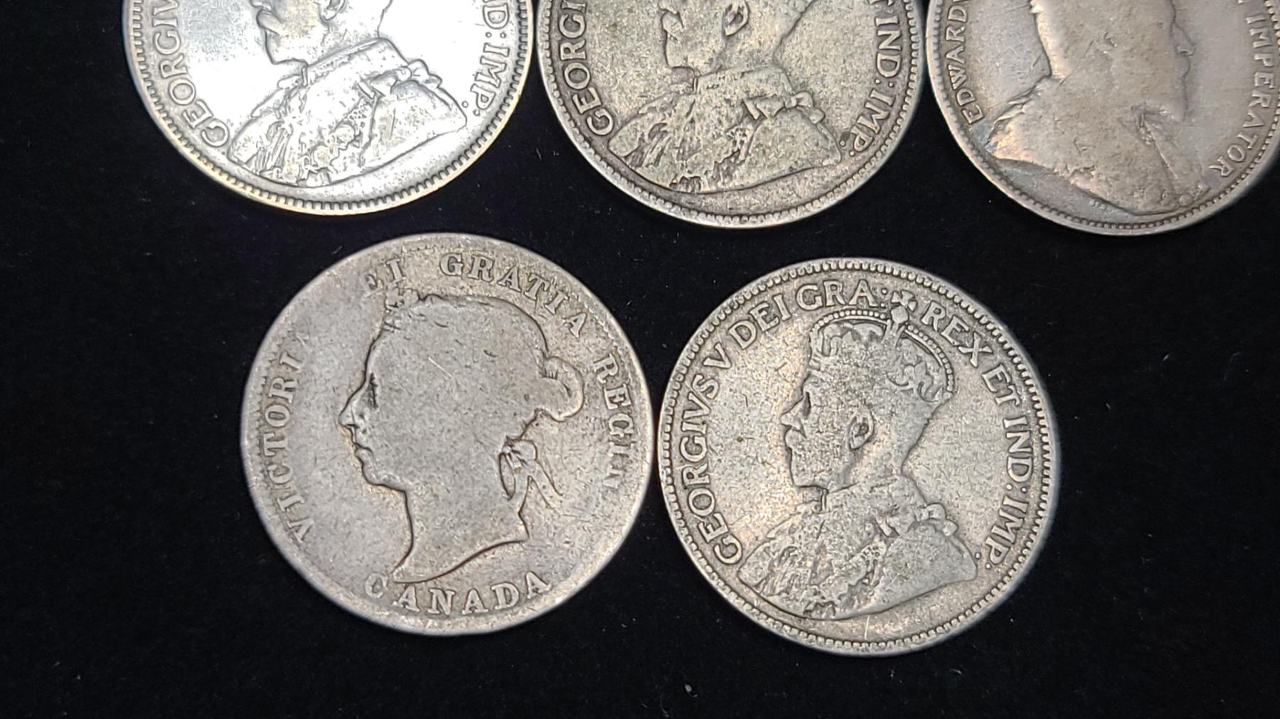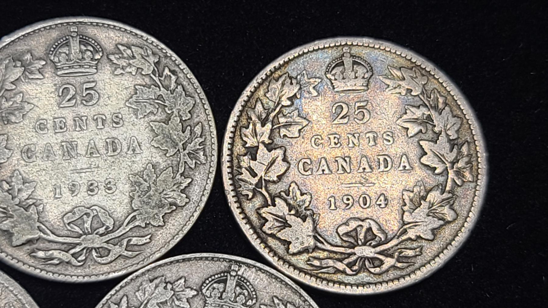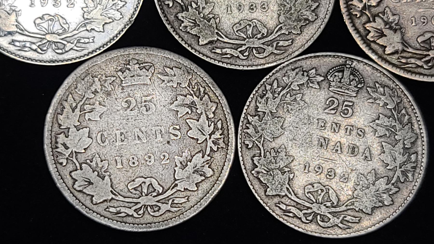 (5) Assorted Years & Obverse Legends Canadian 25 Cent 0.9250 Silver Coins