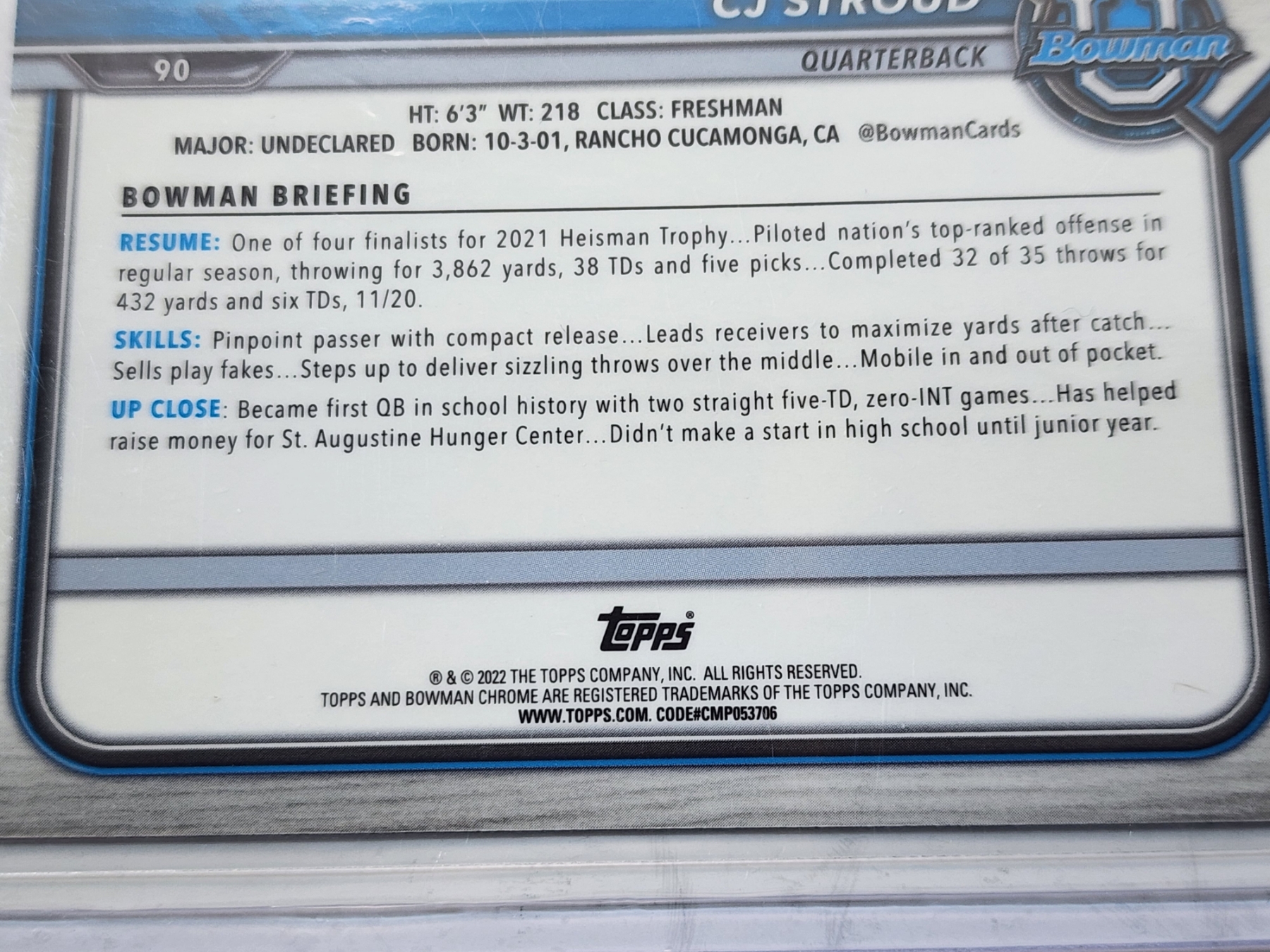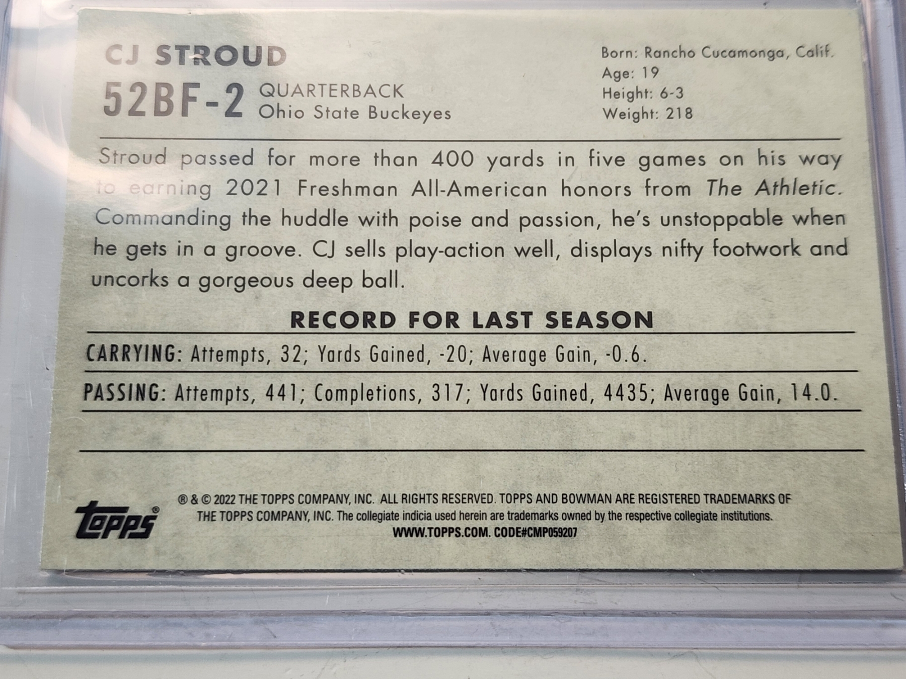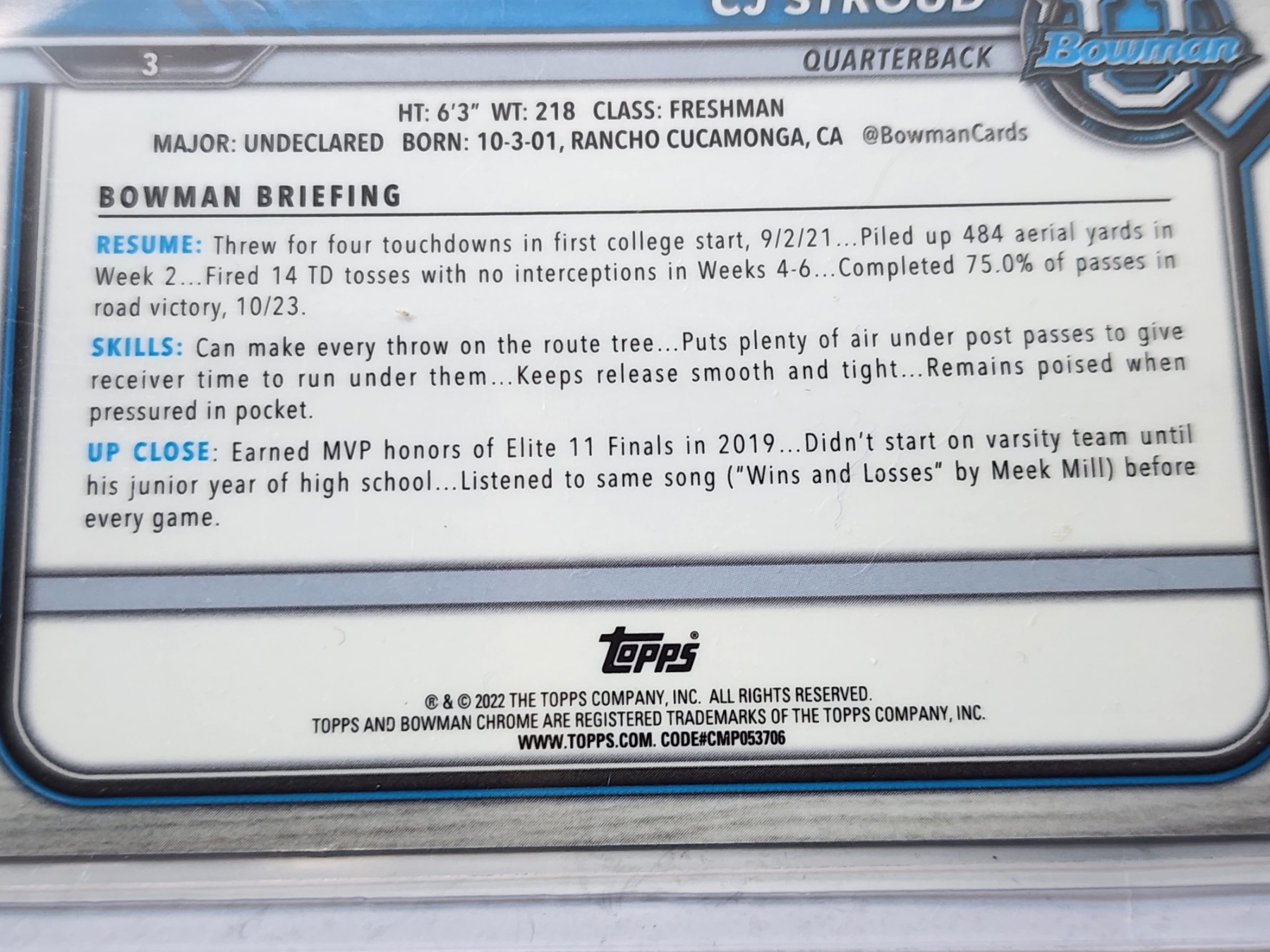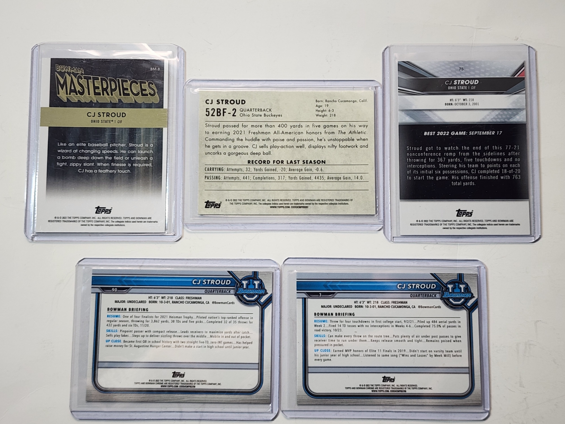 (5) CJ Stroud Ohio State Football Trading Cards - 2022 Topps Bowman