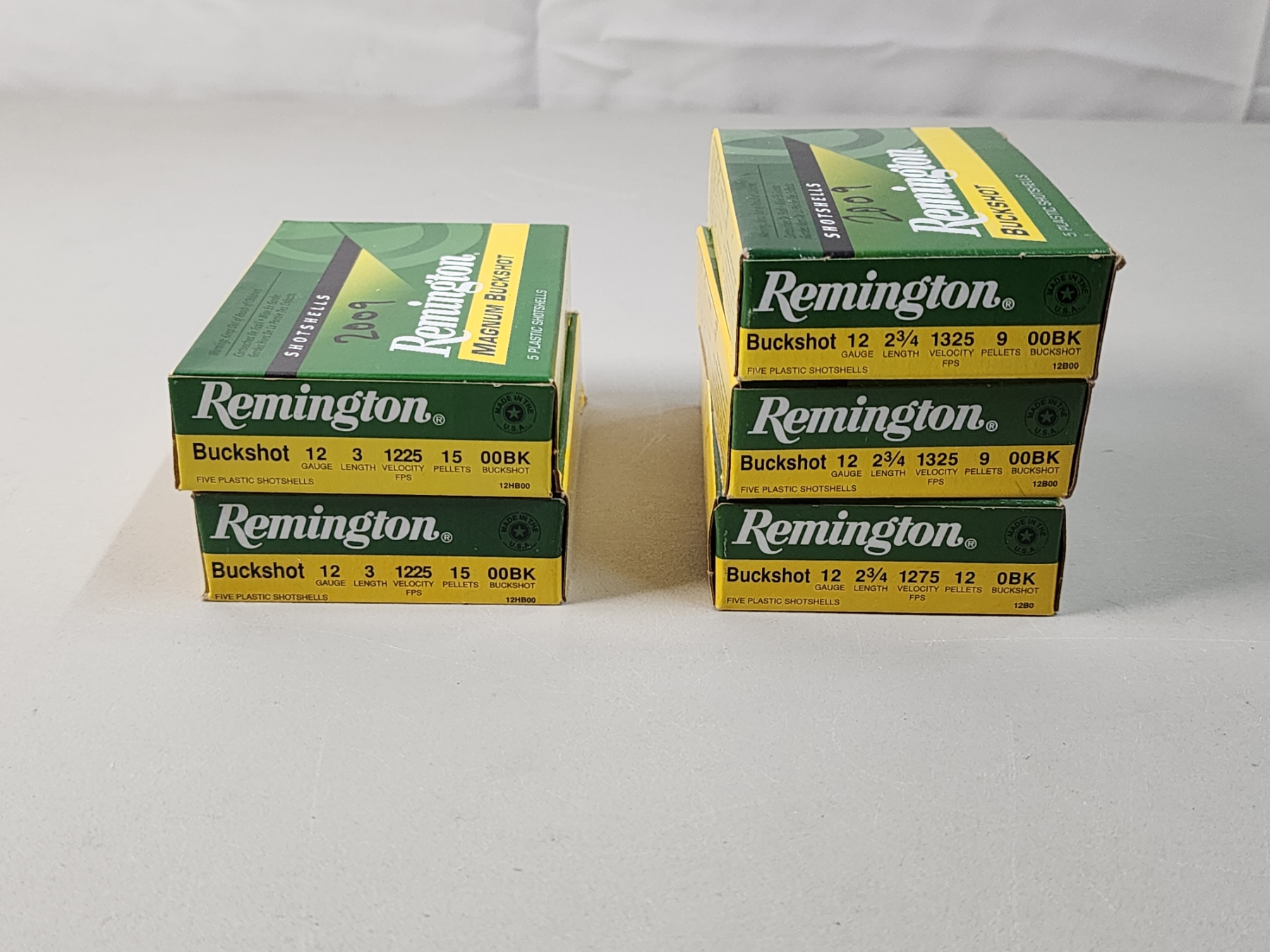 5 Full Boxes of 12 Gauge Buckshot 00BK Ammunition (x2 3in & x3 2 3/4in)