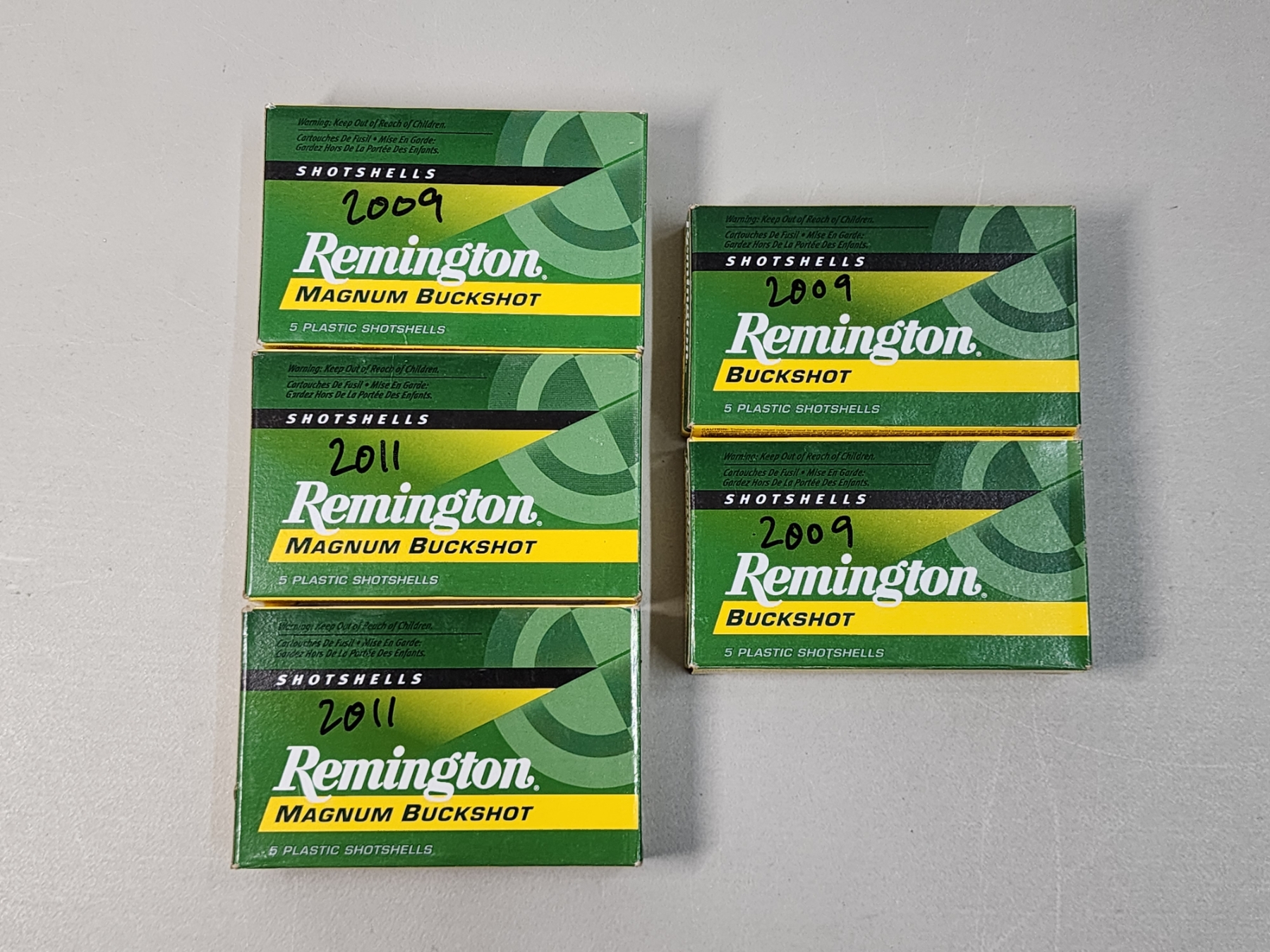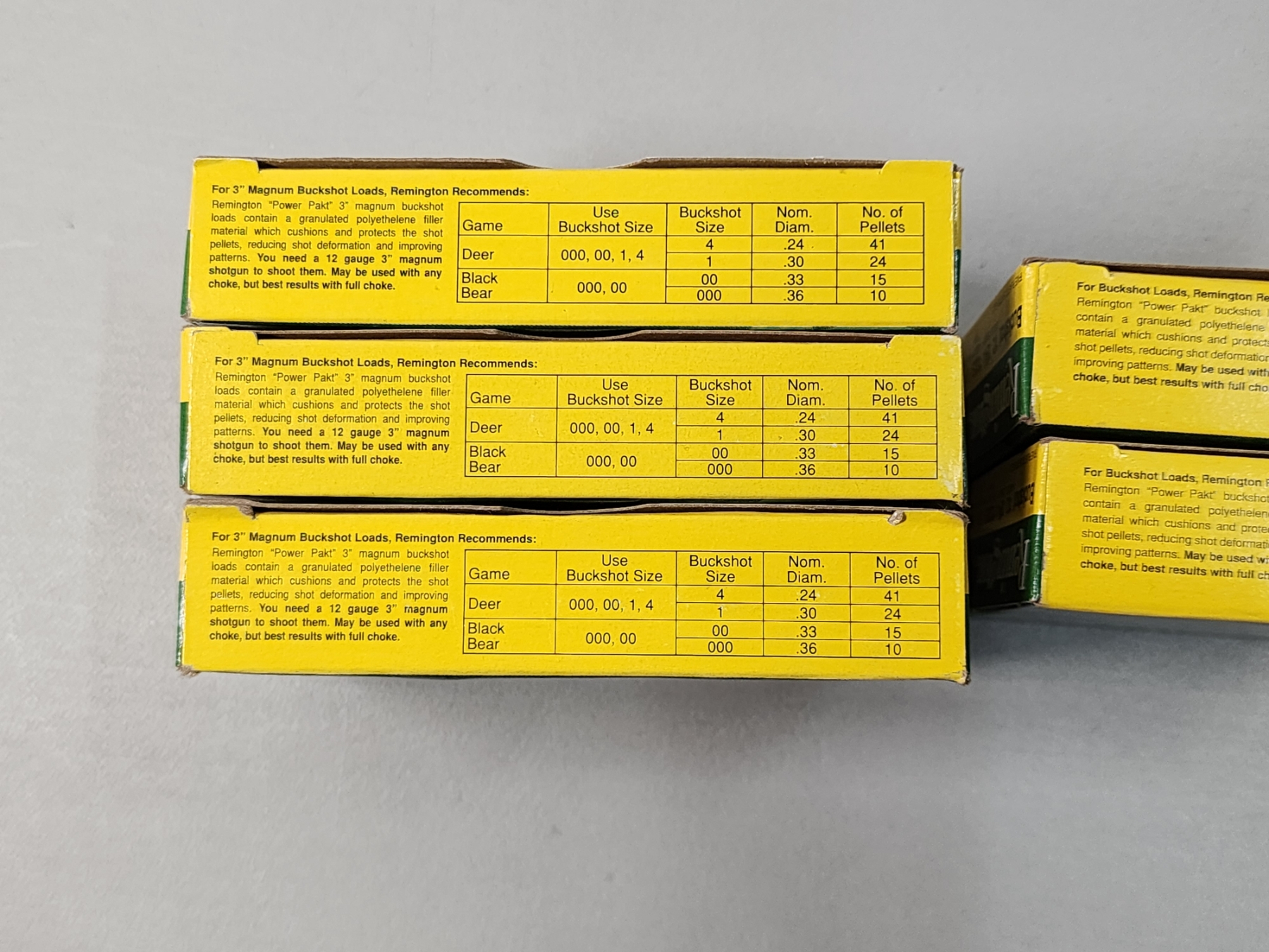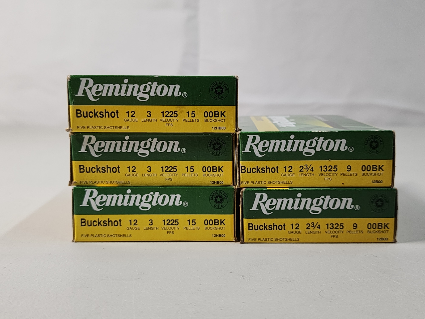 5 Full Boxes of 12 Gauge Buckshot 00BK Ammunition (x3 3in & x2 2 3/4in)