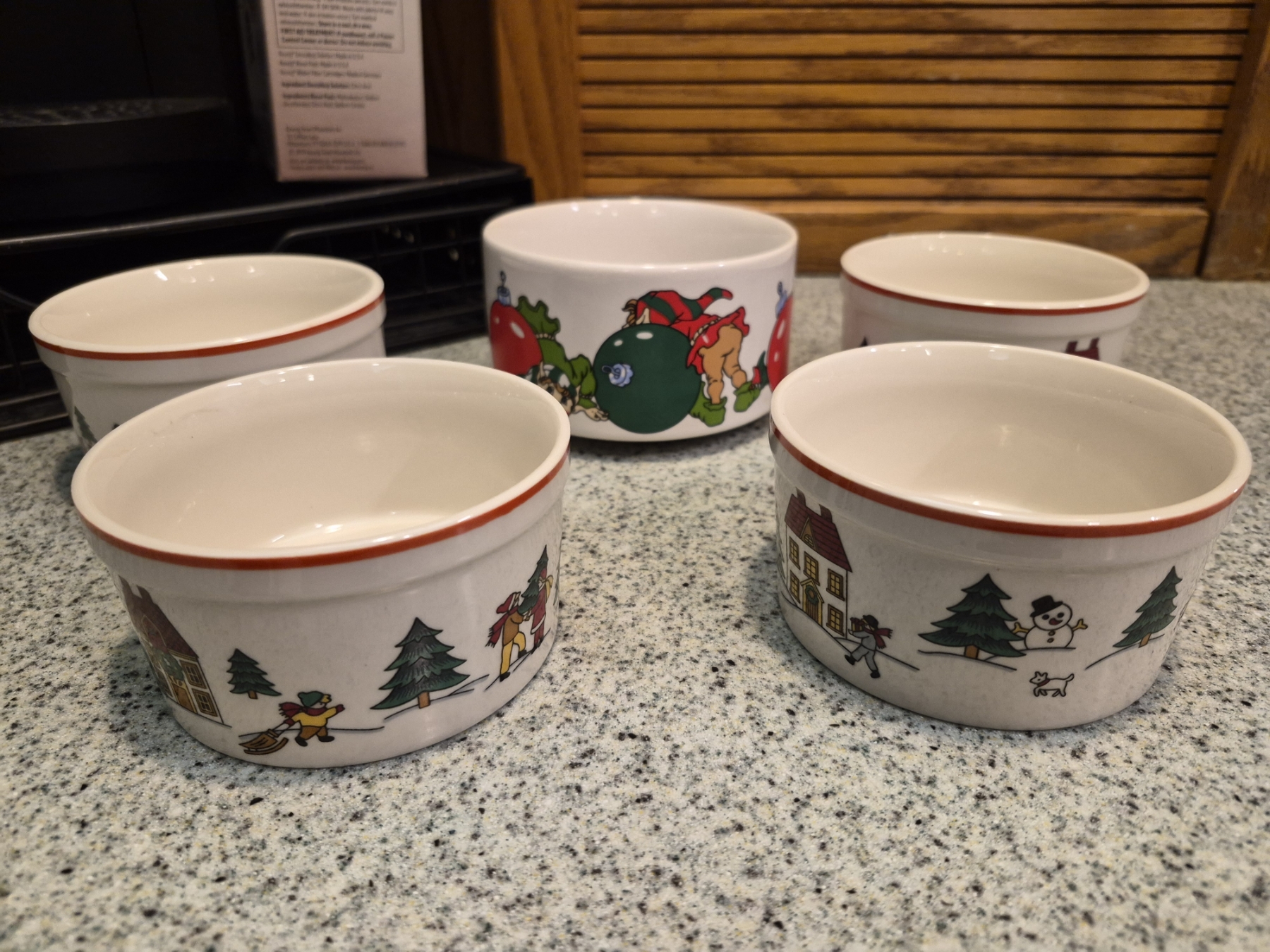 5 Pcs Christmas Holiday Winter Small Bowl Set