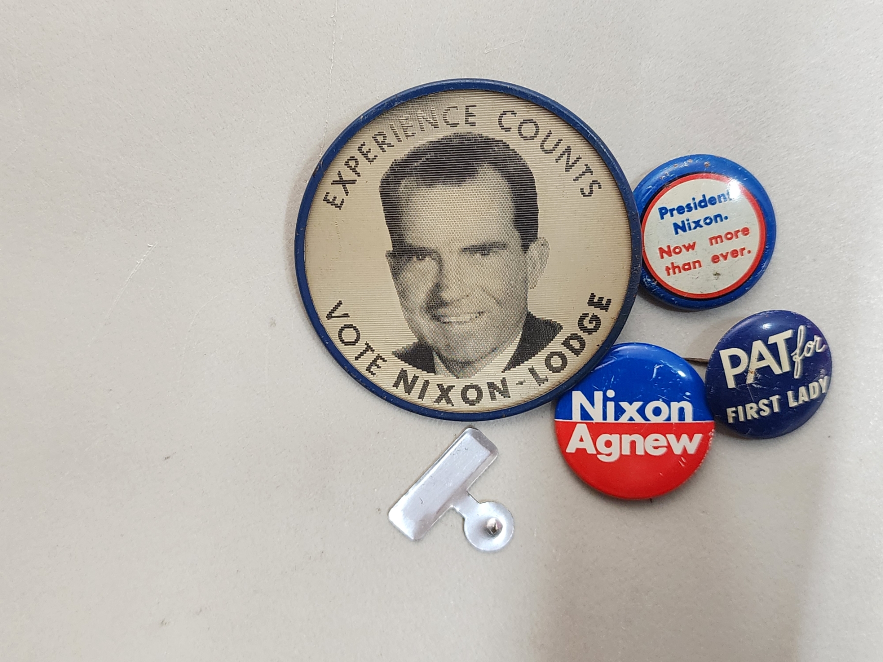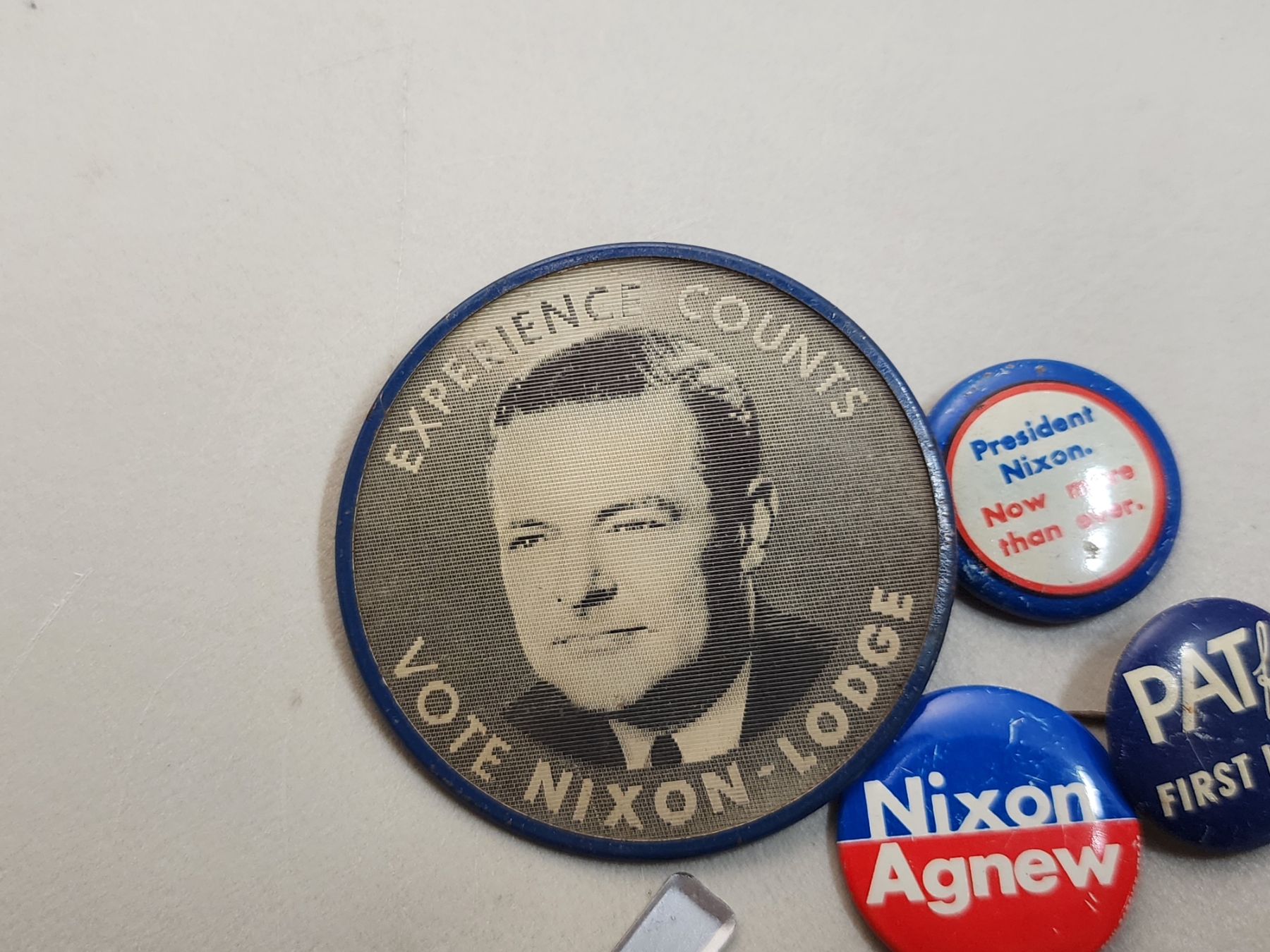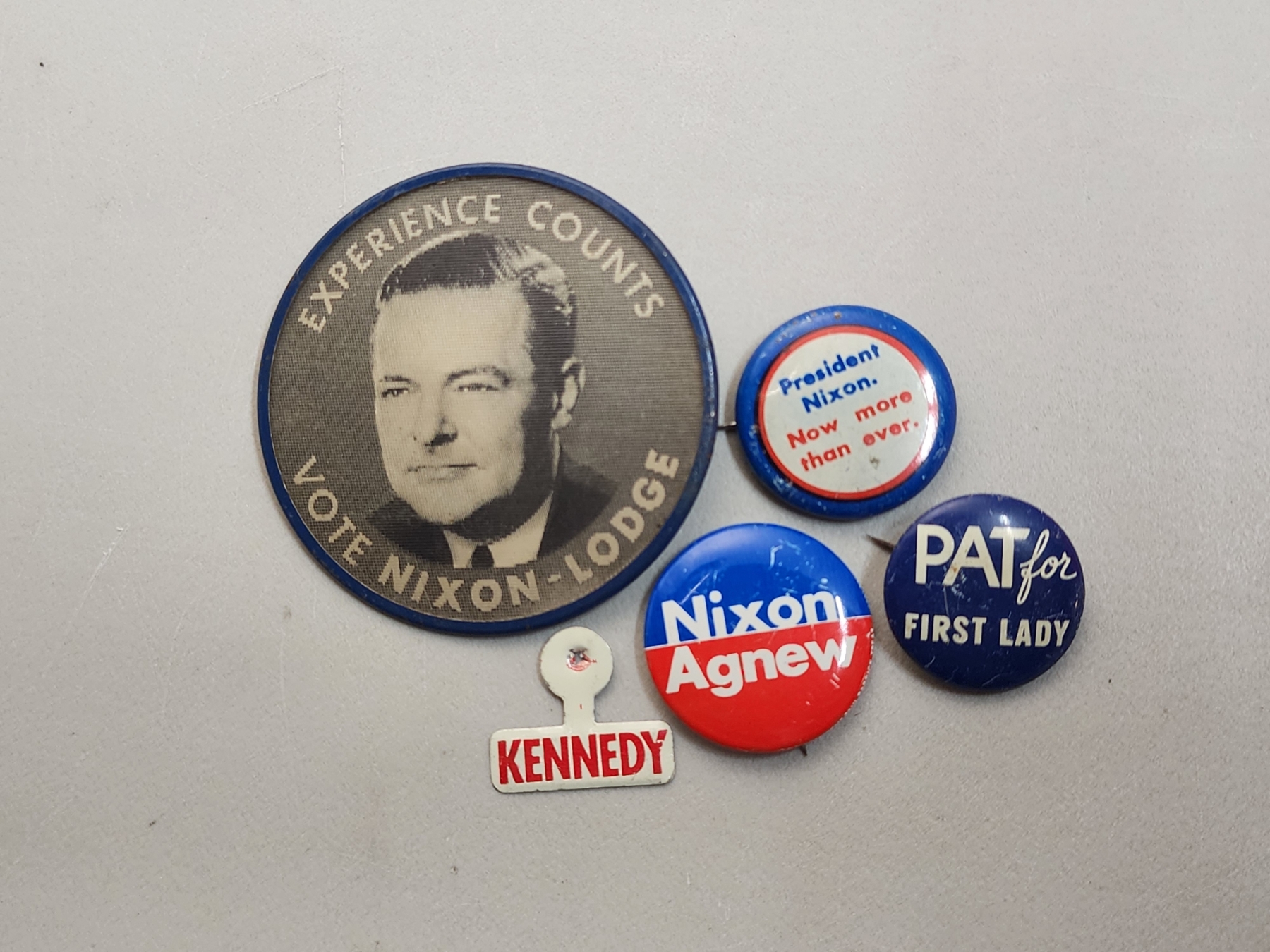 5 Presidential Political Pins/Buttons Including Kennedy, Nixon, and First Lady Pat