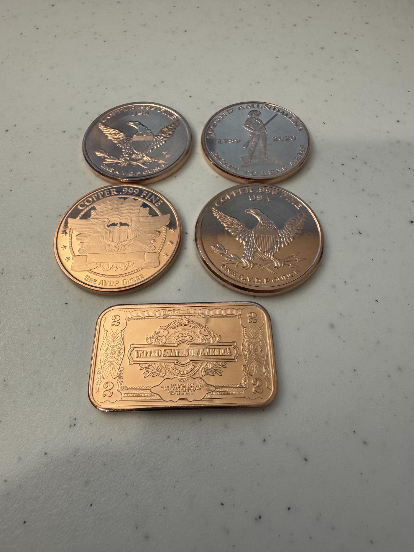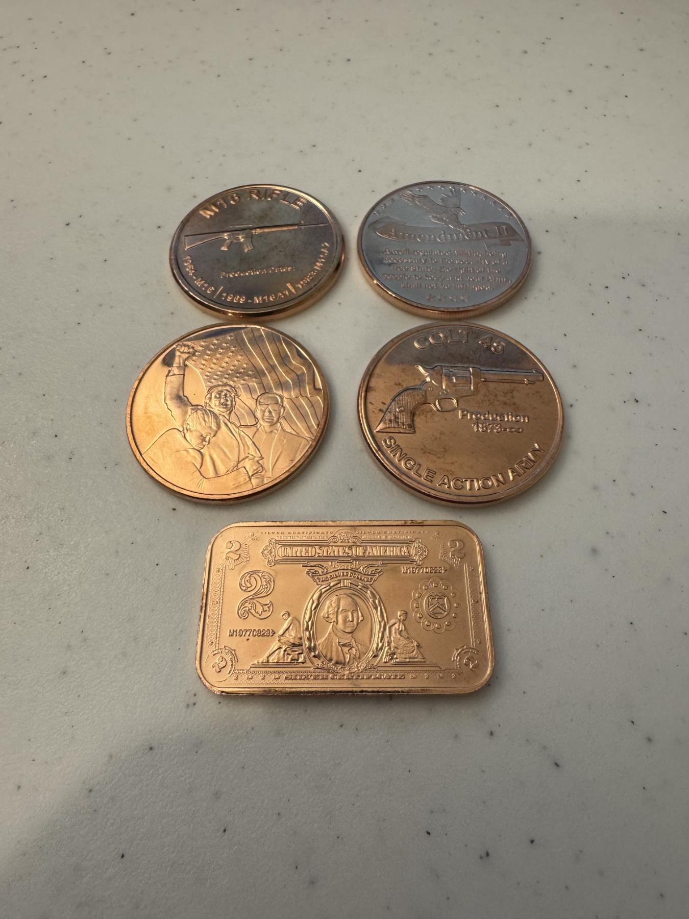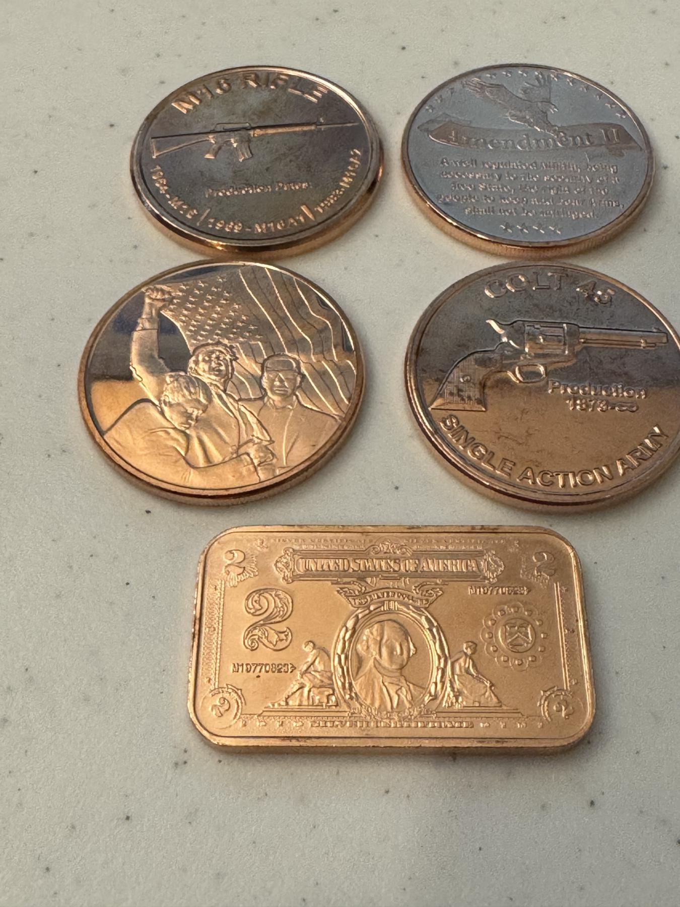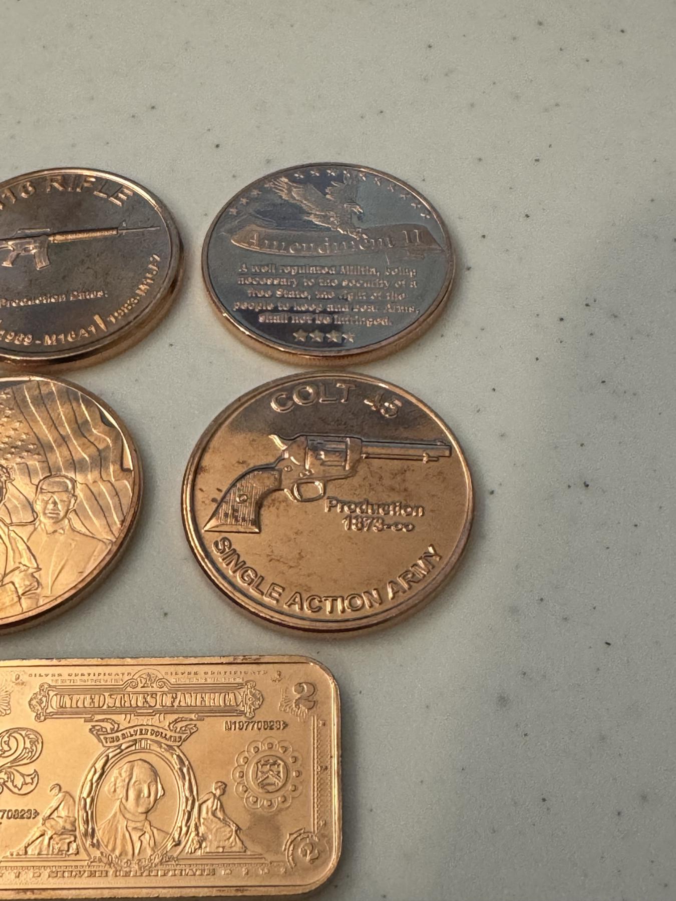 5 - Rare Copper Rounds -2nd Amendment, Colt, Trump & Washington - 1 Troy Oz