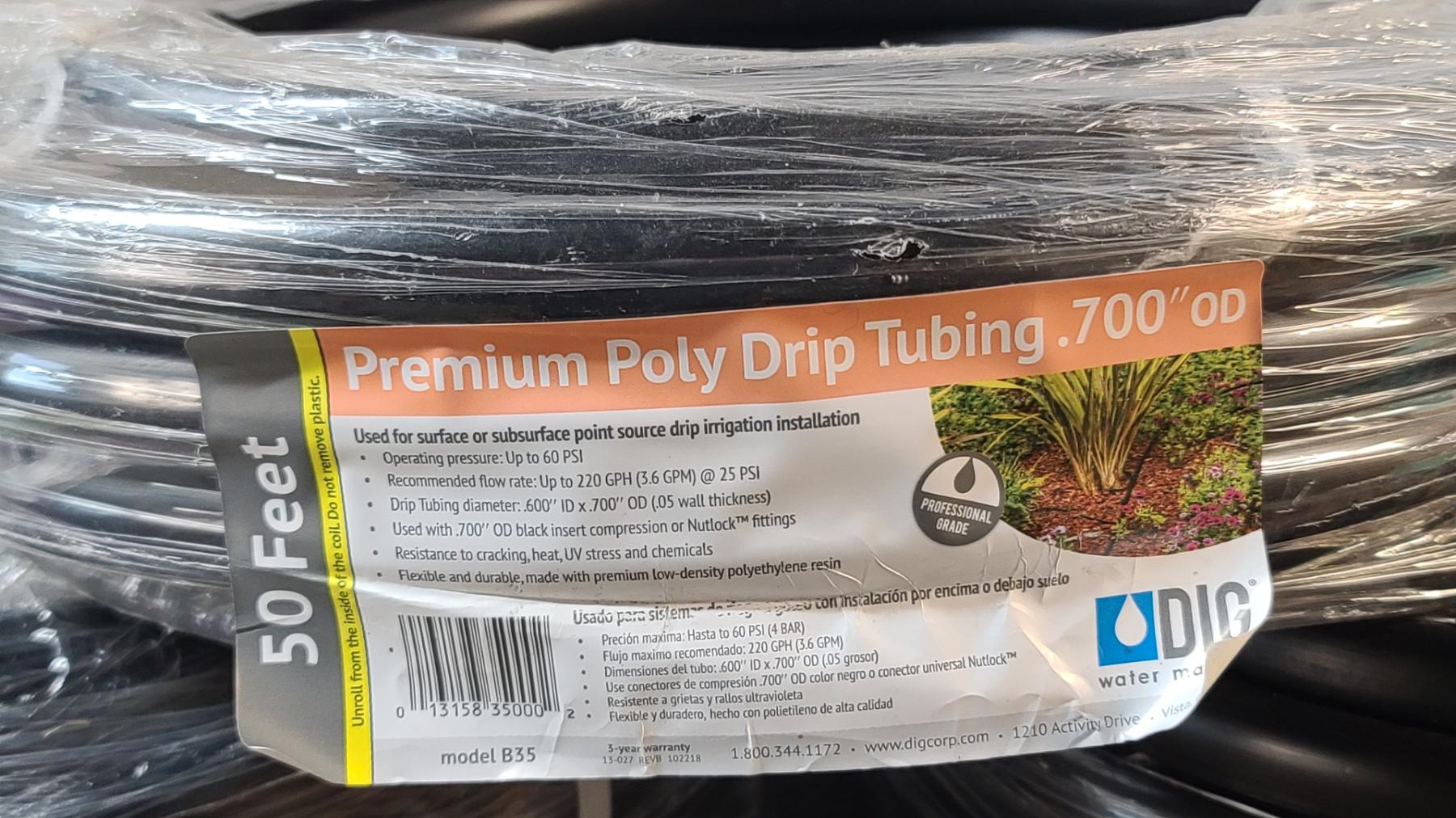 (5) Rolls Of 50 Feet Of Premium Poly Drip Tubing .700" OD