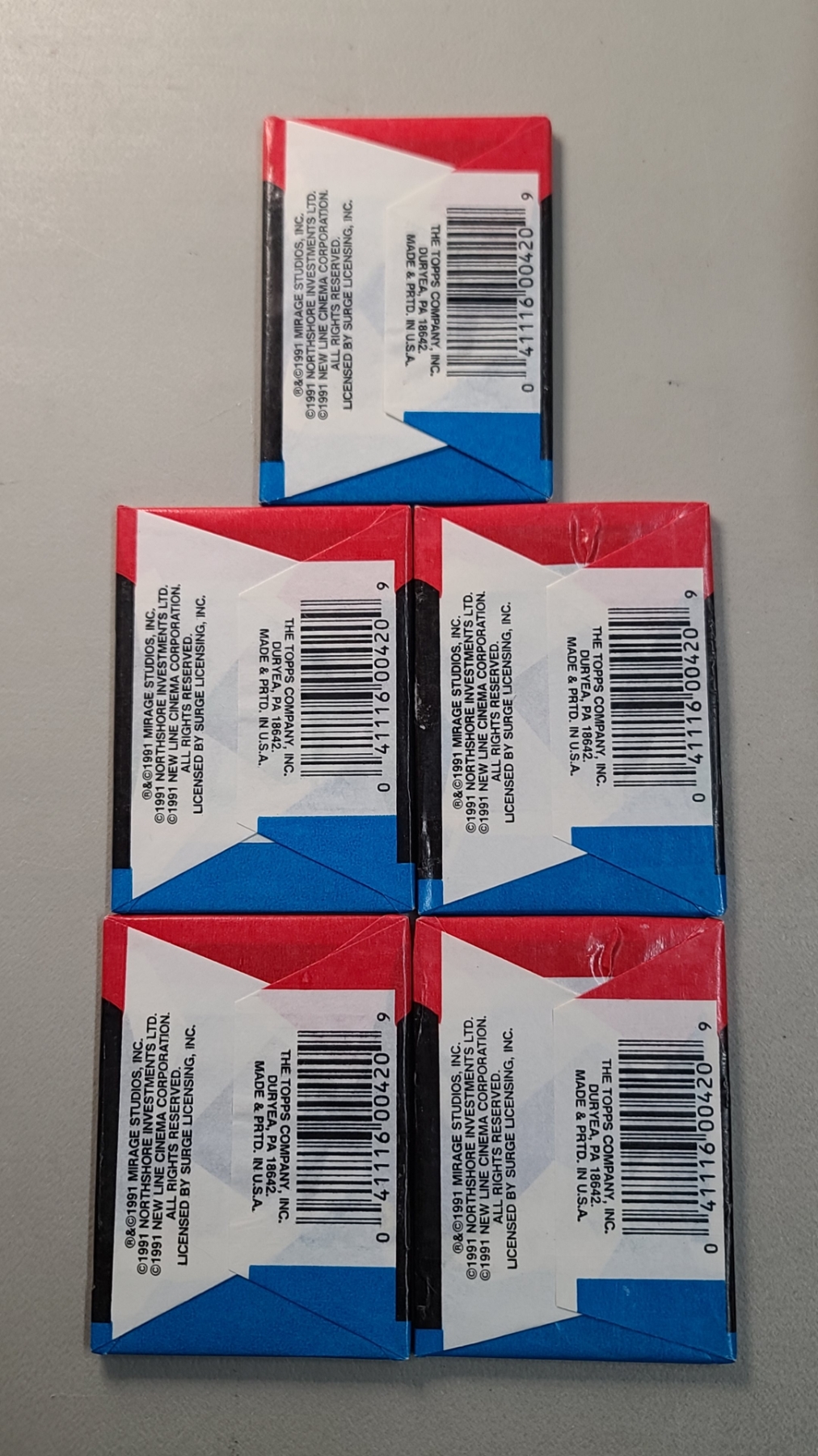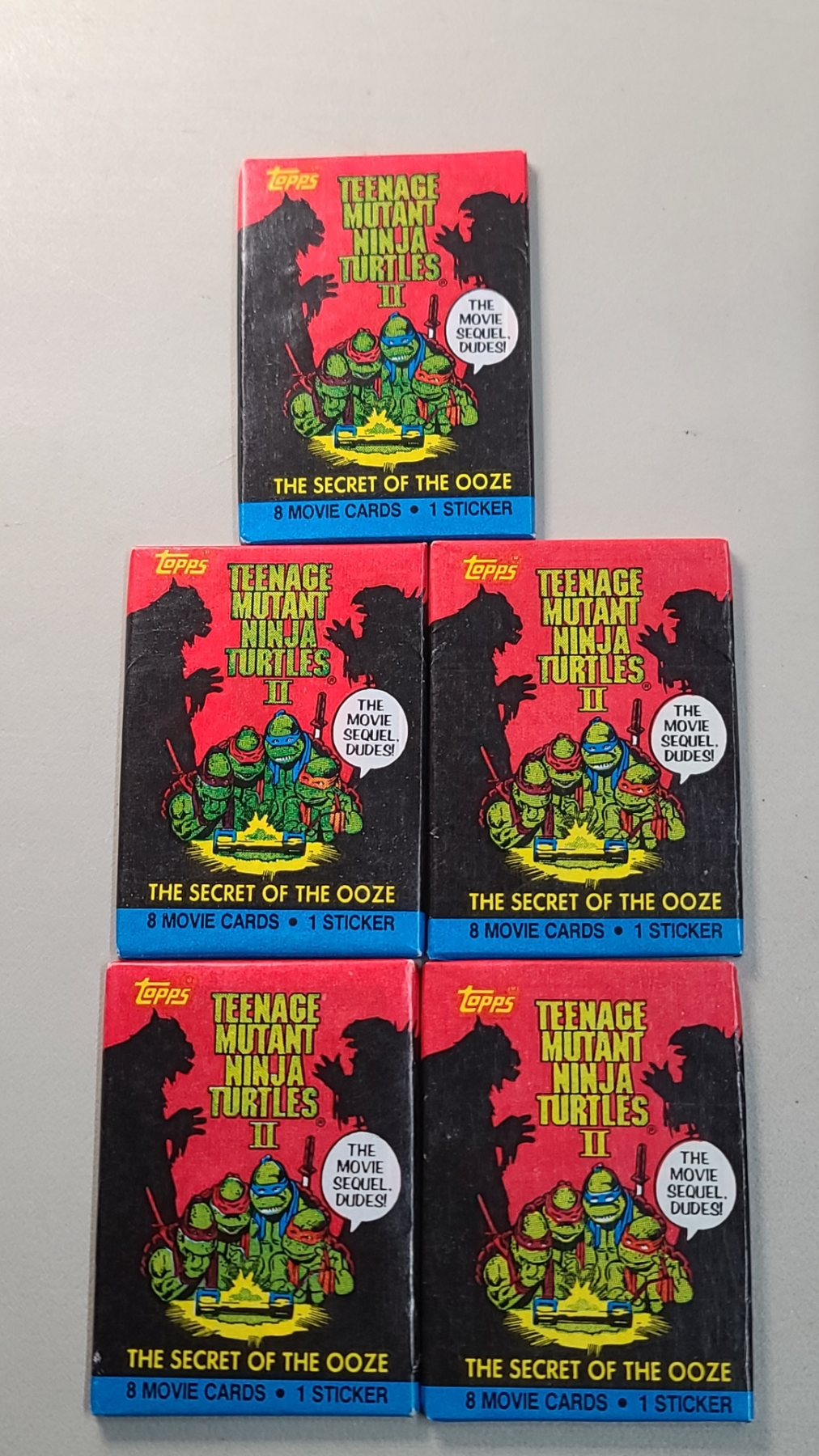 (5) Sealed 1991 Topps Teenage Mutant Ninja Turtles II: The Secret of the Ooze Wax Trading Cards Packs