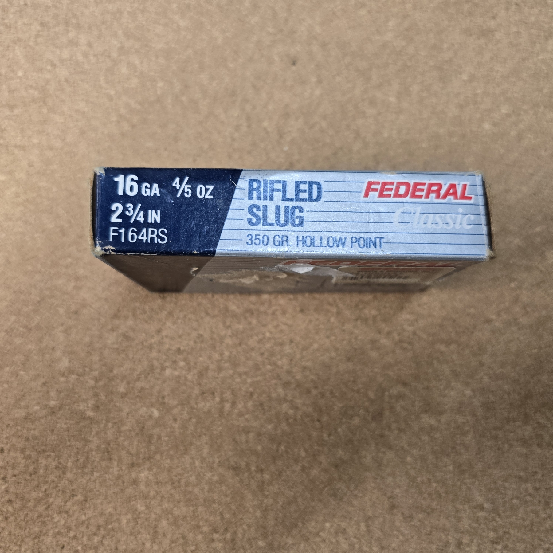 (5) Shotgun Shells 16GA 4/5oz 2.75in, F164RS Rifled Slugs 350GR Hollow Point