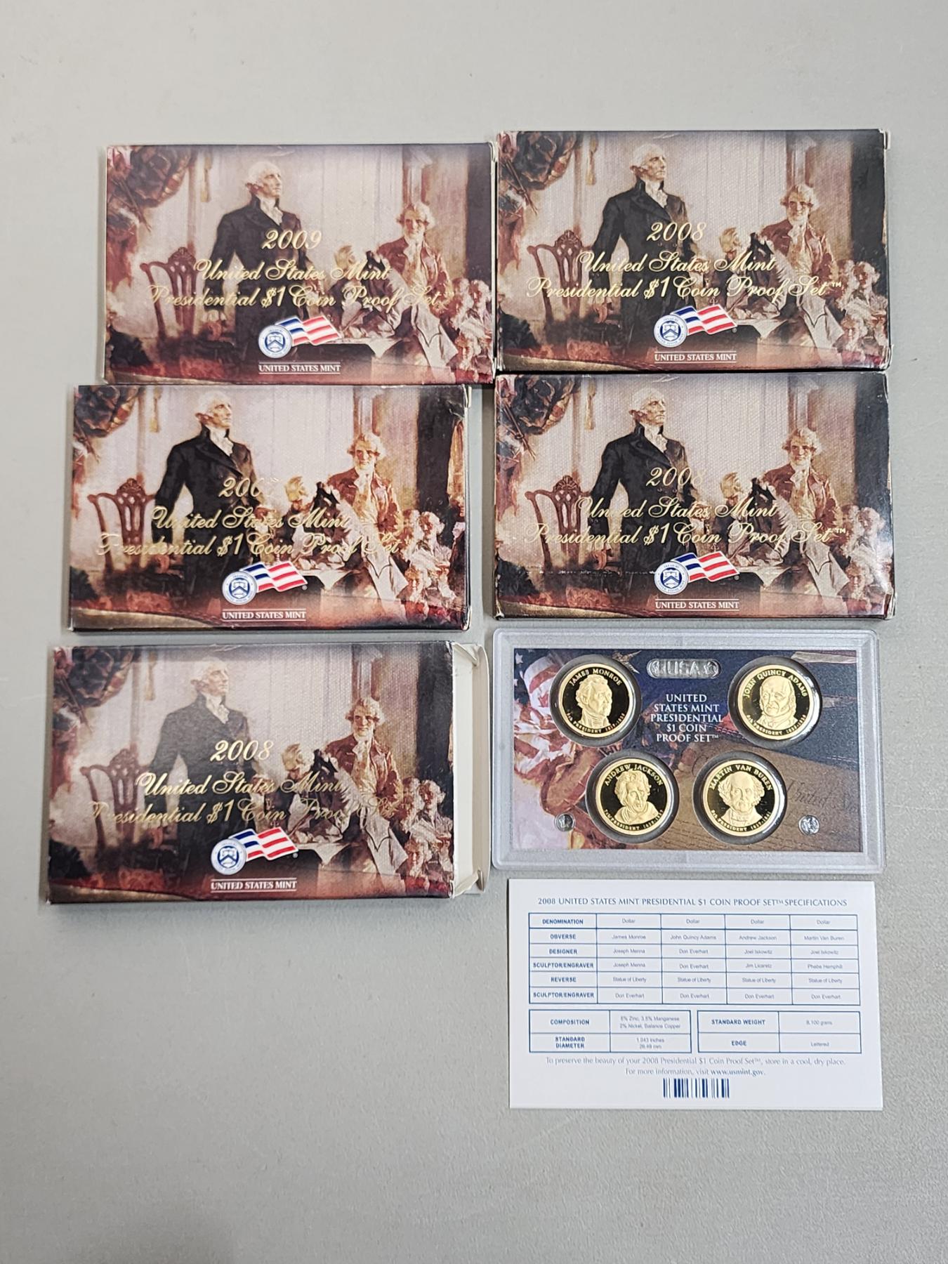 (5) United States Mint Presidential $1 Coin Proof Sets: 2009, 2008, 2008, 2008, 2007
