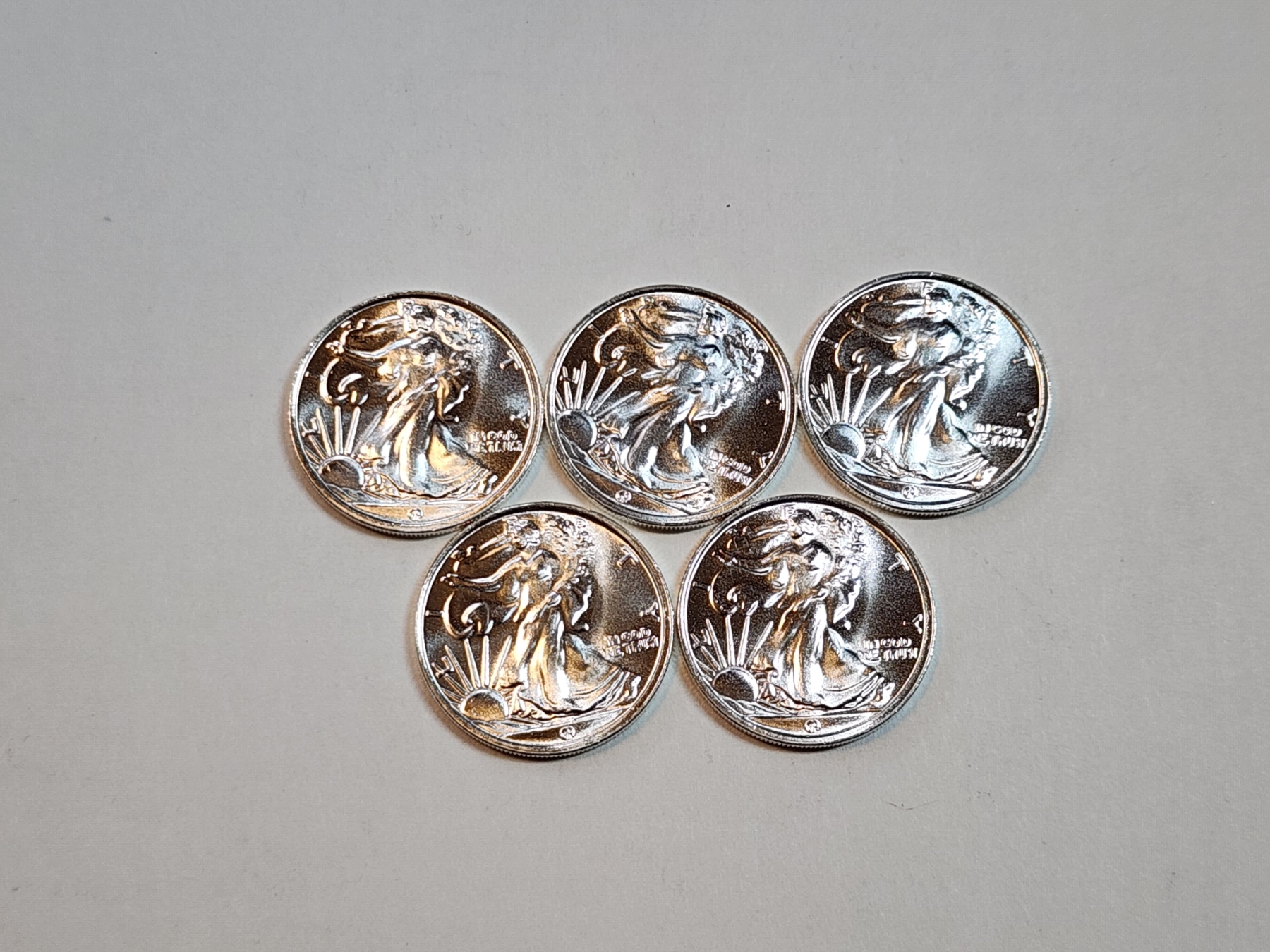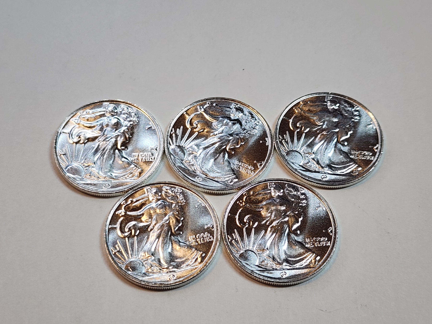 (5) Walking Liberty 1/10 Ounce Silver Rounds - 1/2 Ounce Silver Total!