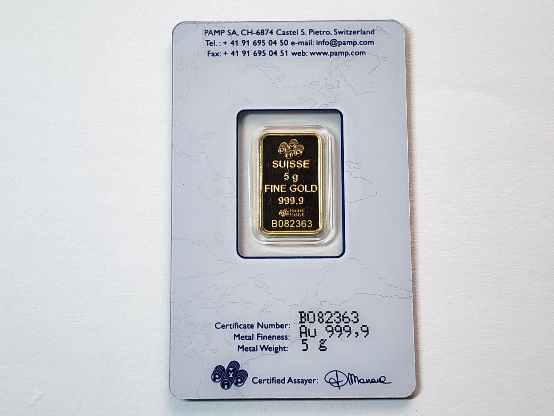 5-gram PAMP Swiss 999.9 Fine Gold Bar - Certified in Sealed Package