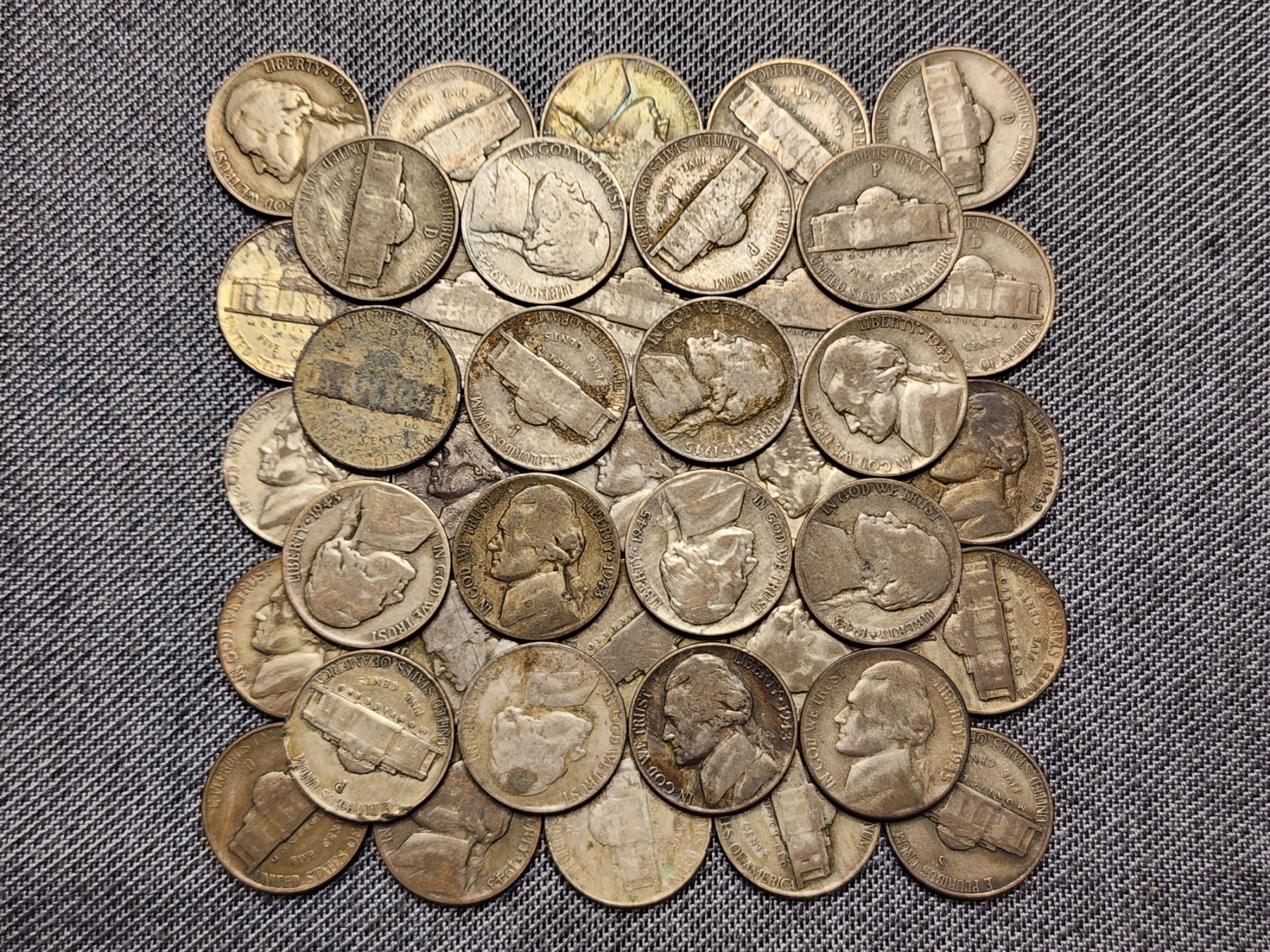 50 Assorted United States Silver Wartime Nickels - About 2.8 OZ ASW Altogether
