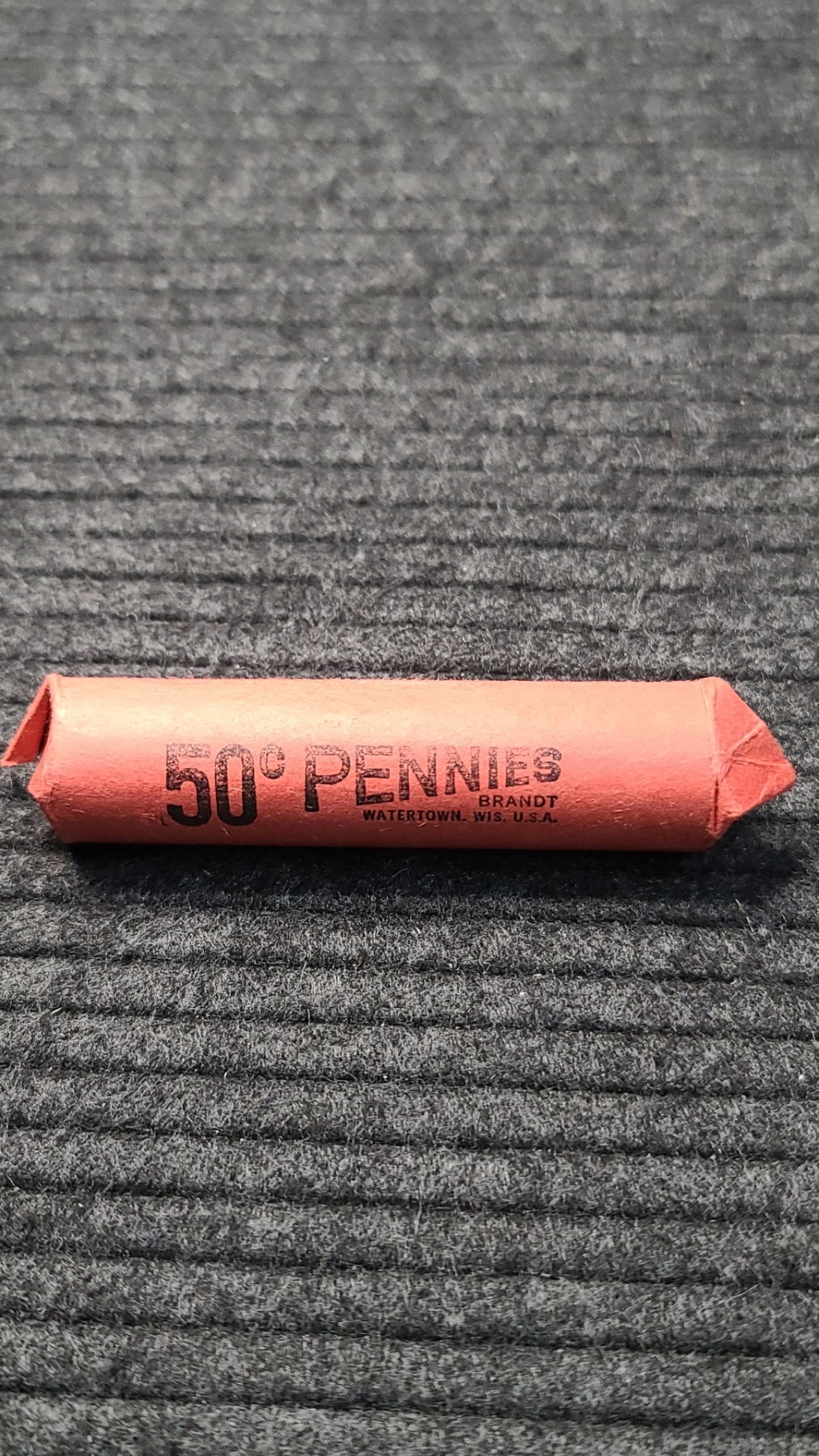 50 Cent Roll Of Unsearched & Uncounted Wheat Pennies