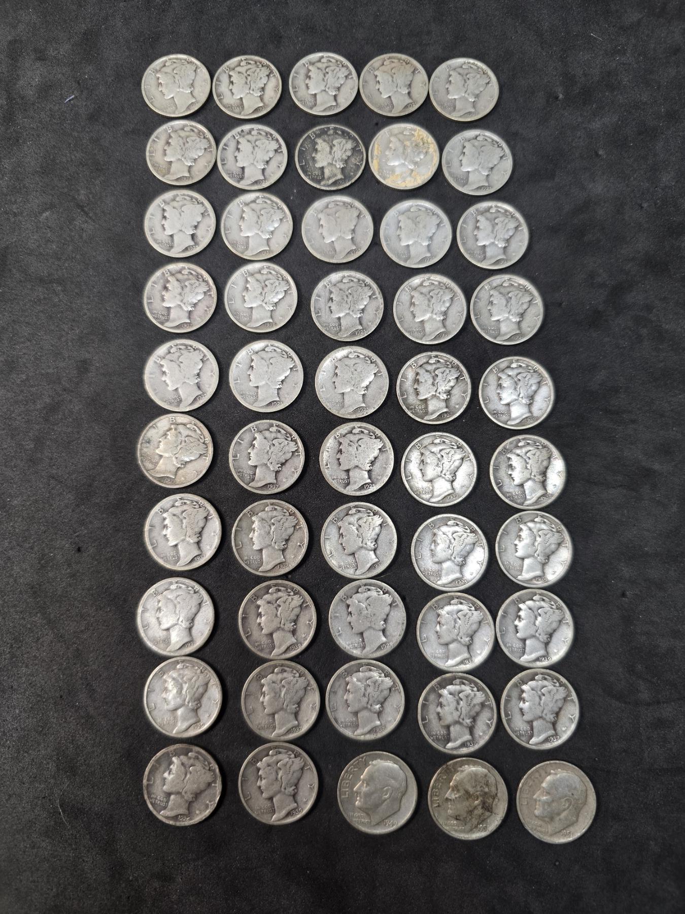 (50) Mercury and Roosevelt Dimes 90% Silver - $5 FV