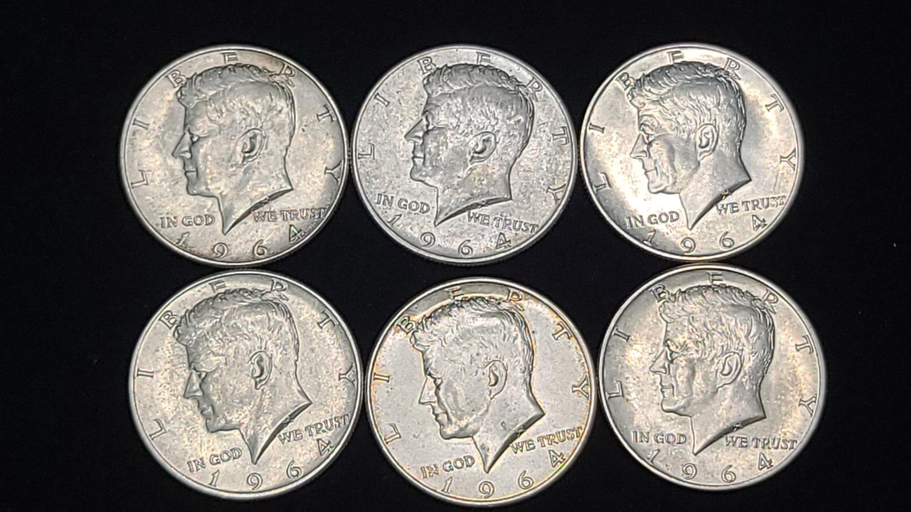 (6) 1964 90% Silver Kennedy Half Dollars - Face Value: $3.00