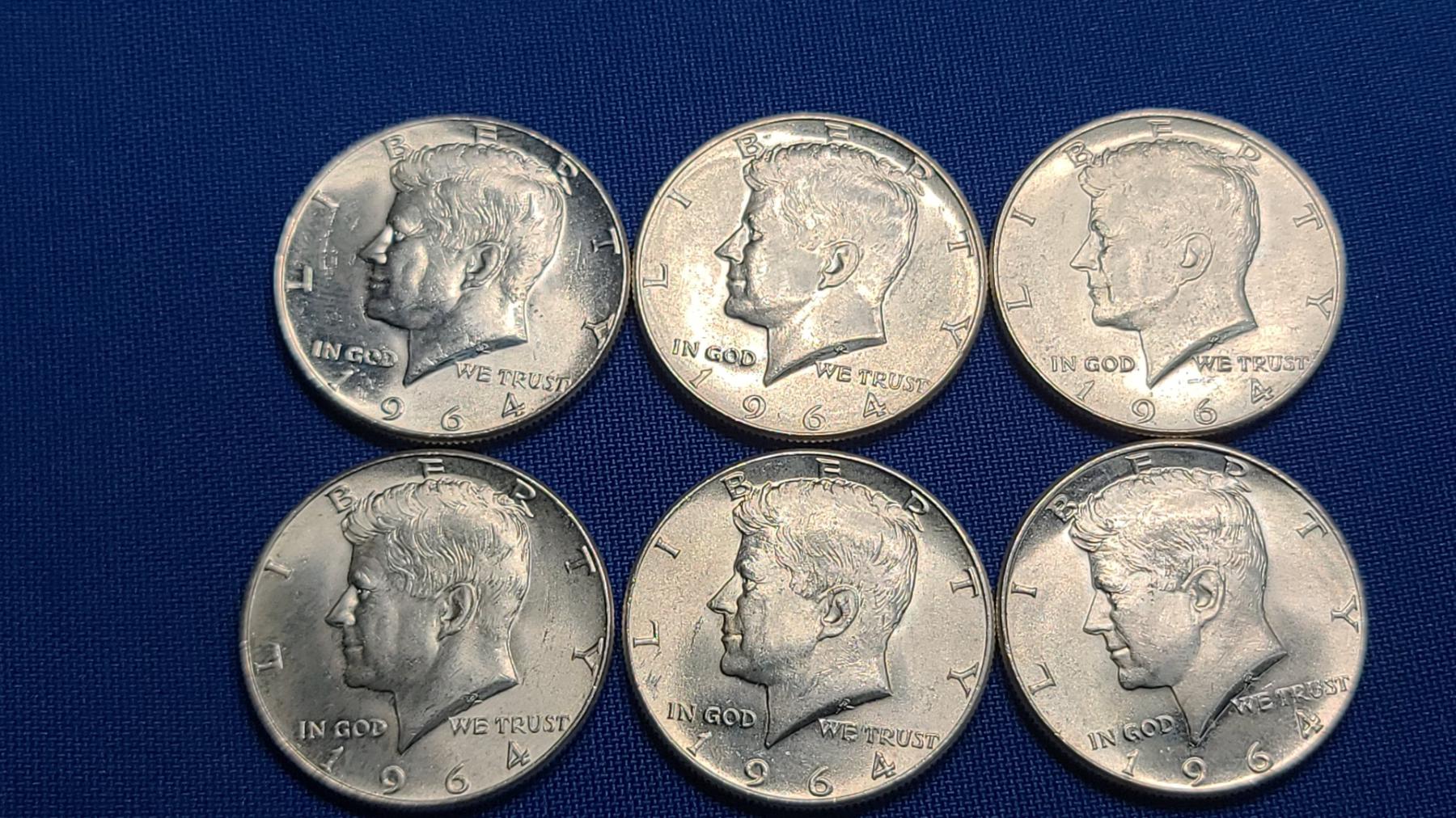 (6) 1964 90% Silver Kennedy Half Dollars - Face Value: $3.00