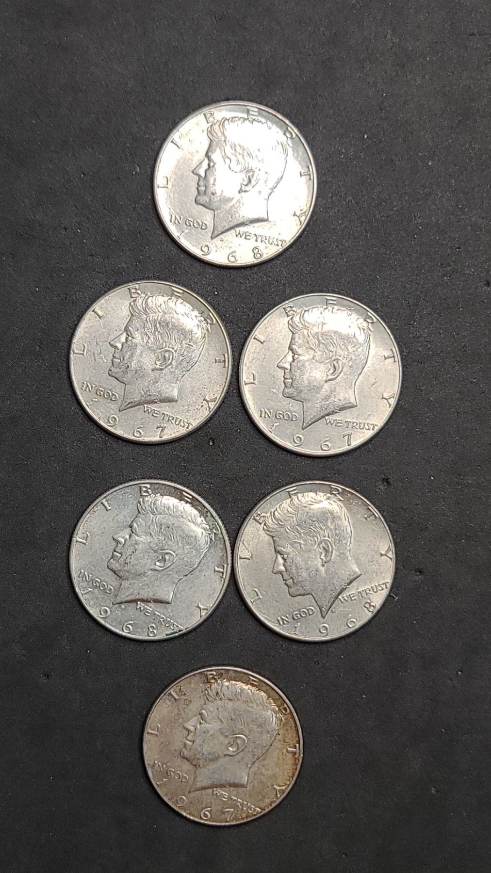 (6) 1967/1968 40% Silver Kennedy Half Dollars - Face Value: $3.00