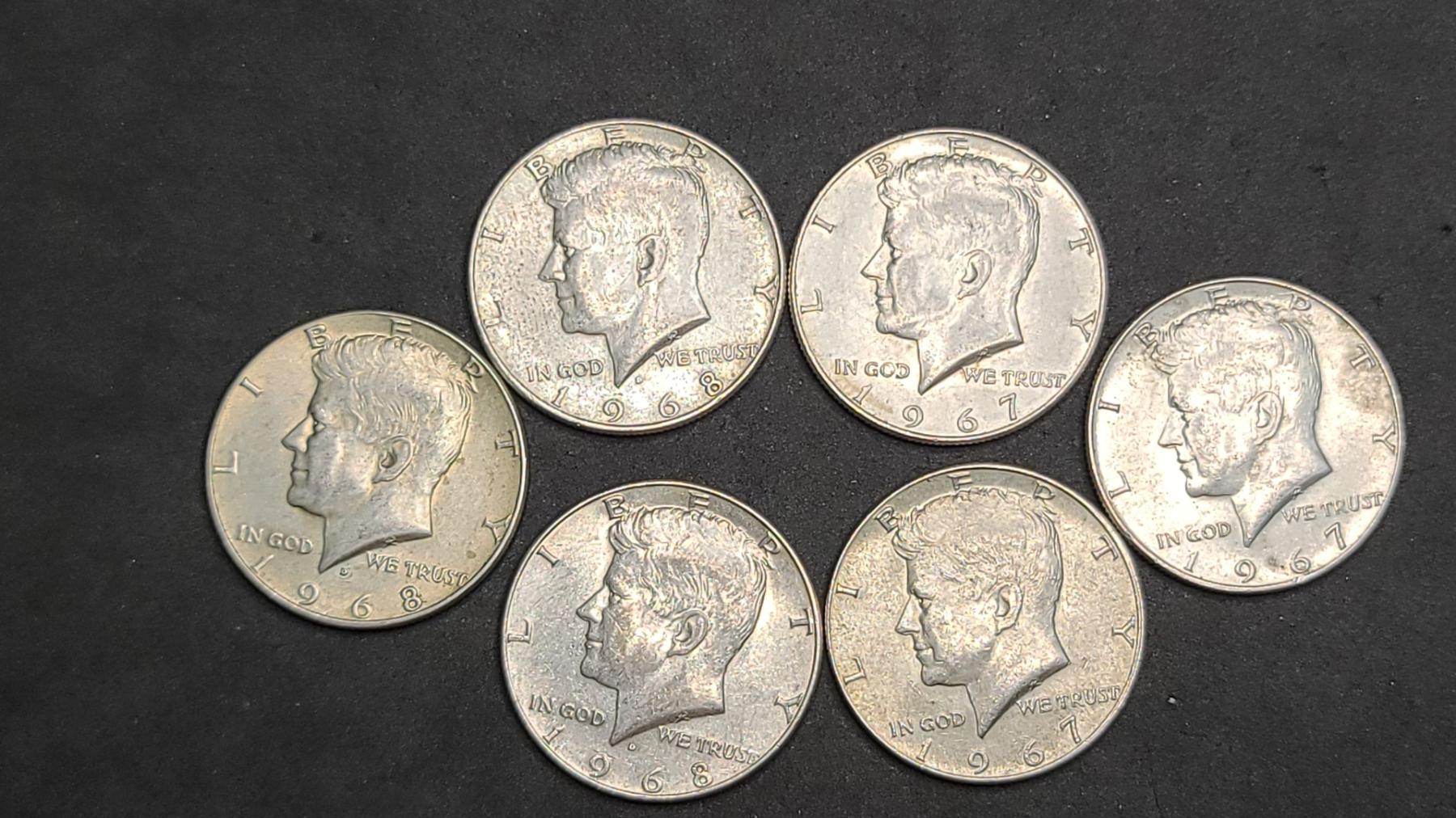 (6) 1967/1968 40% Silver Kennedy Half Dollars - Face Value: $3.00