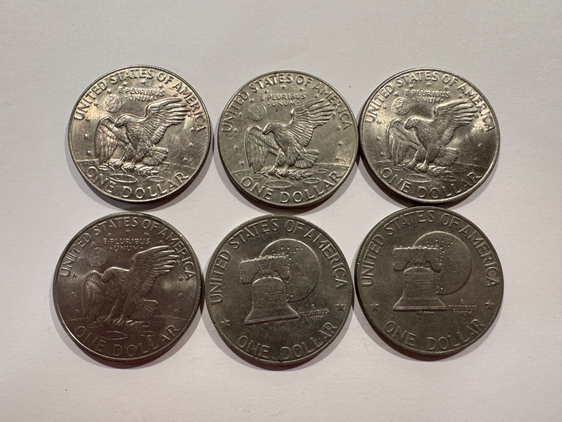6 - Beautiful United States Eisenhower $1.00 Coins - Exceptional Coins