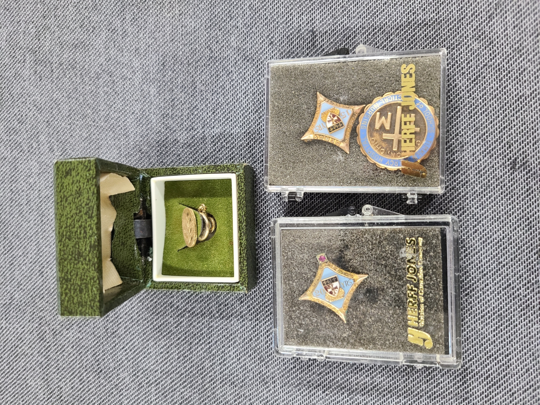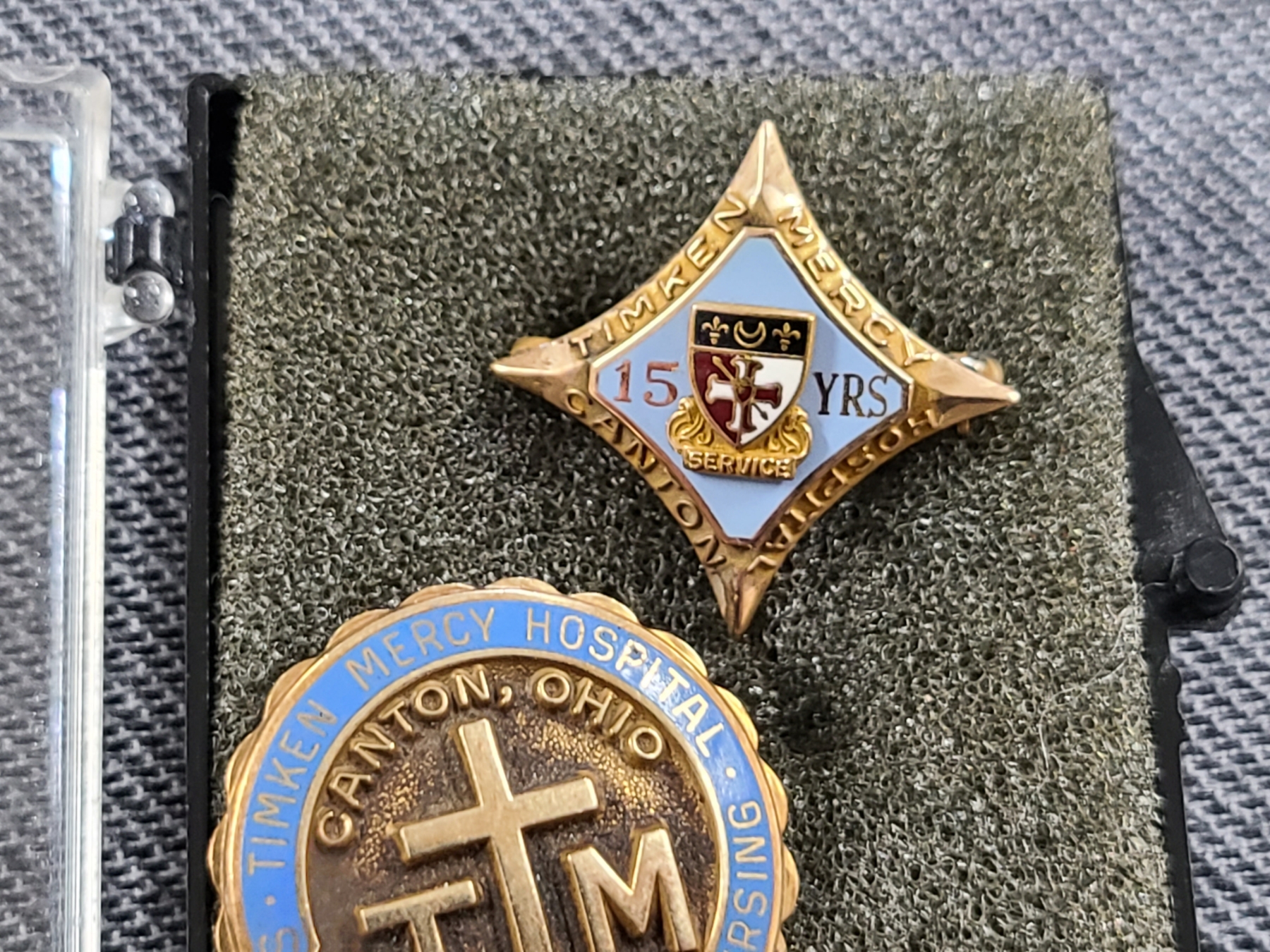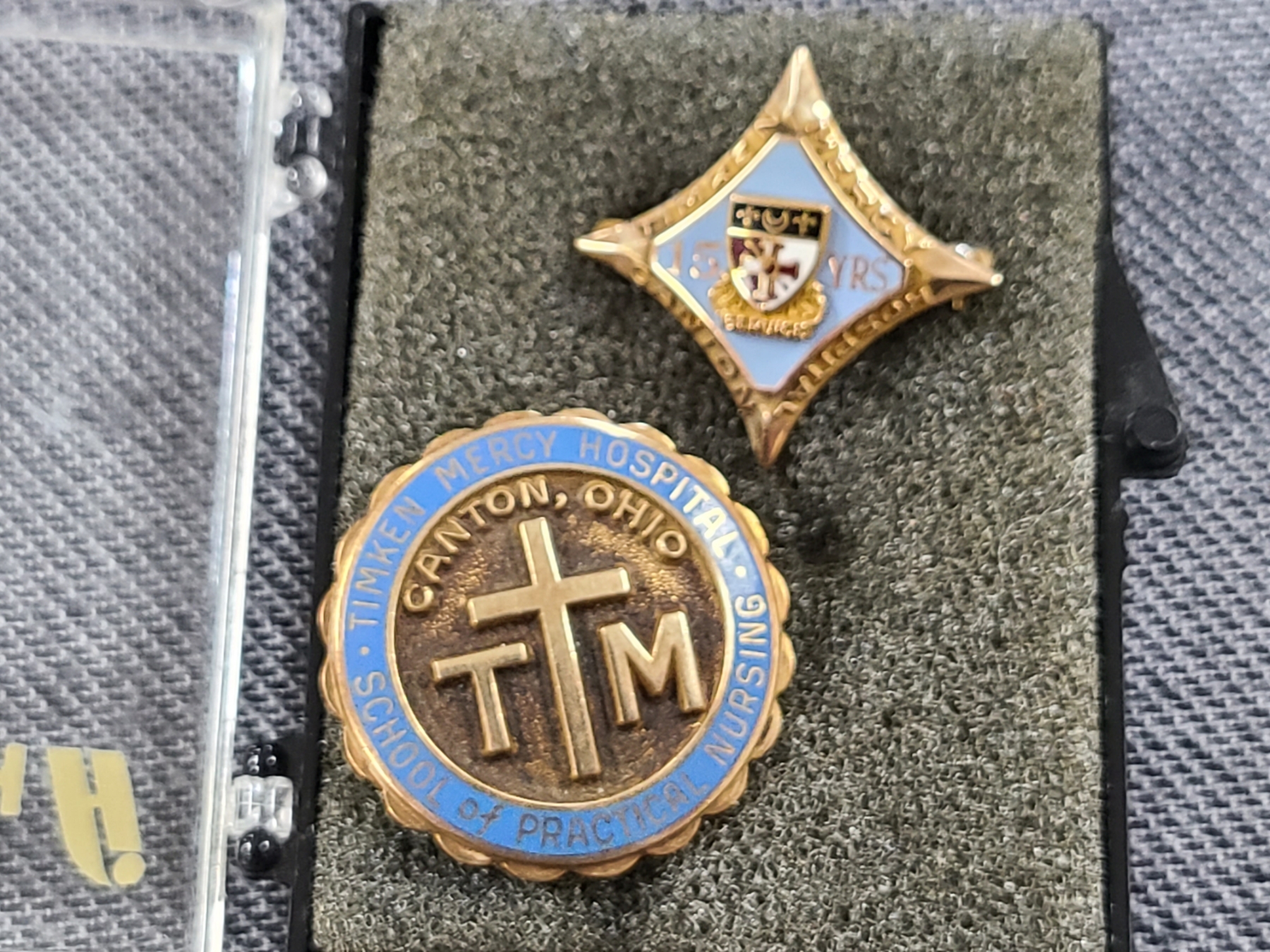 6 Gram 10K Gold Timken Mercy Hospital Pin With Two Golf Filled Timken Mercy Hospital Pins (Lot Also Includes Gold Overlay Pin)