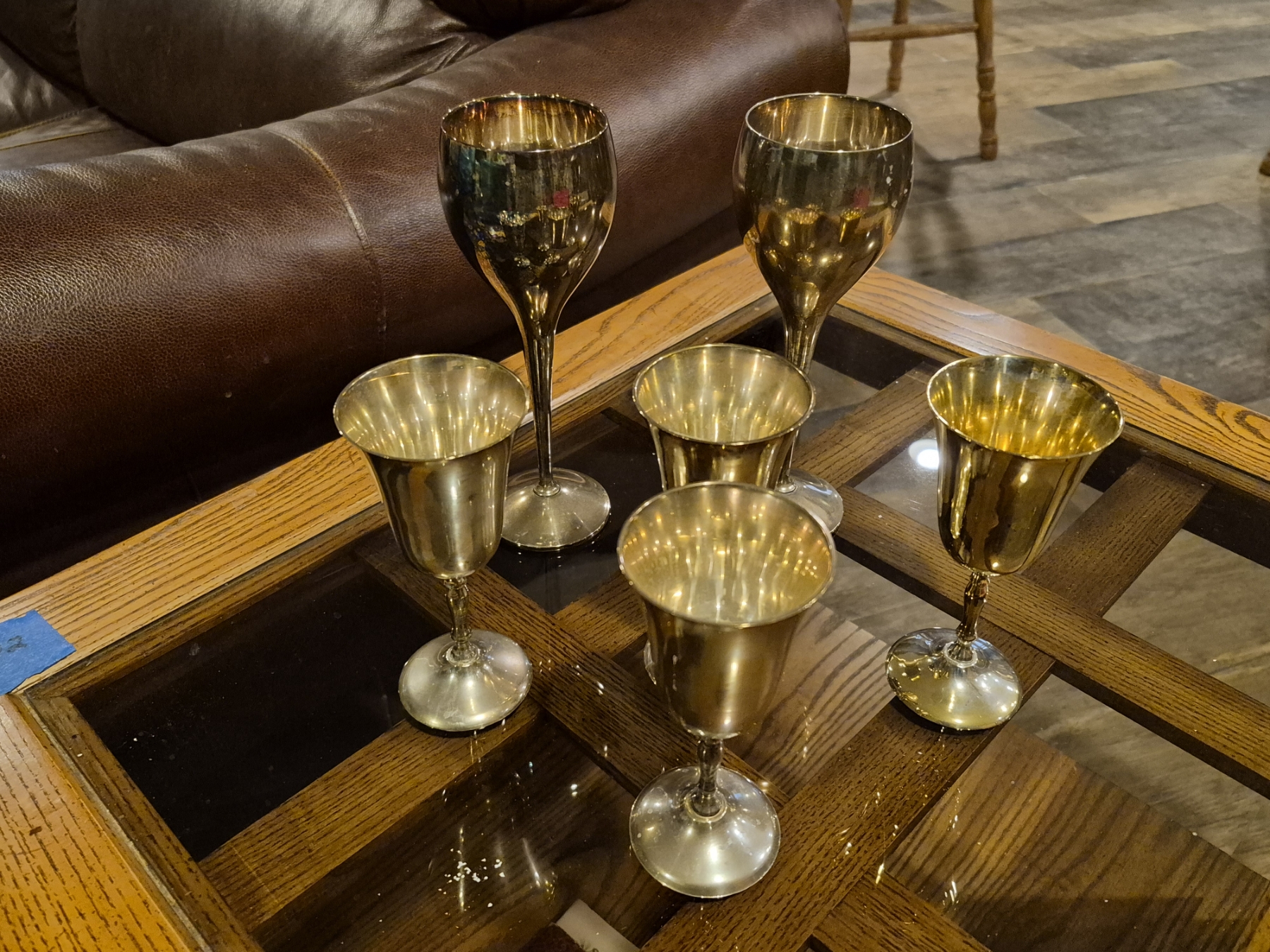 6 Pcs Total - 2 Silver Plate 8" Wine Goblets & 4 Water Goblets -at 5 1/2" T