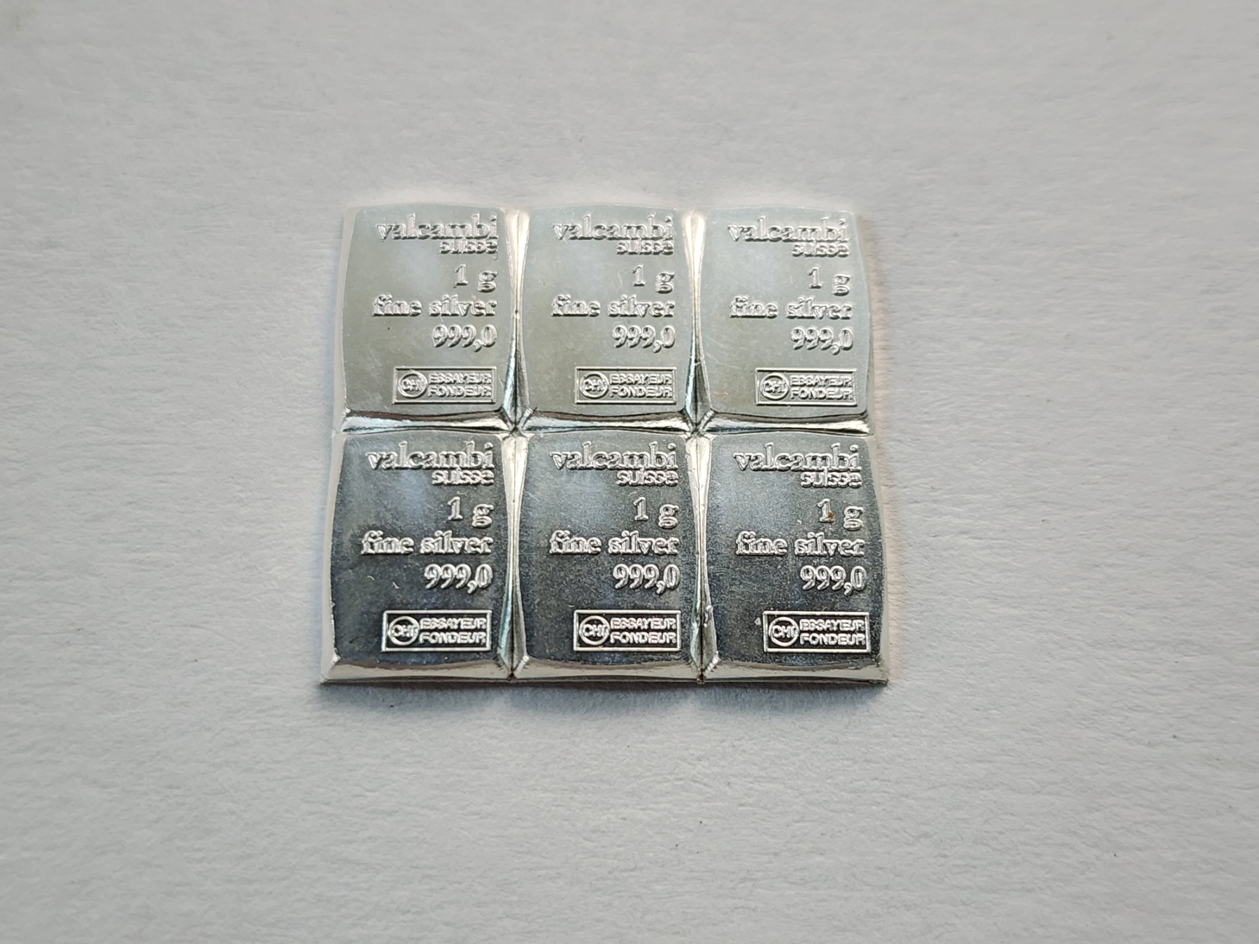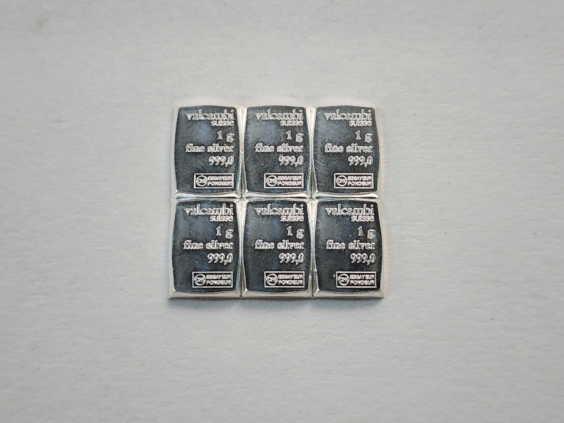 6 - Valcambi Suisse 1 Gram .999 Fine Silver Bars - Mint Condition