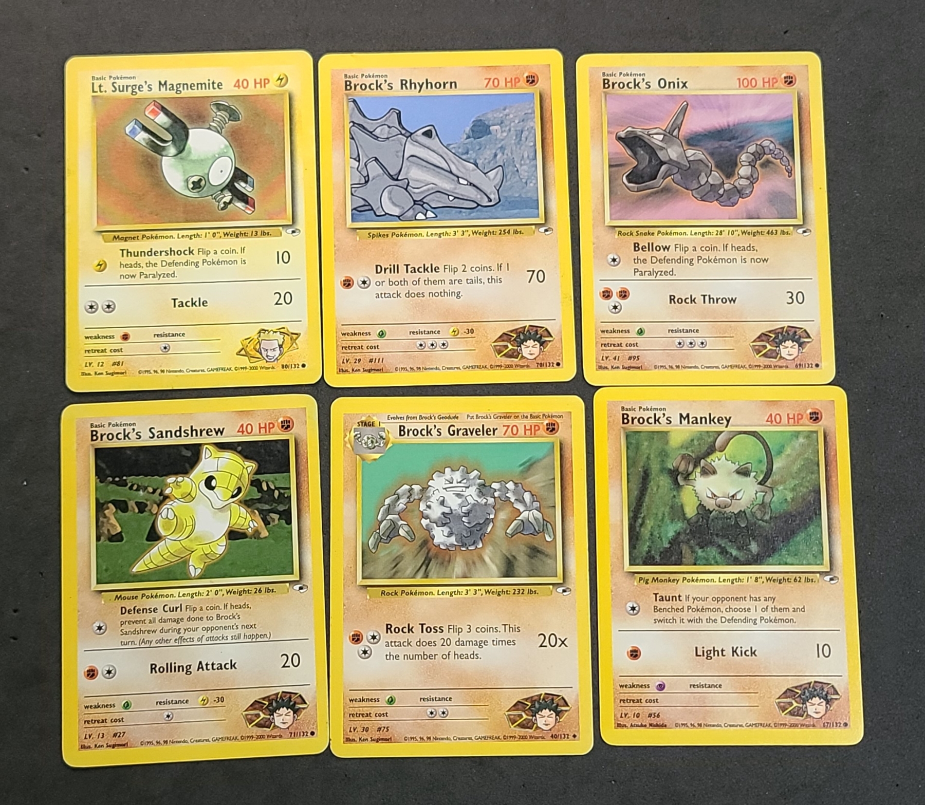 (6) Vintage Pokémon Trading Cards From The Gym Heroes Expansion Set