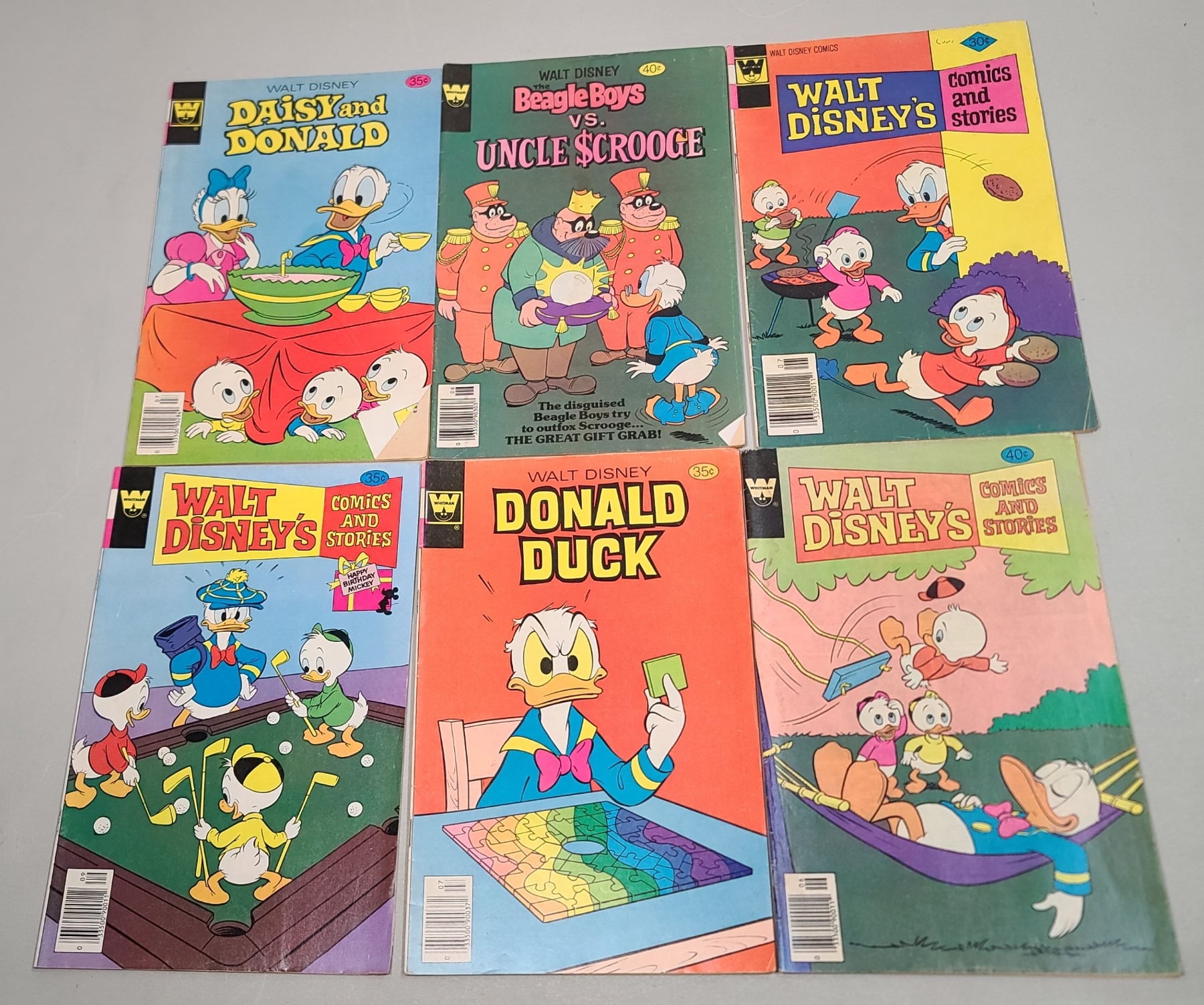 (6) Vintage Walt Disney Whitman Publishing Comic Books - Donald Duck, Daisy Duck, and Uncle Scrooge