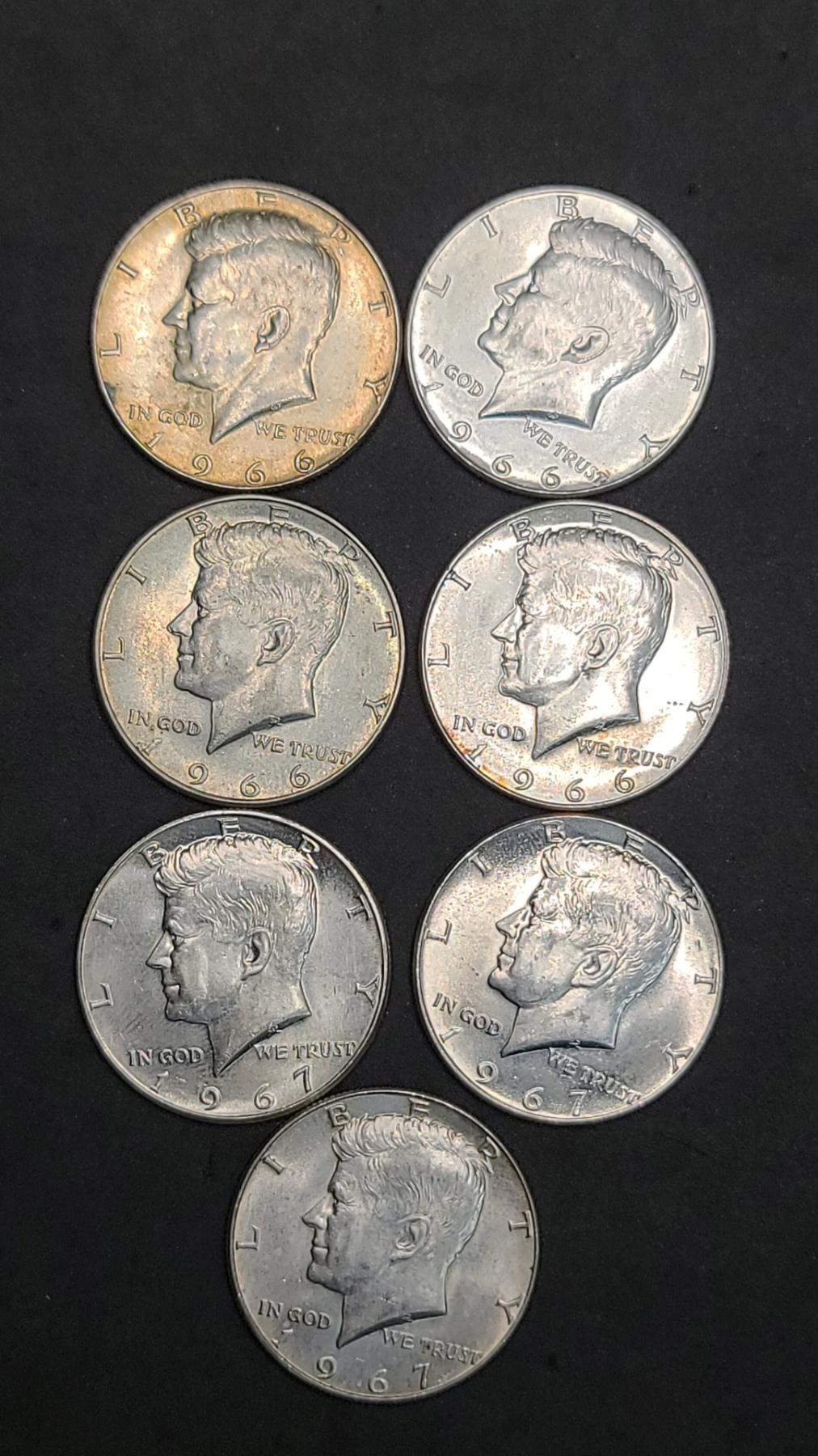 (7) Assorted Years 40% Silver Kennedy Half Dollars - Face Value: $3.50